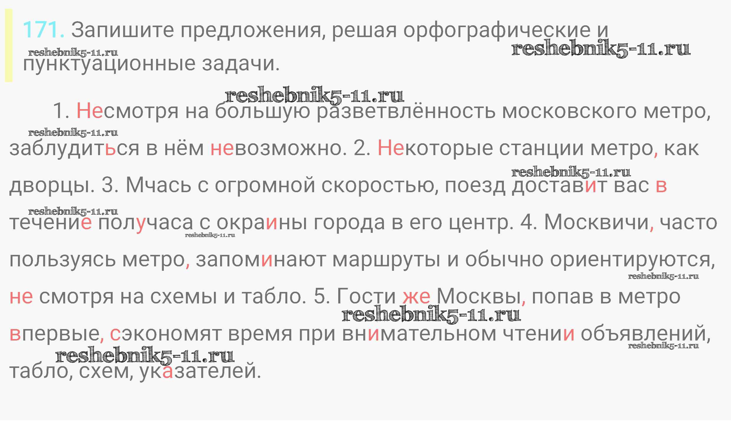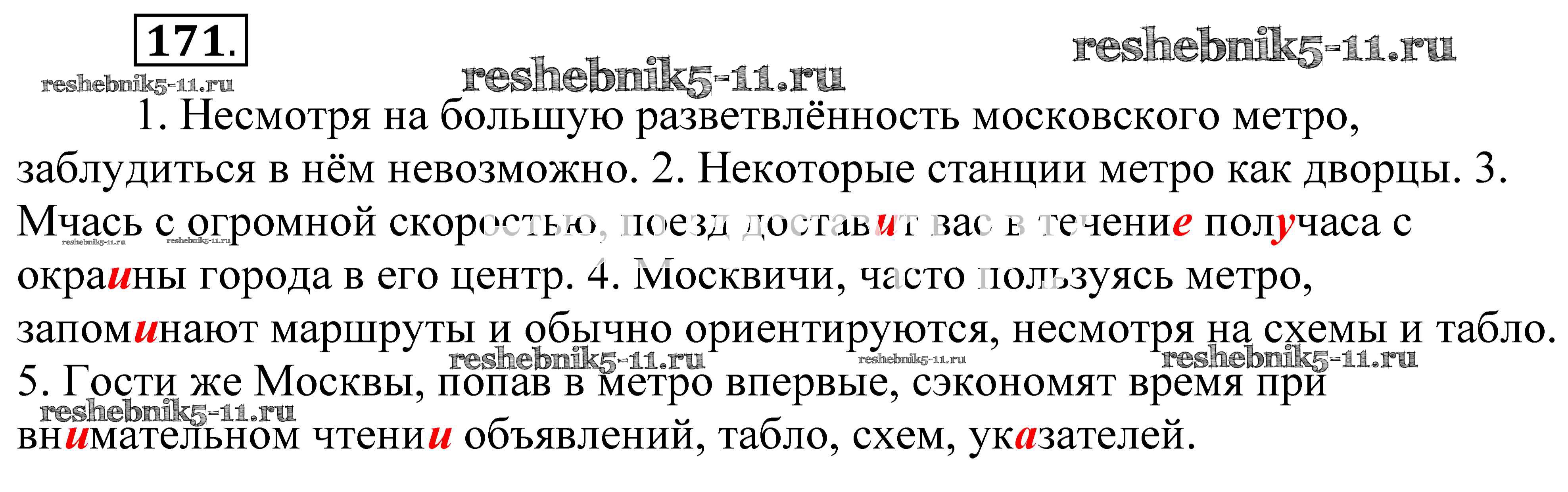 Готовая домашняя работа с ответами по Русскому языку за 8 класс Пичугов, Еремеева, Купалова, Леденева Практика Вертикаль Дрофа 2016 ФГОС - Упражнения 171