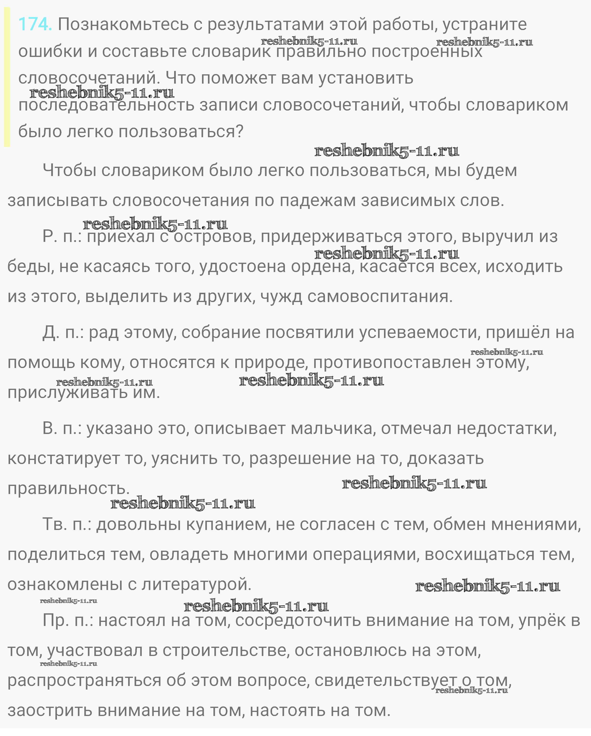 Готовая домашняя работа с ответами по Русскому языку за 8 класс Пичугов, Еремеева, Купалова, Леденева Практика Вертикаль Дрофа 2016 ФГОС - Упражнения 174