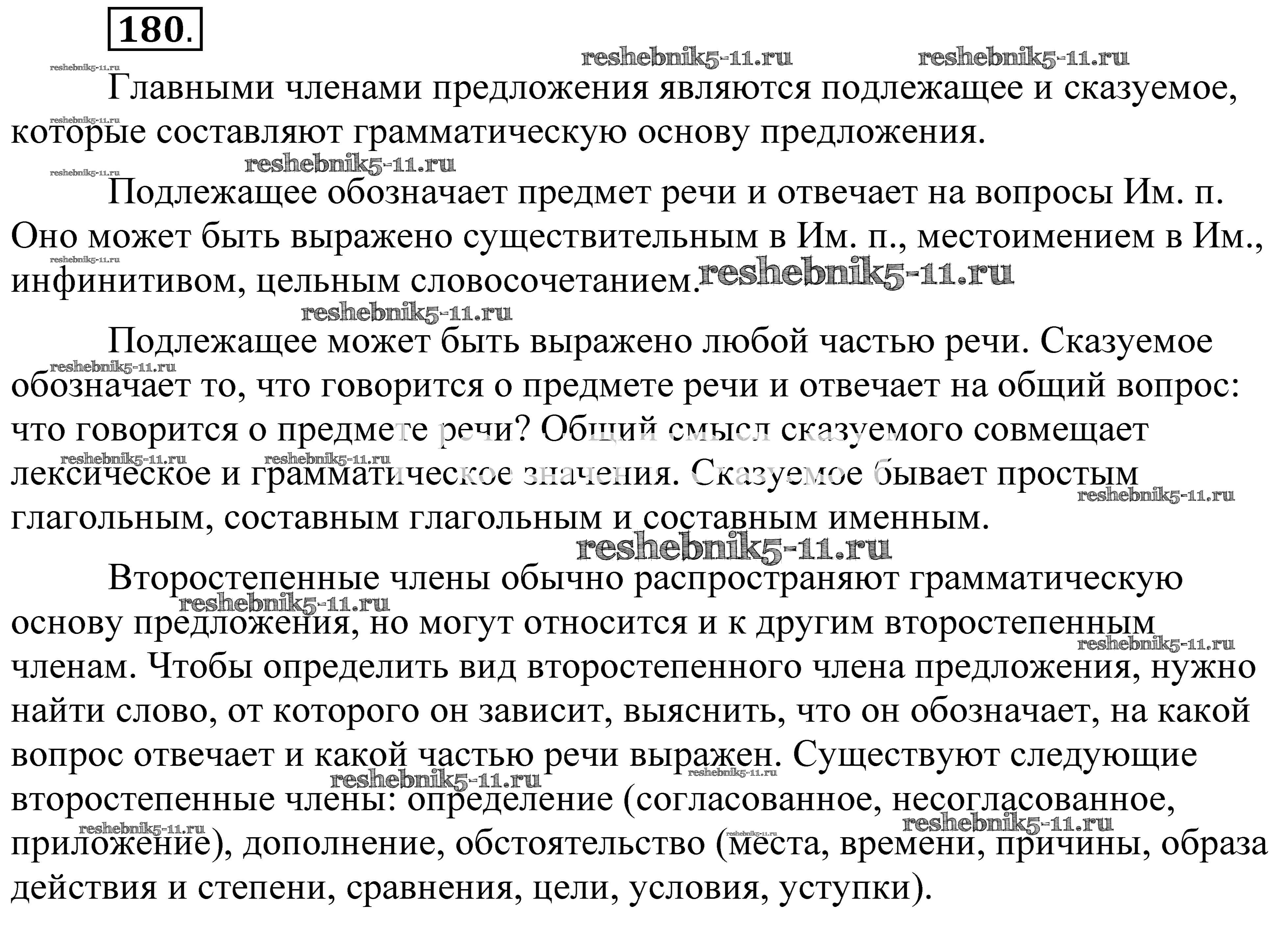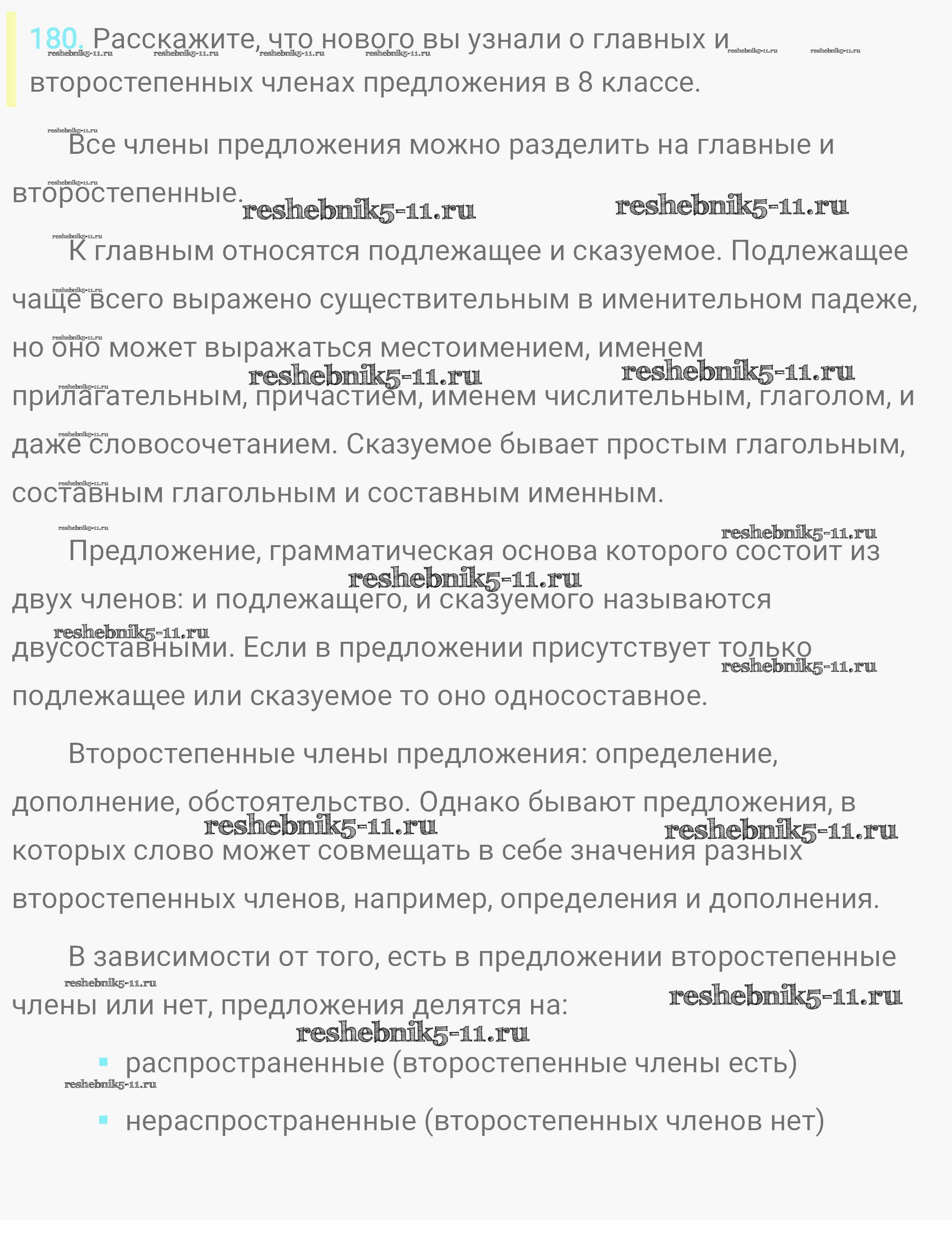 Готовая домашняя работа с ответами по Русскому языку за 8 класс Пичугов, Еремеева, Купалова, Леденева Практика Вертикаль Дрофа 2016 ФГОС - Упражнения 180