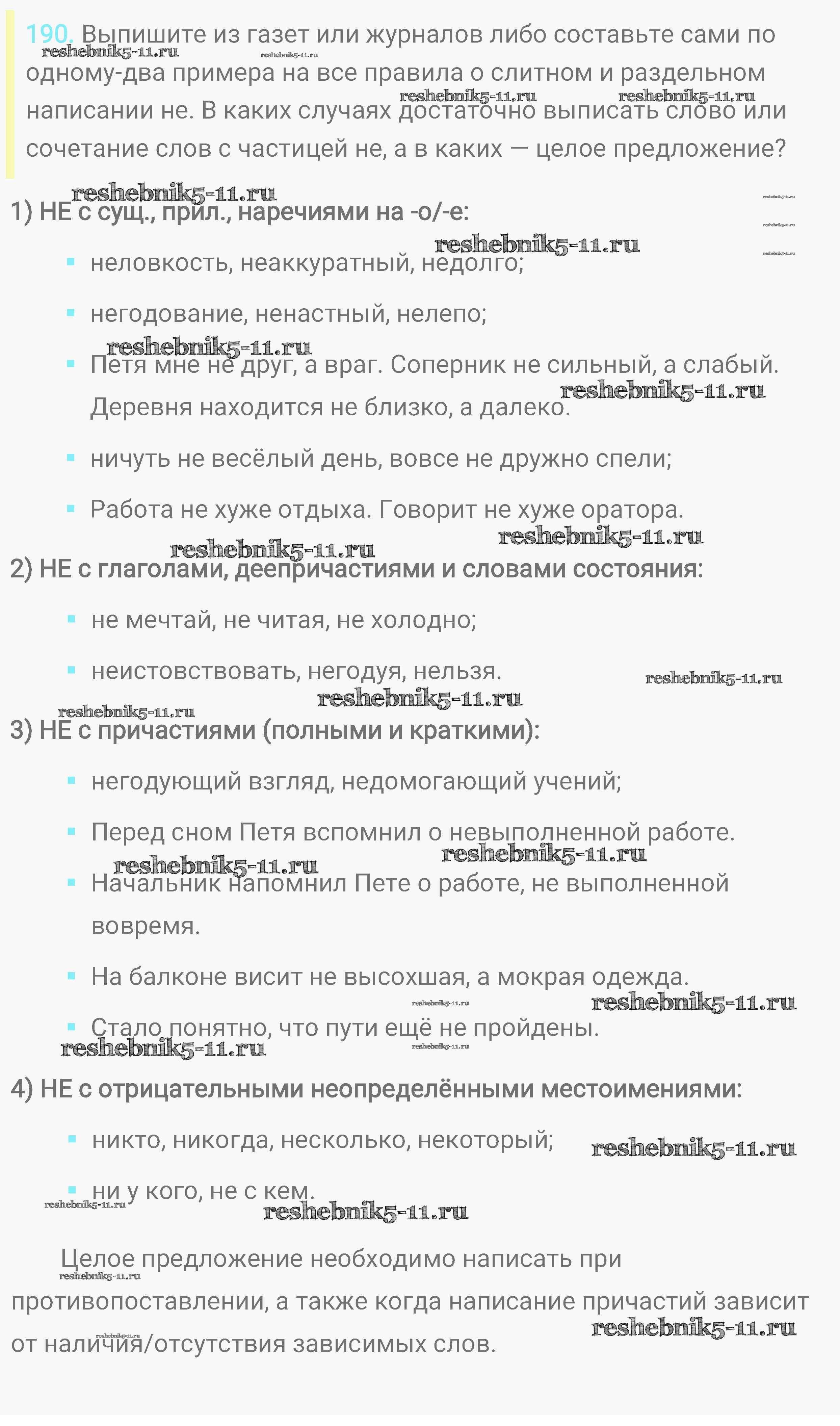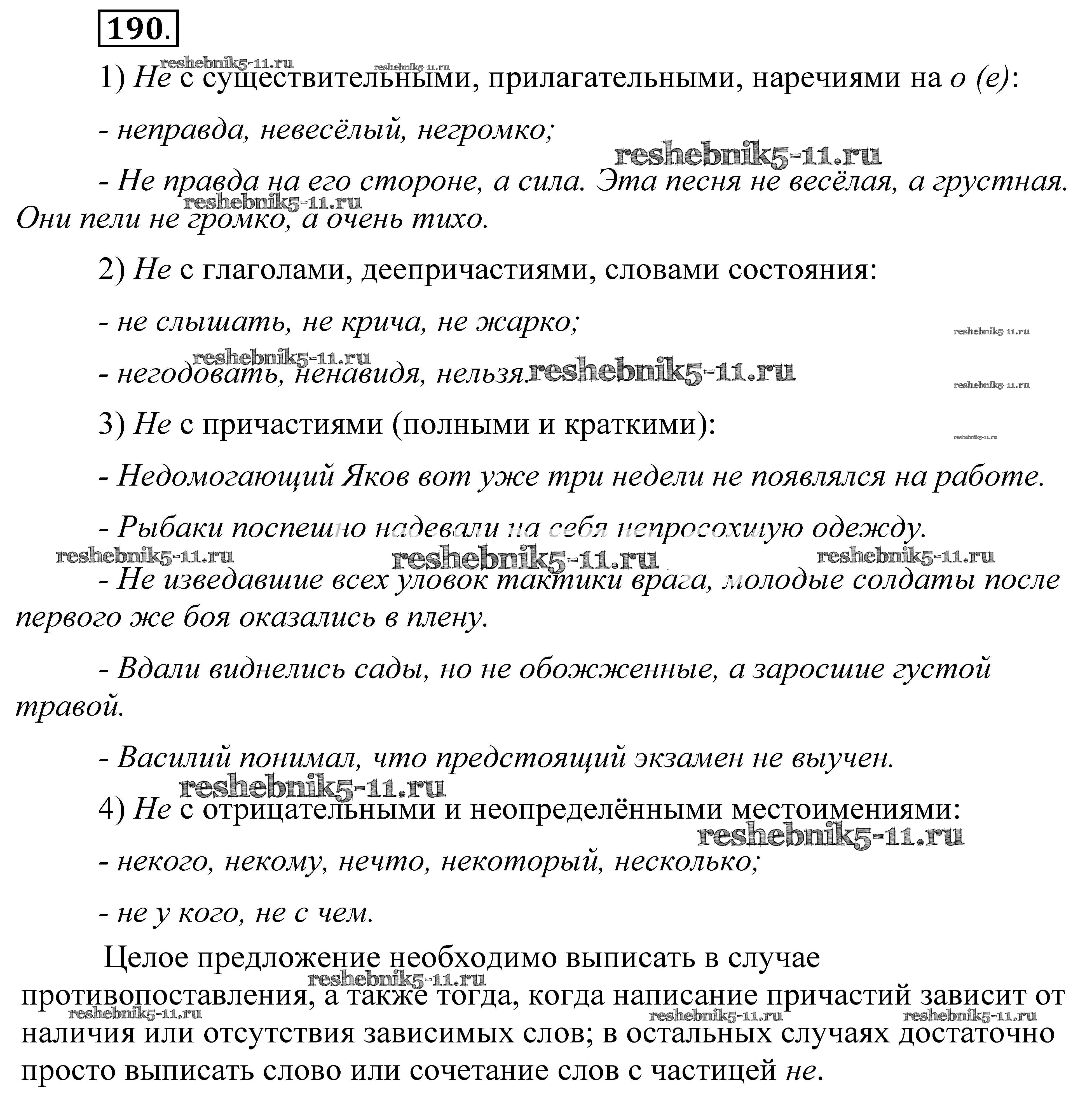 Готовая домашняя работа с ответами по Русскому языку за 8 класс Пичугов, Еремеева, Купалова, Леденева Практика Вертикаль Дрофа 2016 ФГОС - Упражнения 190
