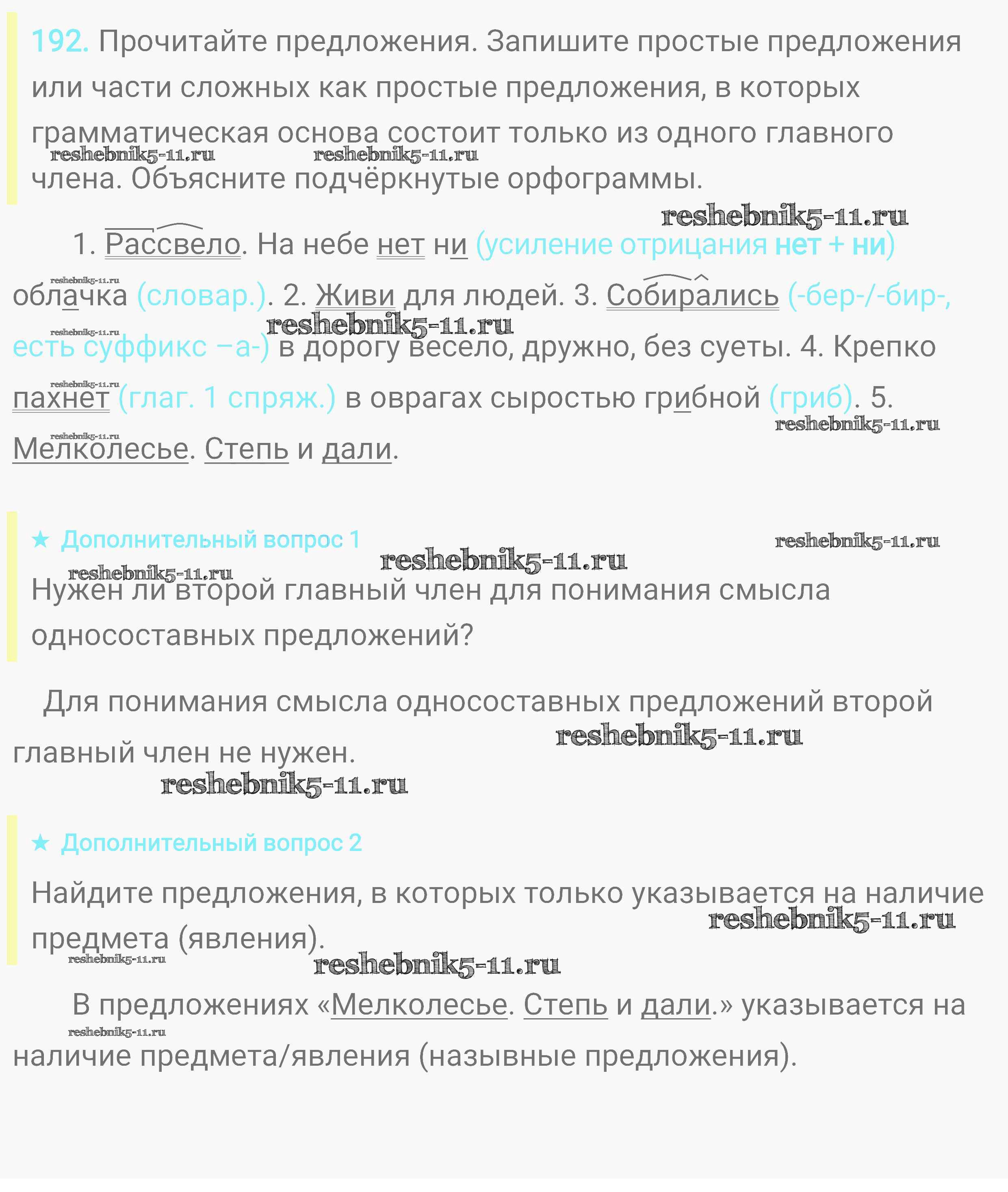Готовая домашняя работа с ответами по Русскому языку за 8 класс Пичугов, Еремеева, Купалова, Леденева Практика Вертикаль Дрофа 2016 ФГОС - Упражнения 192