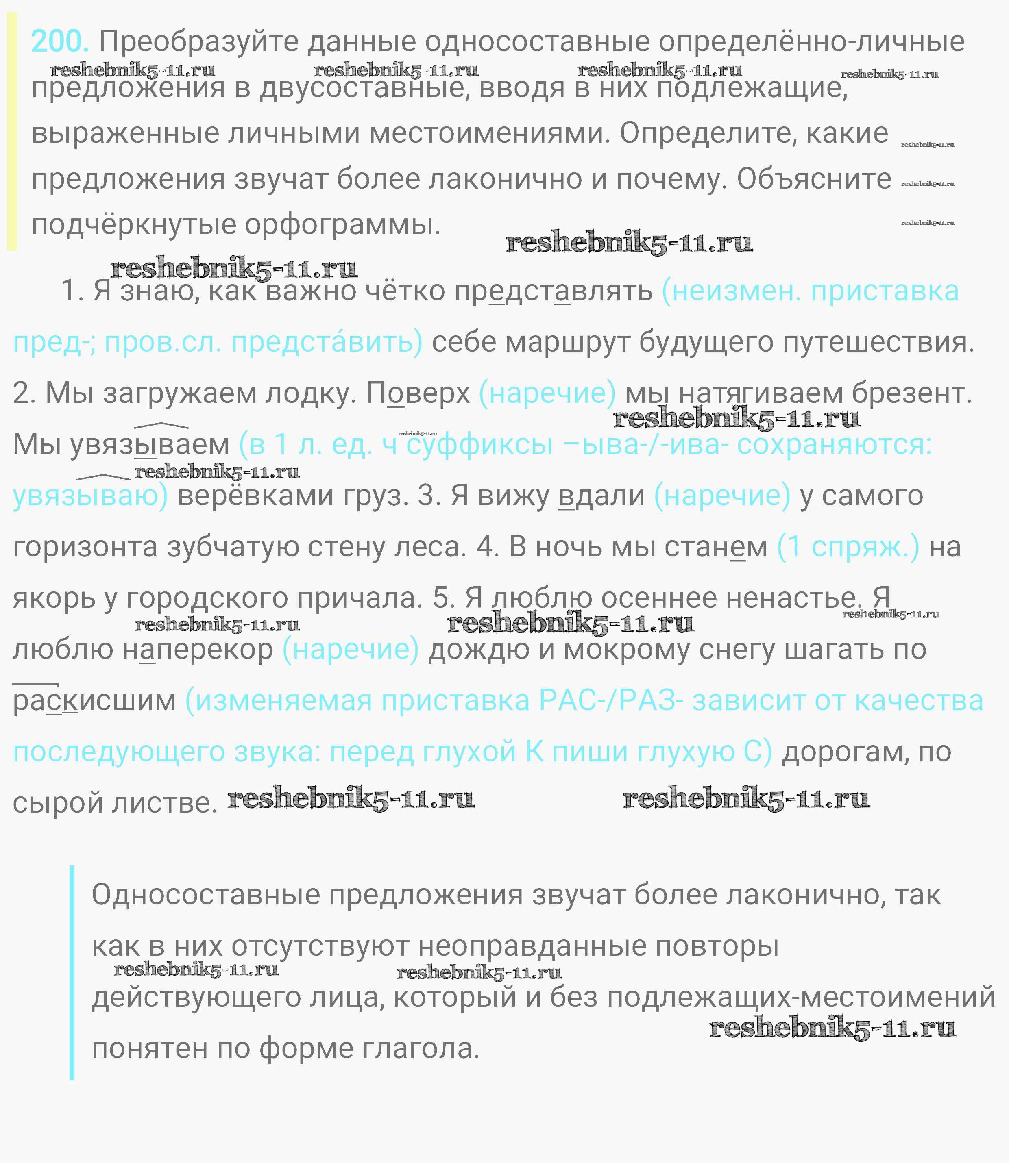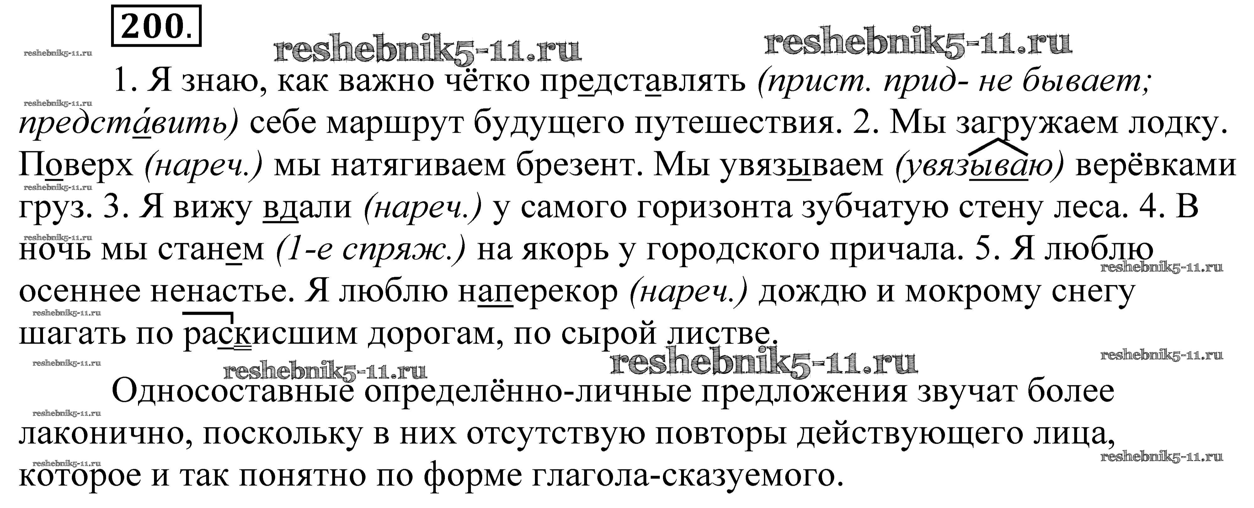 Готовая домашняя работа с ответами по Русскому языку за 8 класс Пичугов, Еремеева, Купалова, Леденева Практика Вертикаль Дрофа 2016 ФГОС - Упражнения 200