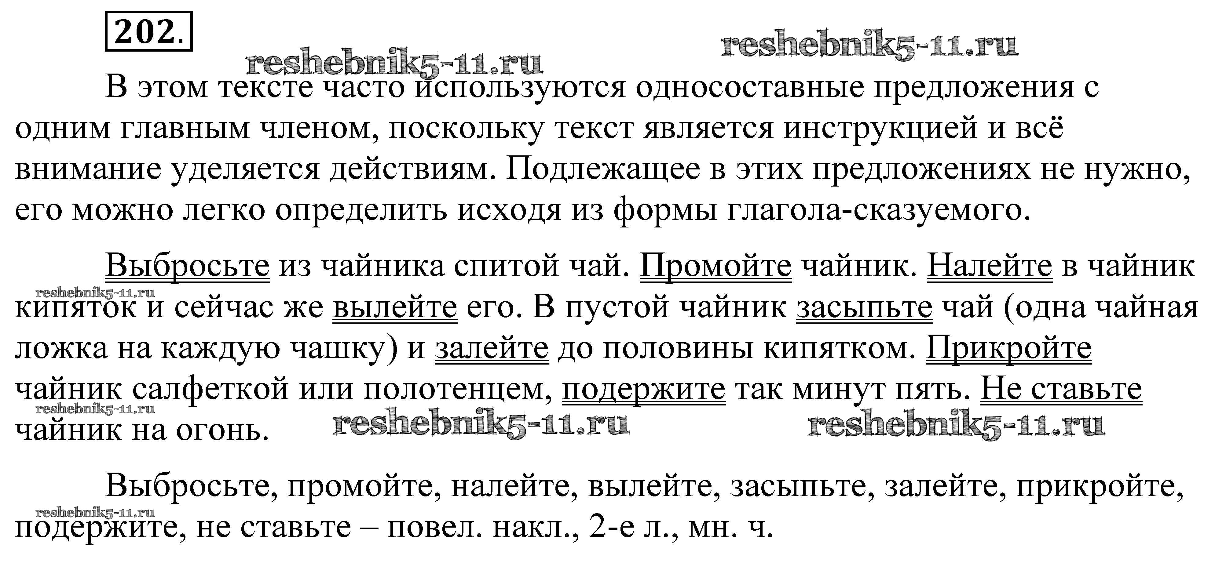 Готовая домашняя работа с ответами по Русскому языку за 8 класс Пичугов, Еремеева, Купалова, Леденева Практика Вертикаль Дрофа 2016 ФГОС - Упражнения 202