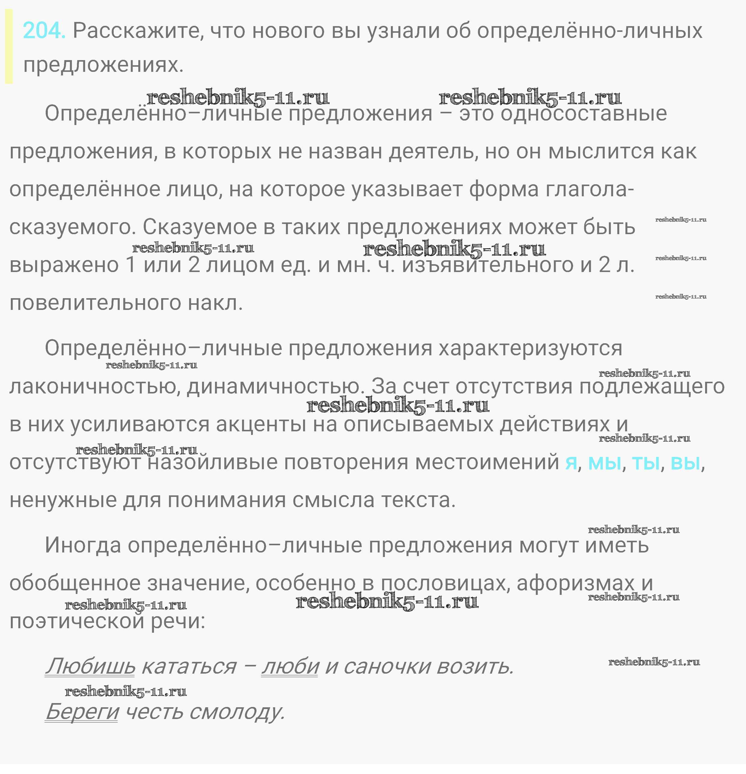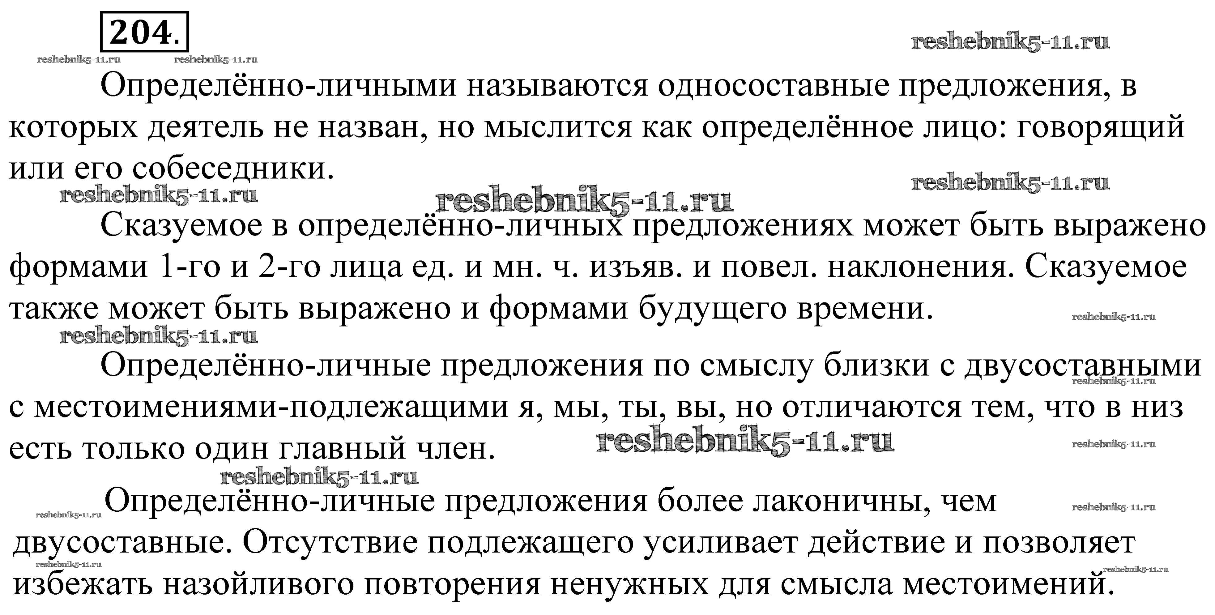 Готовая домашняя работа с ответами по Русскому языку за 8 класс Пичугов, Еремеева, Купалова, Леденева Практика Вертикаль Дрофа 2016 ФГОС - Упражнения 204