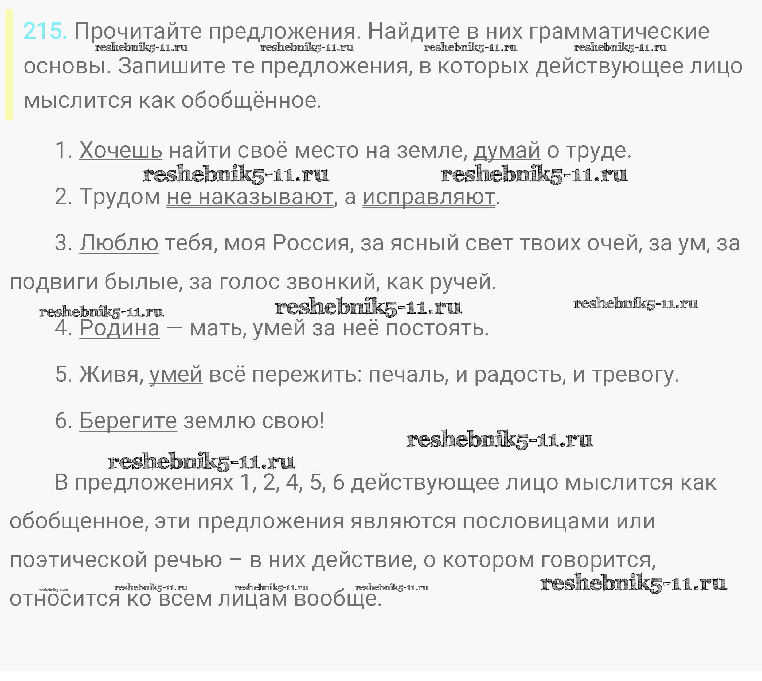Готовая домашняя работа с ответами по Русскому языку за 8 класс Пичугов, Еремеева, Купалова, Леденева Практика Вертикаль Дрофа 2016 ФГОС - Упражнения 215