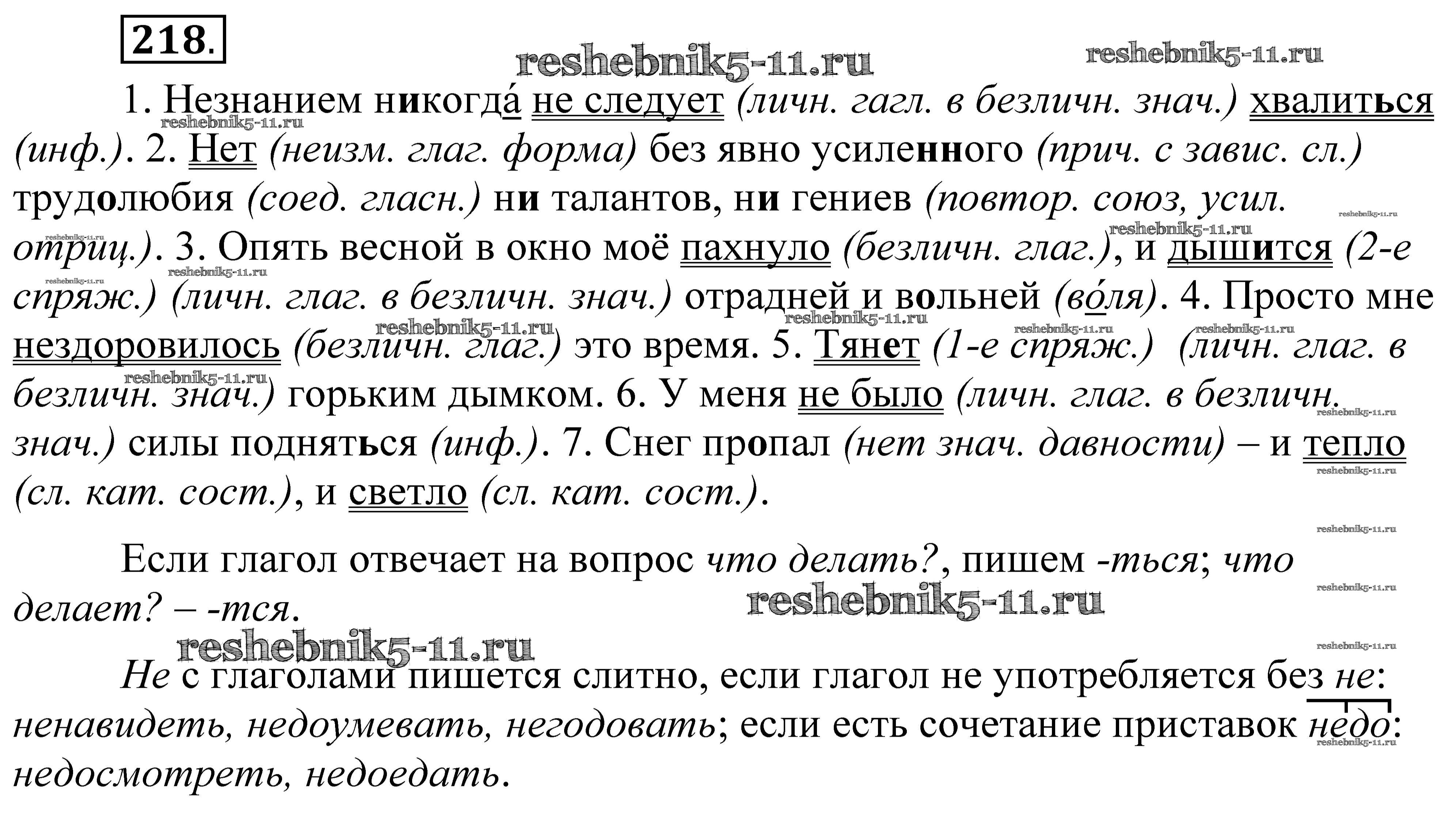Готовая домашняя работа с ответами по Русскому языку за 8 класс Пичугов, Еремеева, Купалова, Леденева Практика Вертикаль Дрофа 2016 ФГОС - Упражнения 218