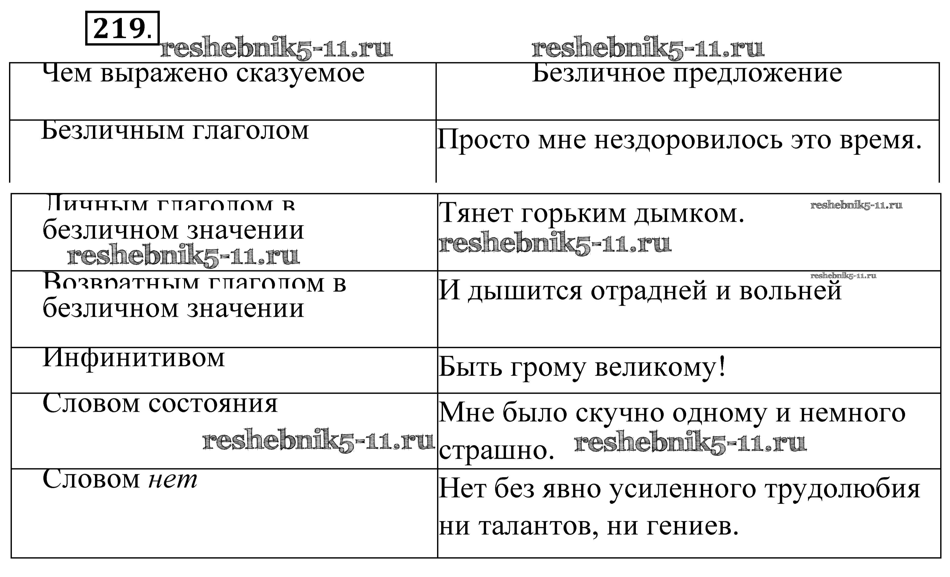 Готовая домашняя работа с ответами по Русскому языку за 8 класс Пичугов, Еремеева, Купалова, Леденева Практика Вертикаль Дрофа 2016 ФГОС - Упражнения 219