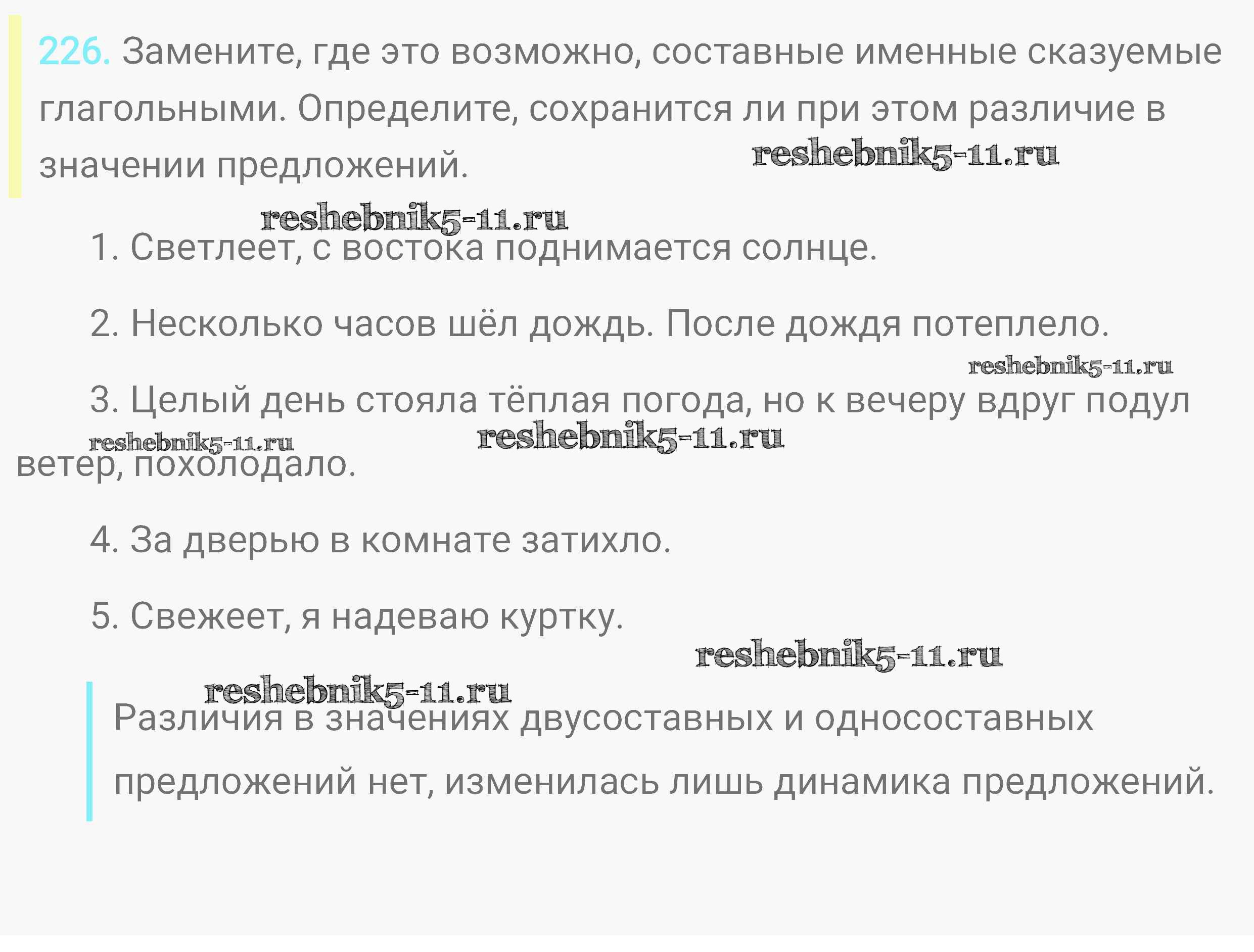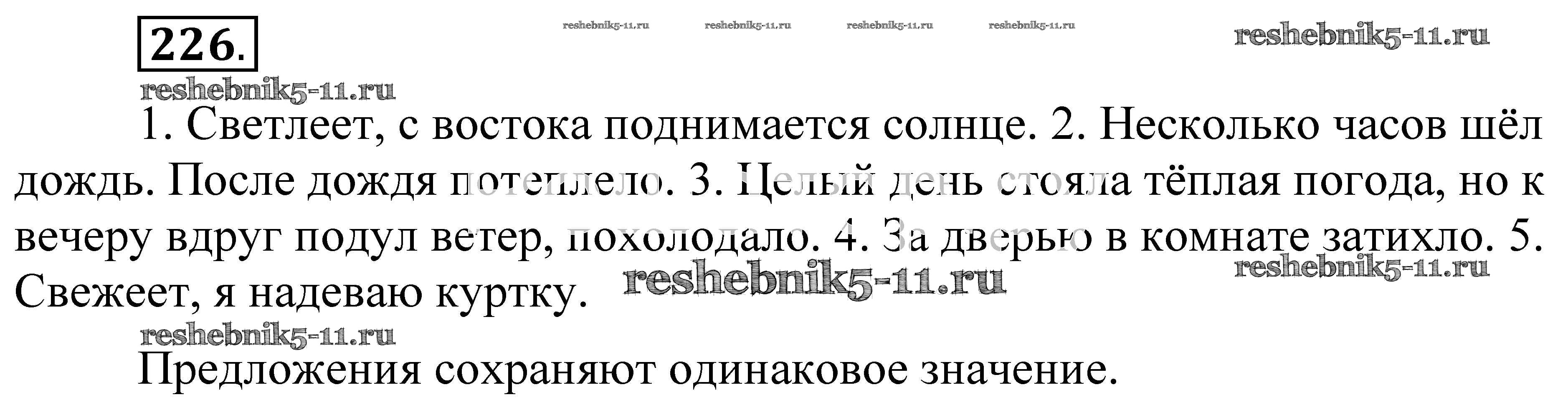 Готовая домашняя работа с ответами по Русскому языку за 8 класс Пичугов, Еремеева, Купалова, Леденева Практика Вертикаль Дрофа 2016 ФГОС - Упражнения 226
