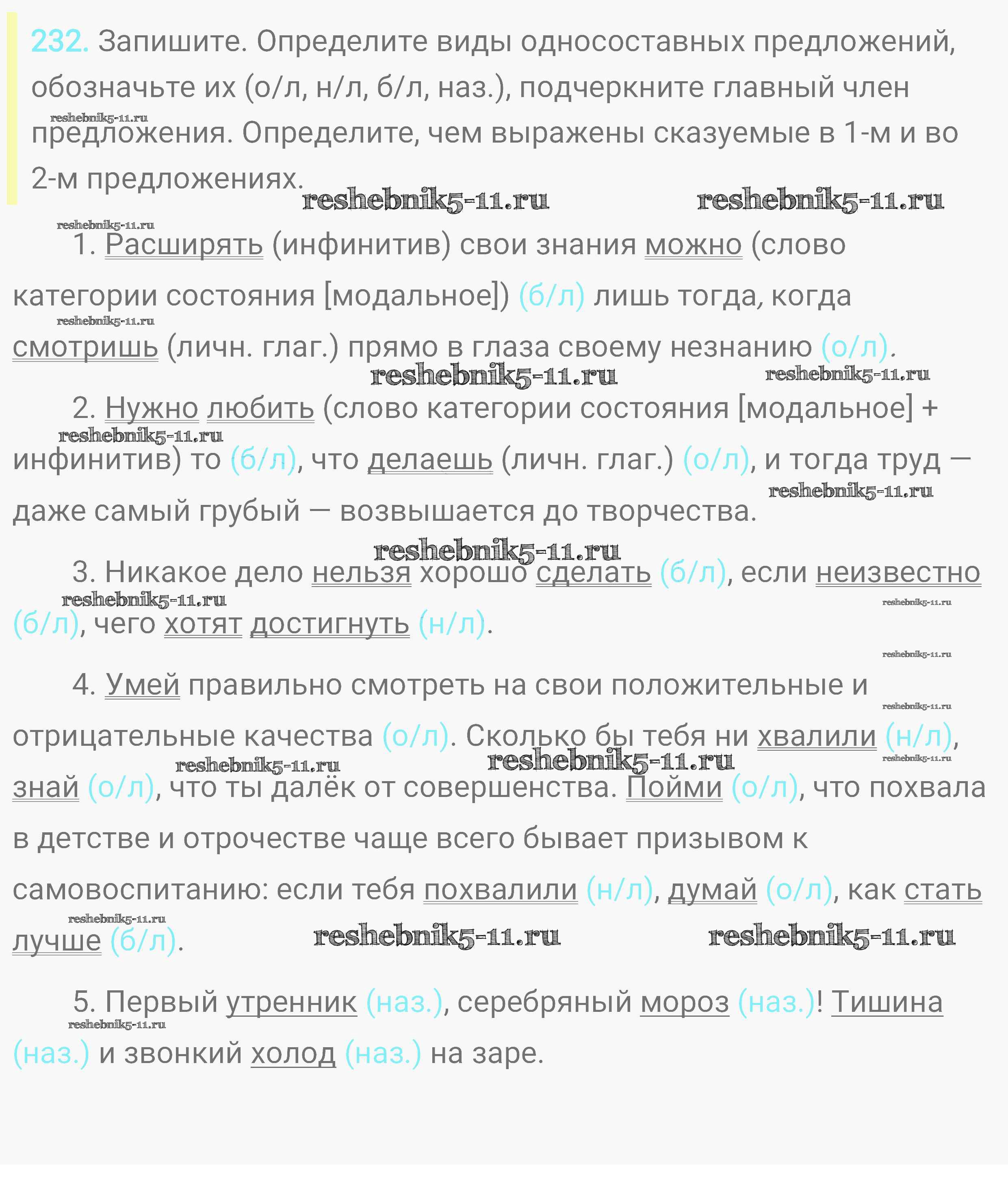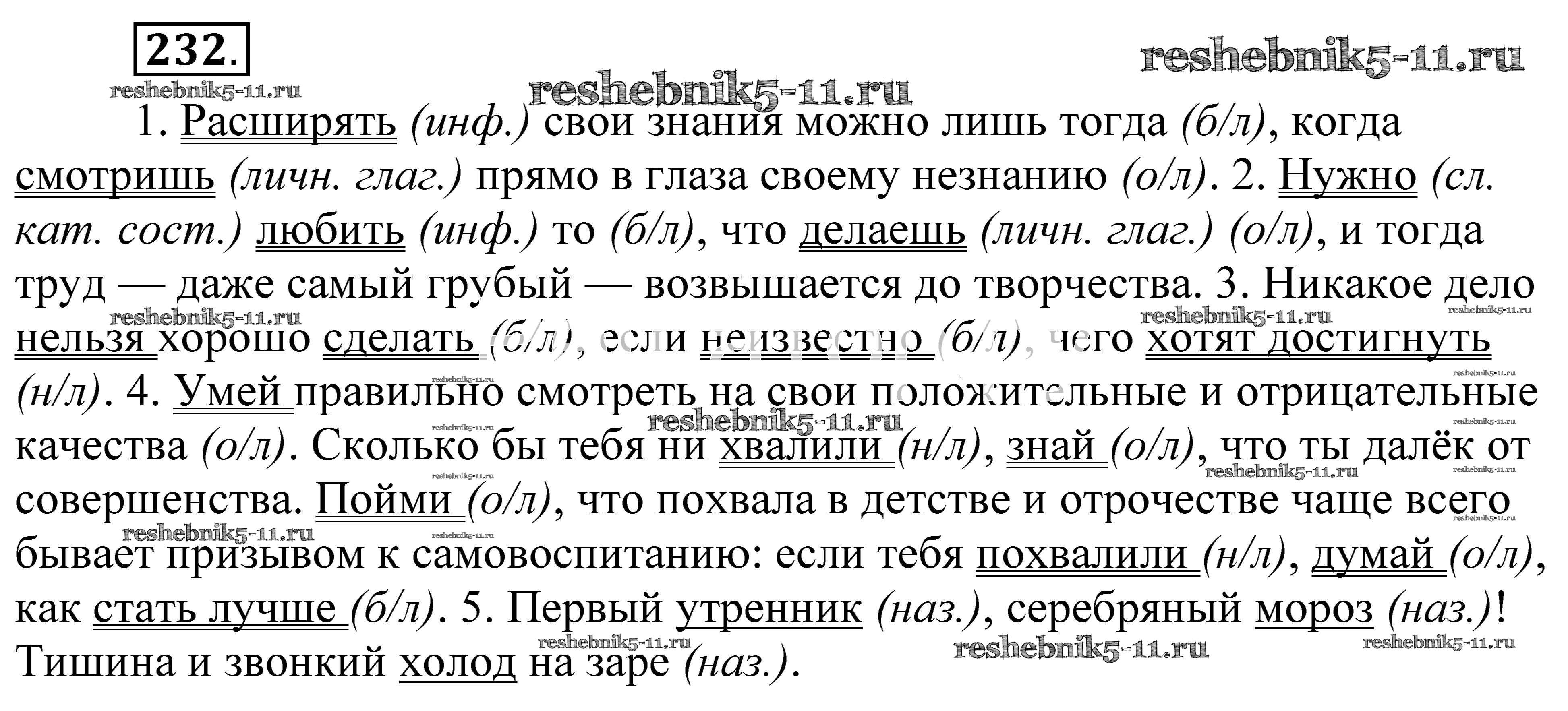 Готовая домашняя работа с ответами по Русскому языку за 8 класс Пичугов, Еремеева, Купалова, Леденева Практика Вертикаль Дрофа 2016 ФГОС - Упражнения 232