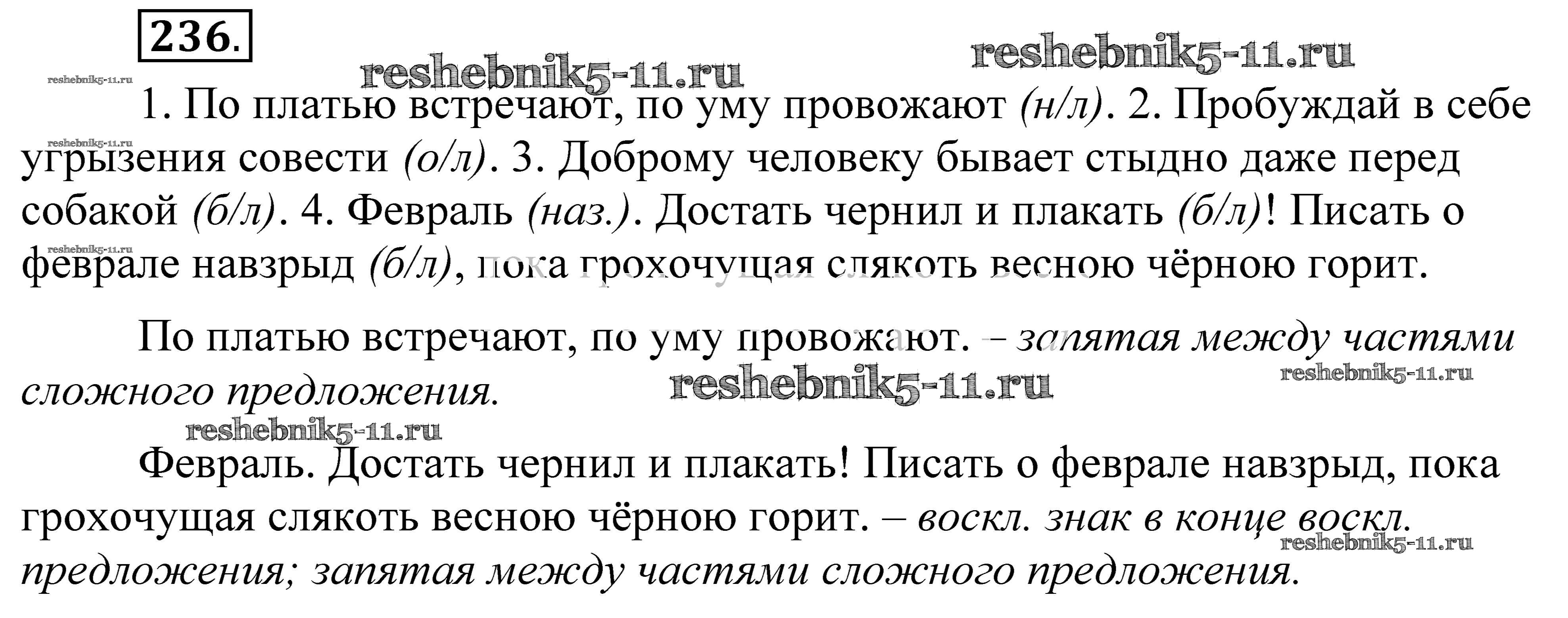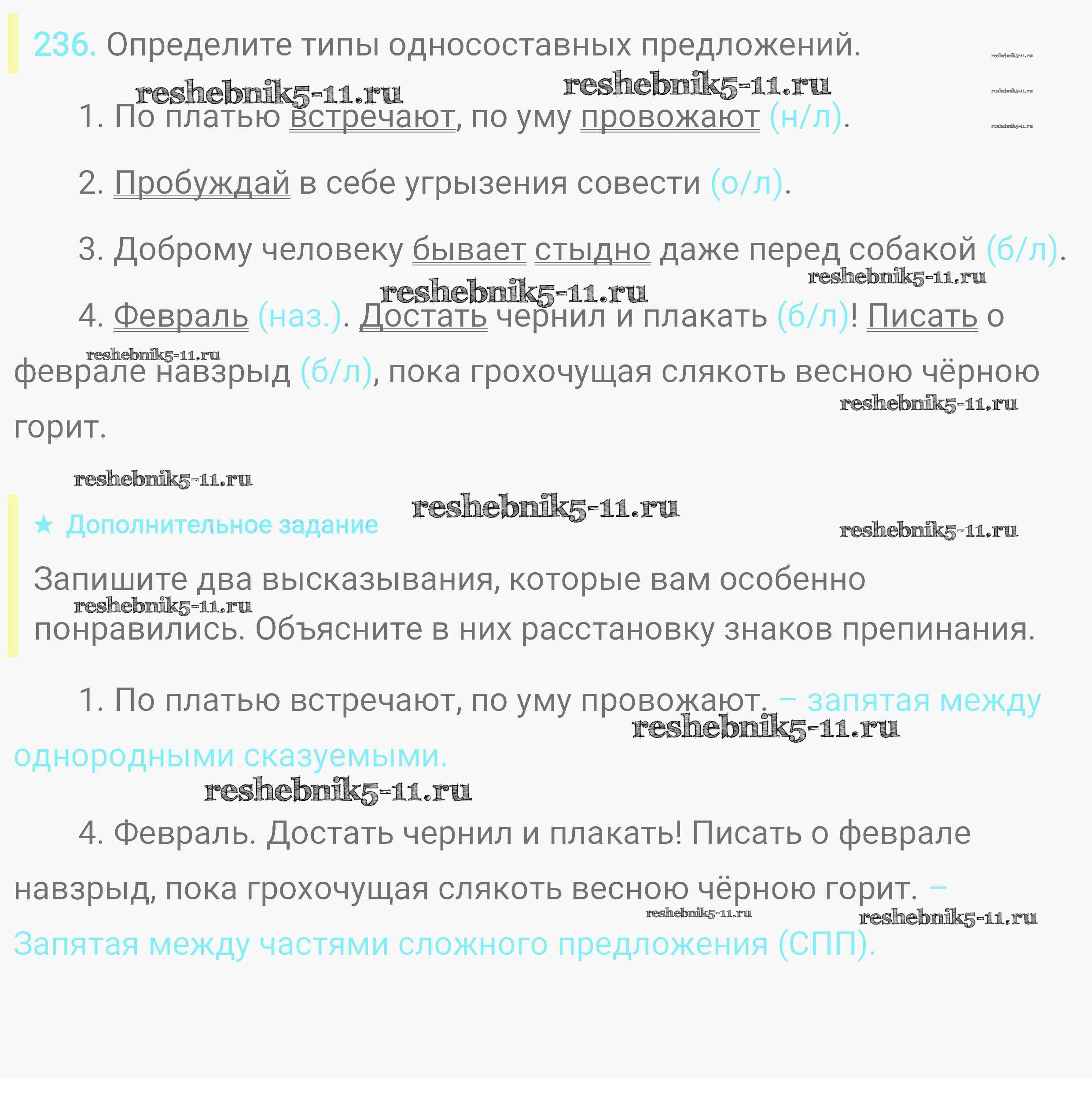 Готовая домашняя работа с ответами по Русскому языку за 8 класс Пичугов, Еремеева, Купалова, Леденева Практика Вертикаль Дрофа 2016 ФГОС - Упражнения 236