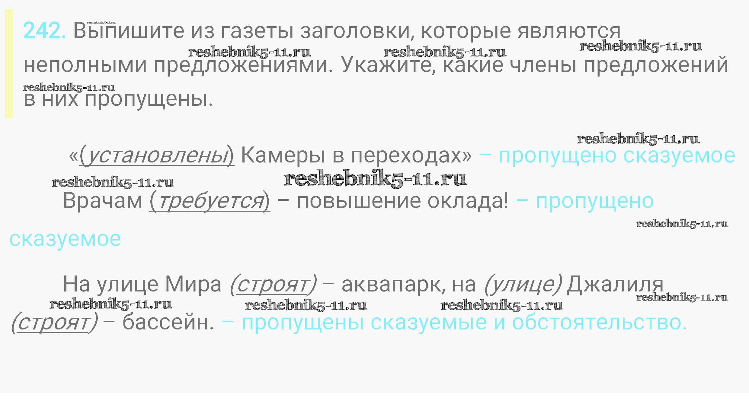 Готовая домашняя работа с ответами по Русскому языку за 8 класс Пичугов, Еремеева, Купалова, Леденева Практика Вертикаль Дрофа 2016 ФГОС - Упражнения 242