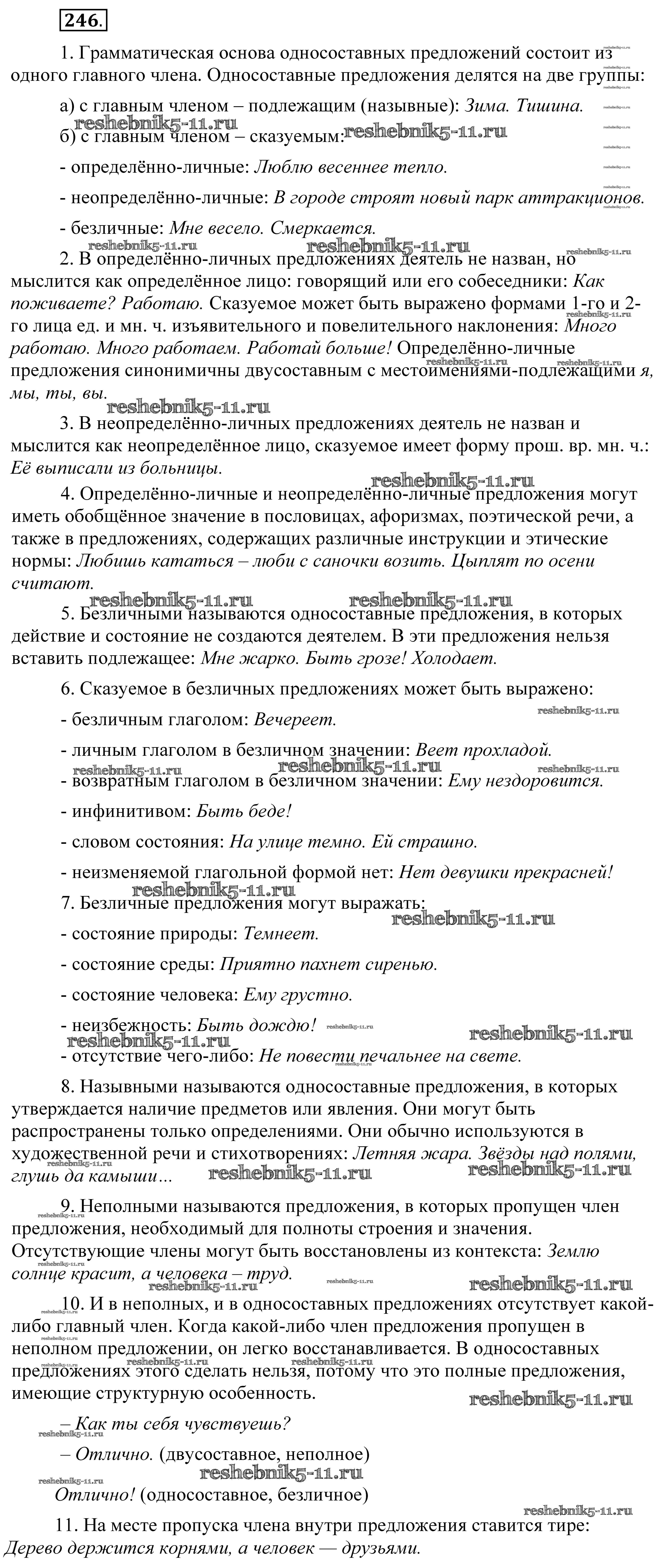 Готовая домашняя работа с ответами по Русскому языку за 8 класс Пичугов, Еремеева, Купалова, Леденева Практика Вертикаль Дрофа 2016 ФГОС - Упражнения 246