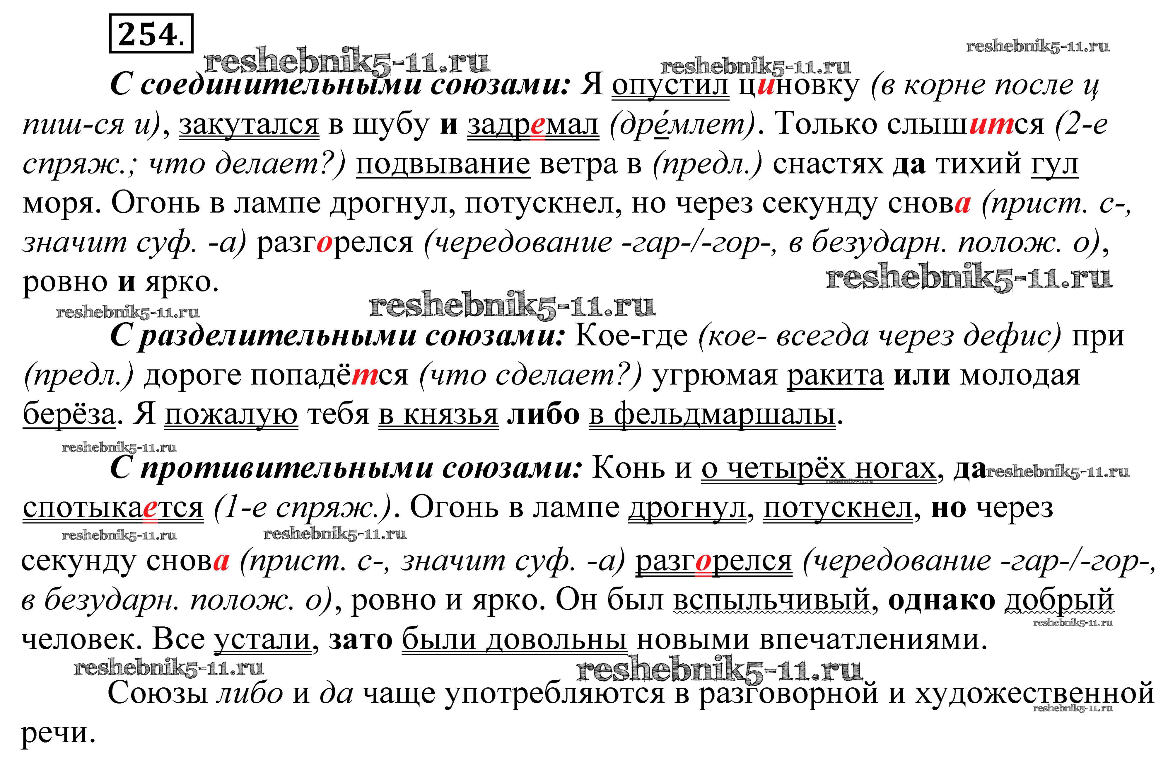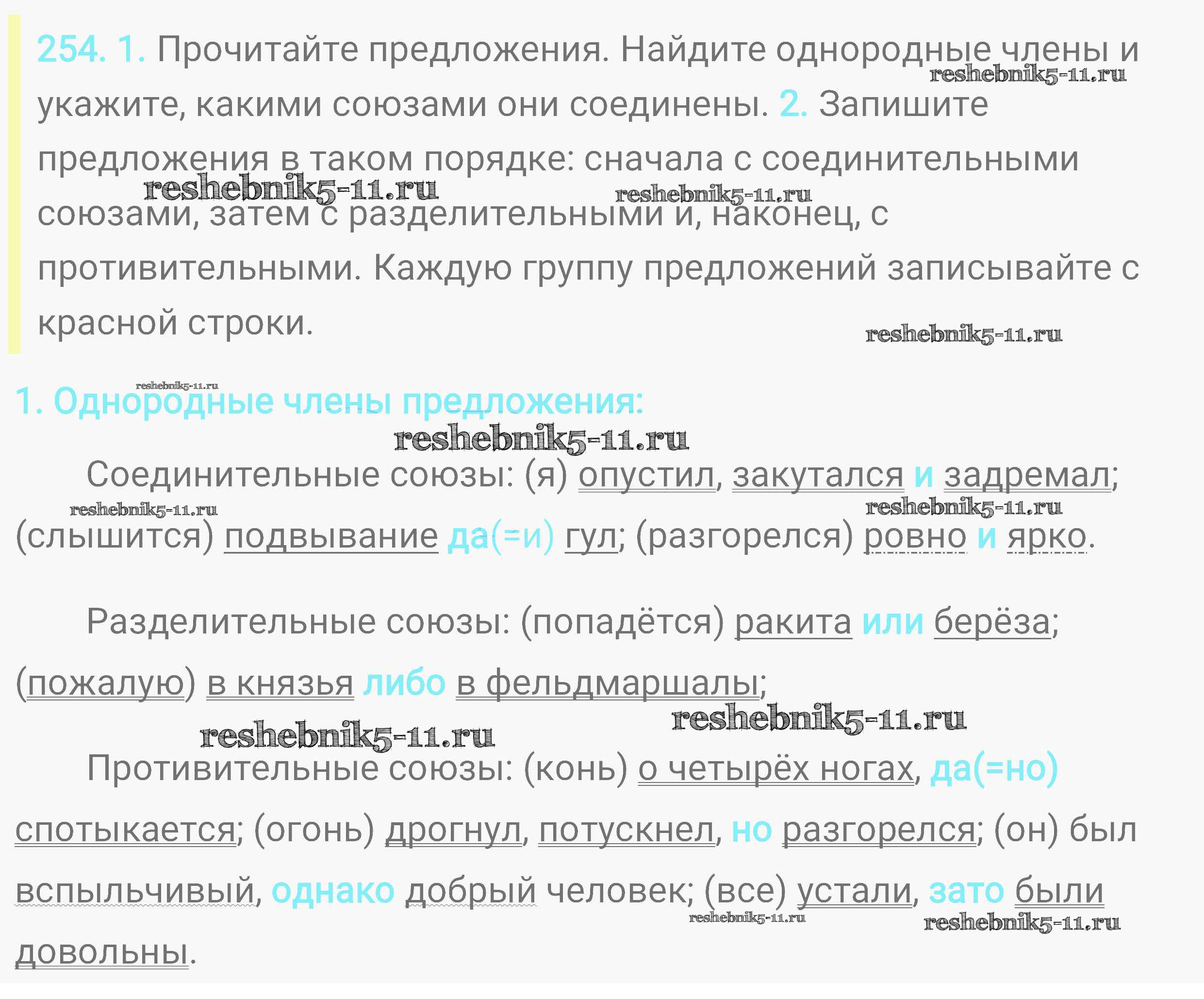 Готовая домашняя работа с ответами по Русскому языку за 8 класс Пичугов, Еремеева, Купалова, Леденева Практика Вертикаль Дрофа 2016 ФГОС - Упражнения 254