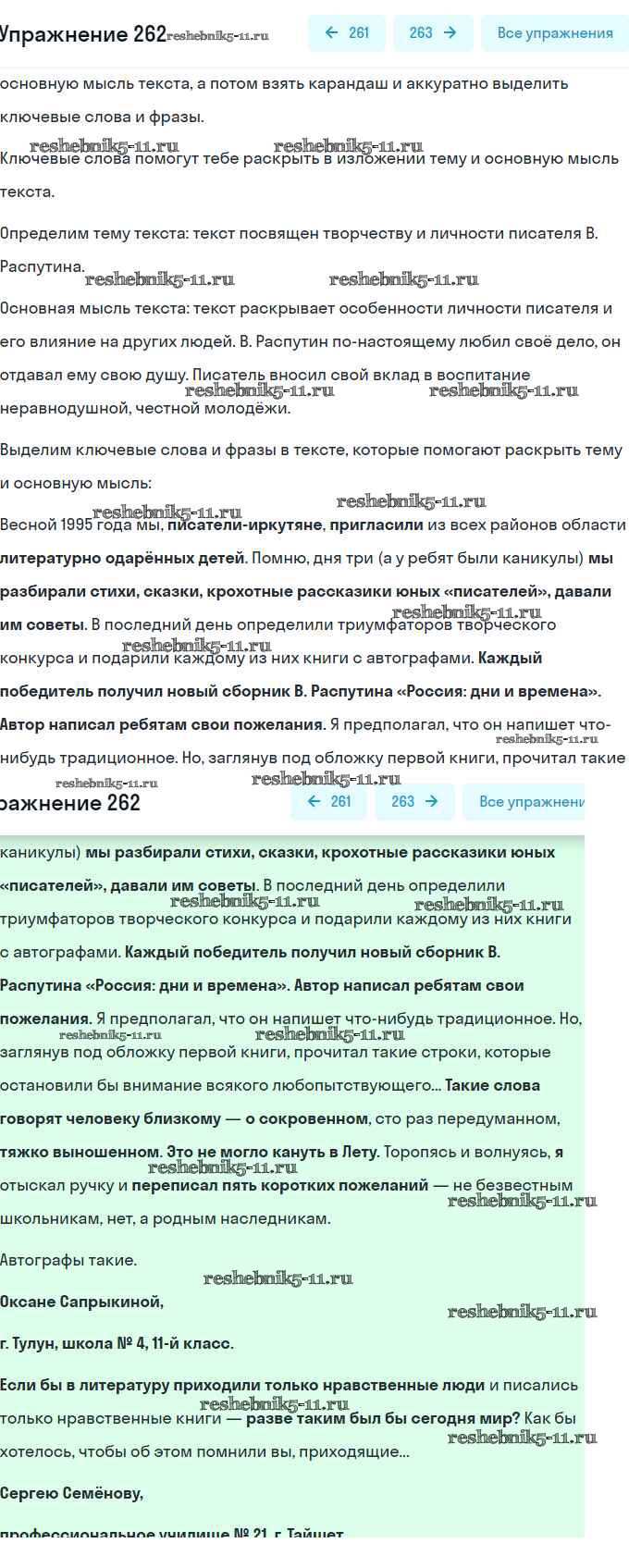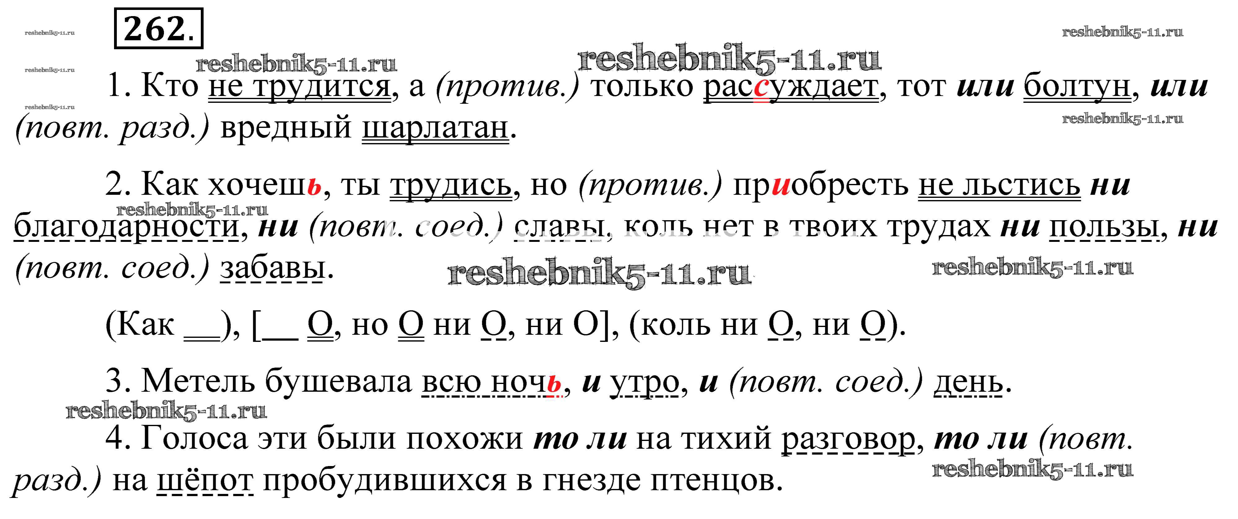 Готовая домашняя работа с ответами по Русскому языку за 8 класс Пичугов, Еремеева, Купалова, Леденева Практика Вертикаль Дрофа 2016 ФГОС - Упражнения 262