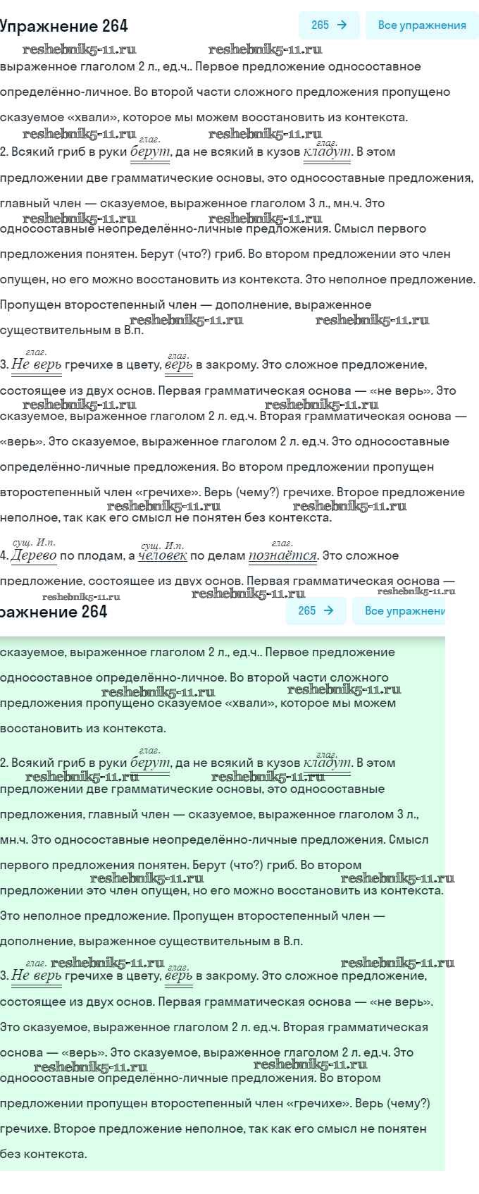 Готовая домашняя работа с ответами по Русскому языку за 8 класс Пичугов, Еремеева, Купалова, Леденева Практика Вертикаль Дрофа 2016 ФГОС - Упражнения 264