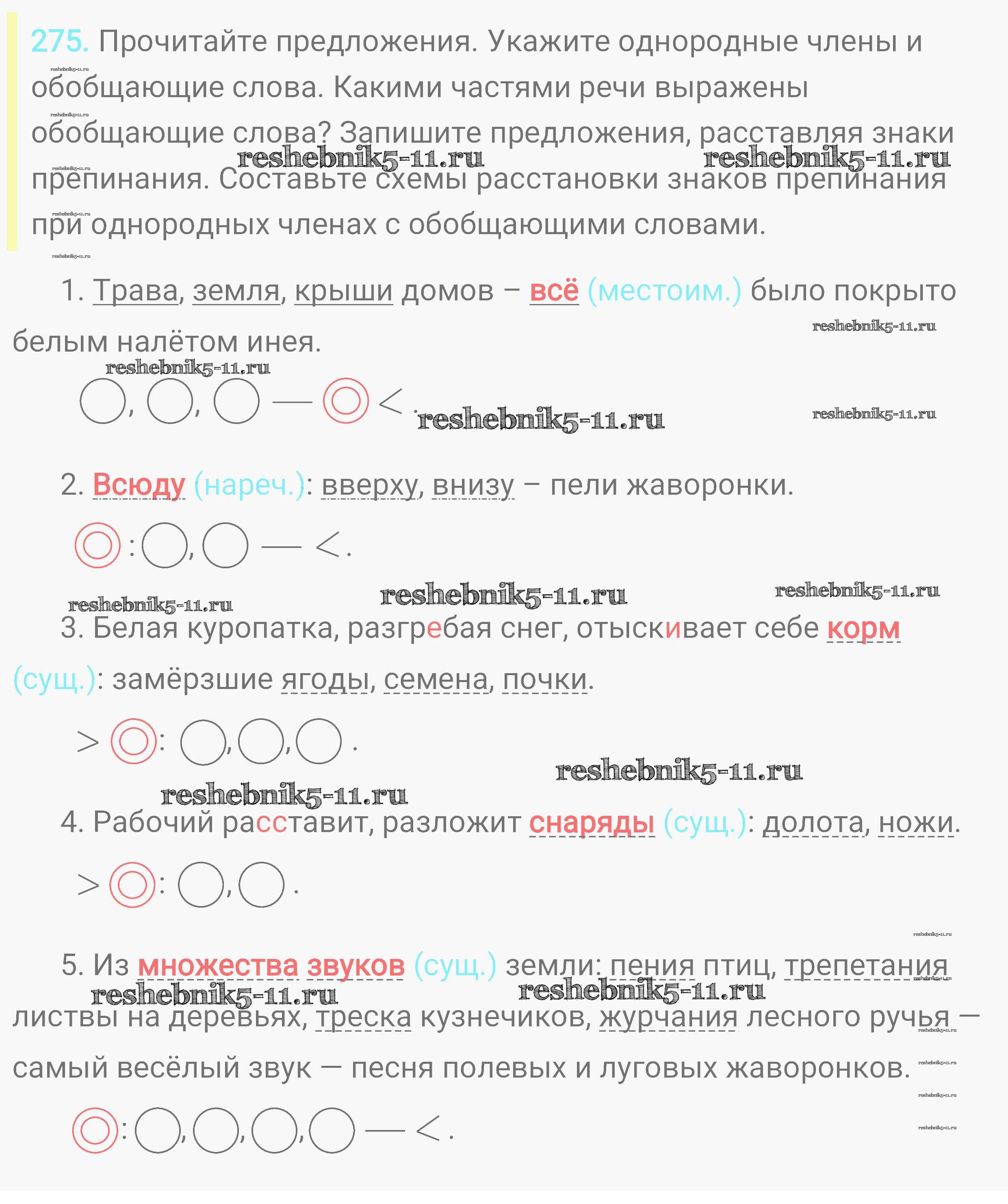 Готовая домашняя работа с ответами по Русскому языку за 8 класс Пичугов, Еремеева, Купалова, Леденева Практика Вертикаль Дрофа 2016 ФГОС - Упражнения 275
