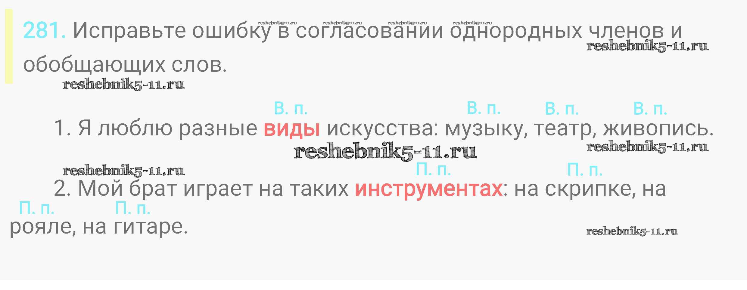 Готовая домашняя работа с ответами по Русскому языку за 8 класс Пичугов, Еремеева, Купалова, Леденева Практика Вертикаль Дрофа 2016 ФГОС - Упражнения 281
