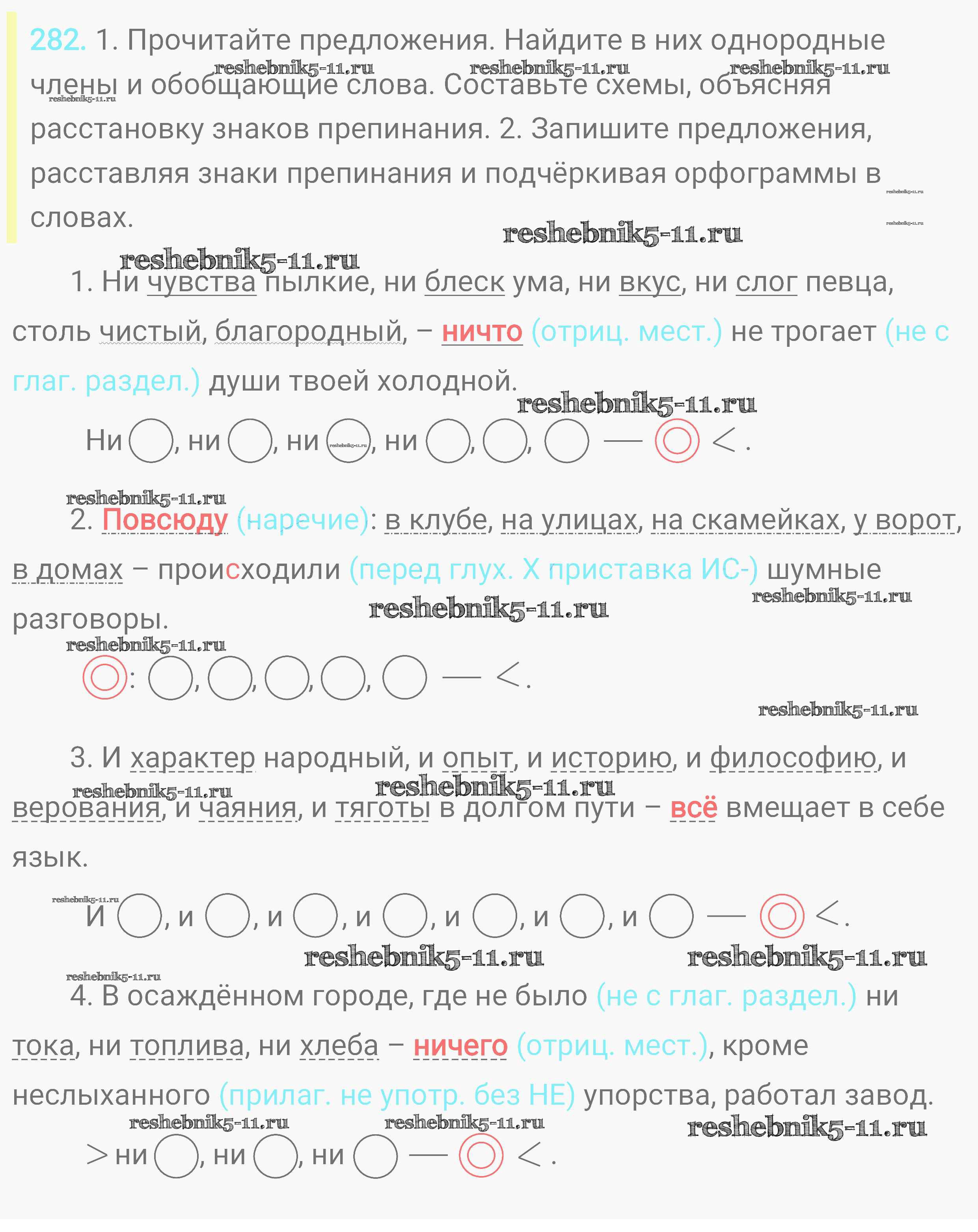 Готовая домашняя работа с ответами по Русскому языку за 8 класс Пичугов, Еремеева, Купалова, Леденева Практика Вертикаль Дрофа 2016 ФГОС - Упражнения 282