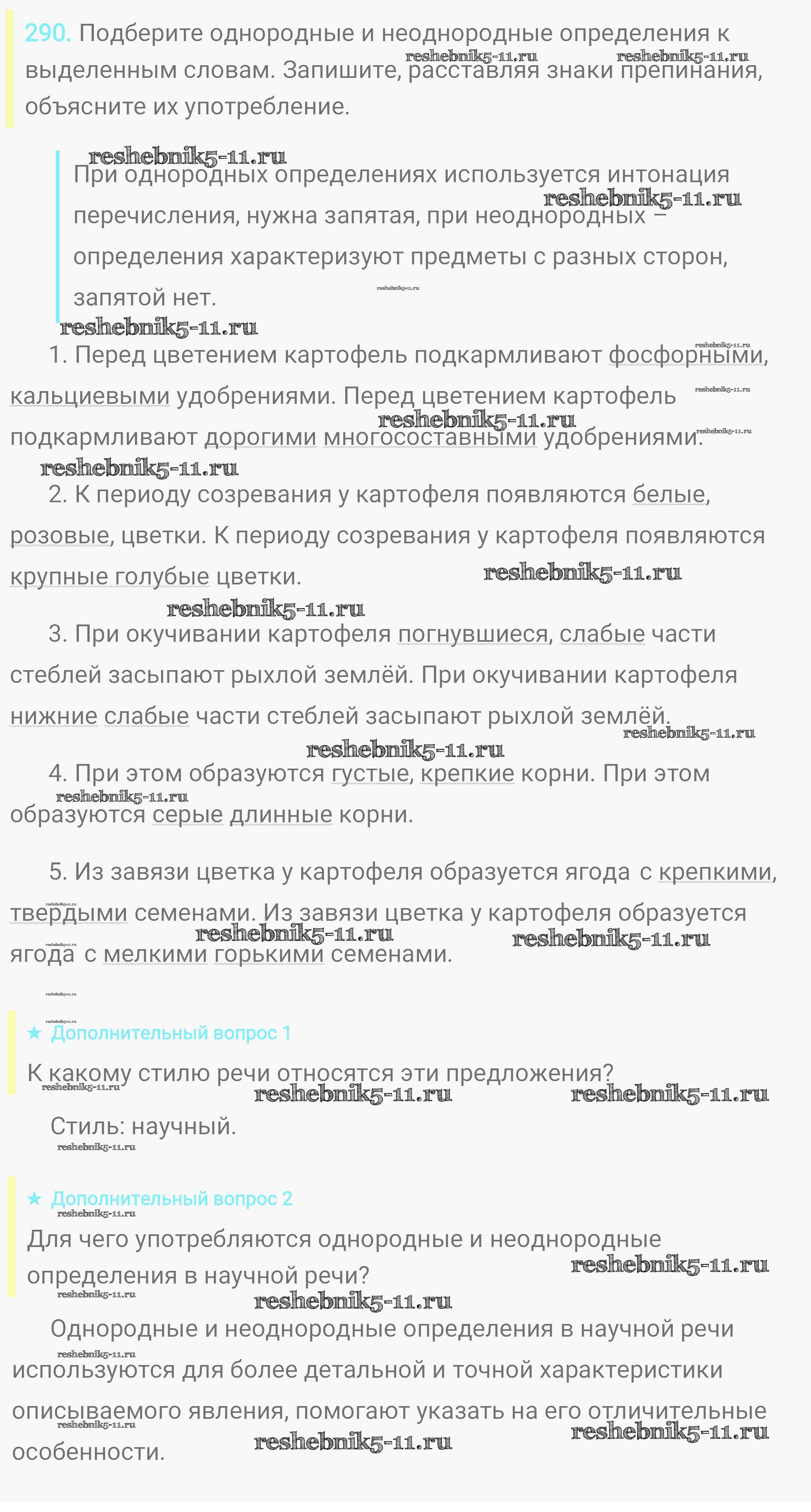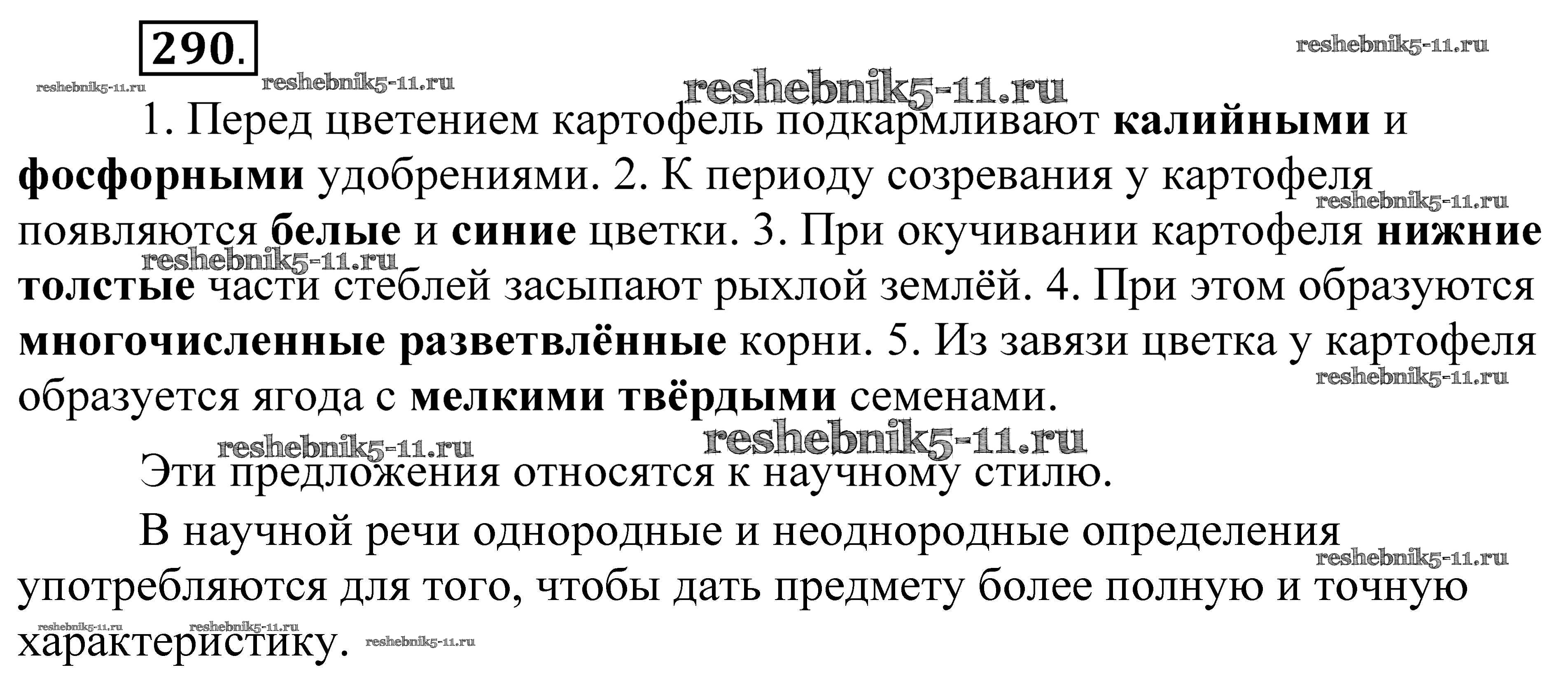 Готовая домашняя работа с ответами по Русскому языку за 8 класс Пичугов, Еремеева, Купалова, Леденева Практика Вертикаль Дрофа 2016 ФГОС - Упражнения 290