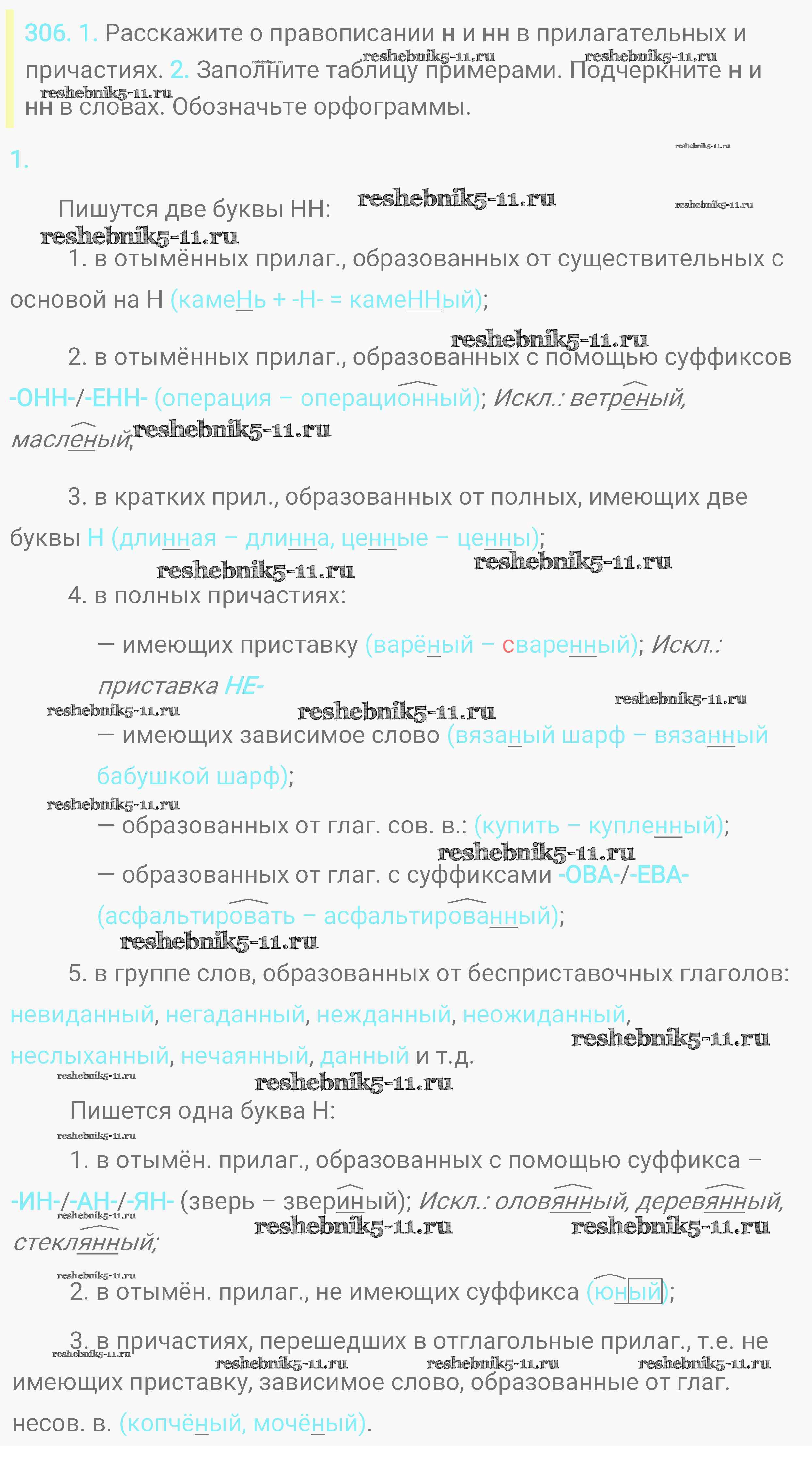Готовая домашняя работа с ответами по Русскому языку за 8 класс Пичугов, Еремеева, Купалова, Леденева Практика Вертикаль Дрофа 2016 ФГОС - Упражнения 306