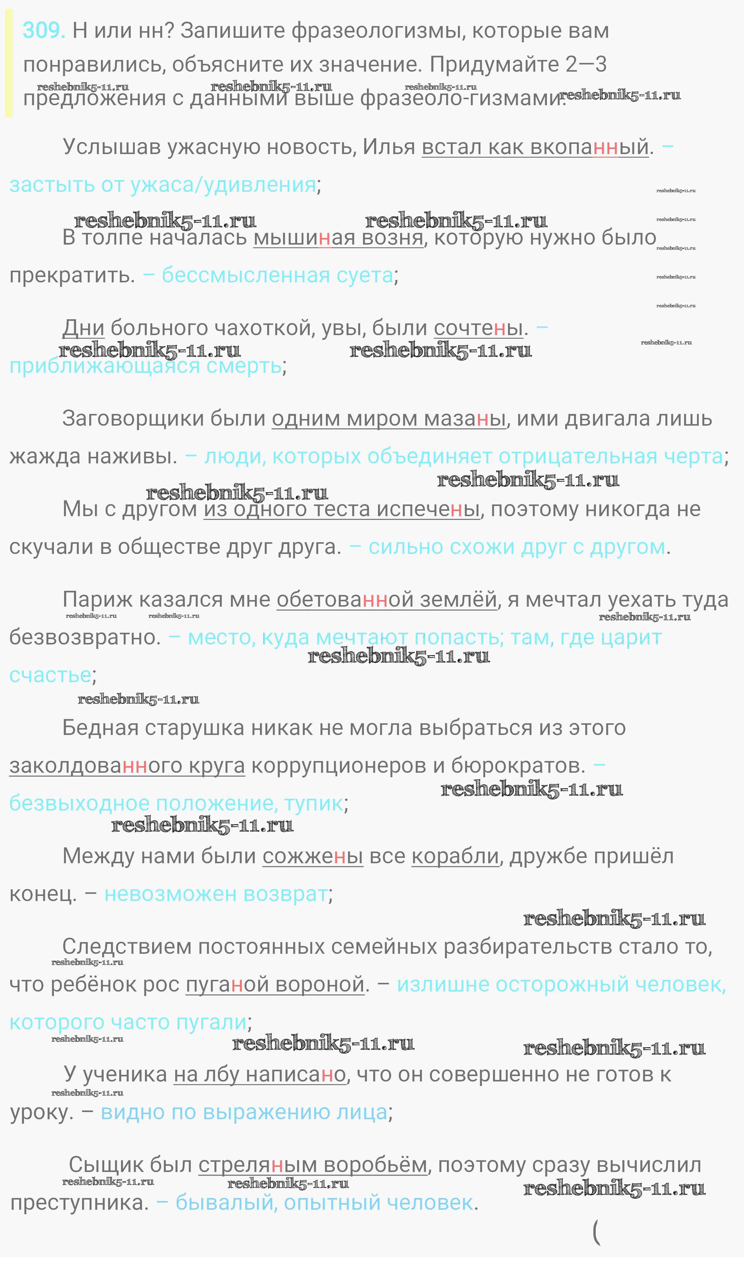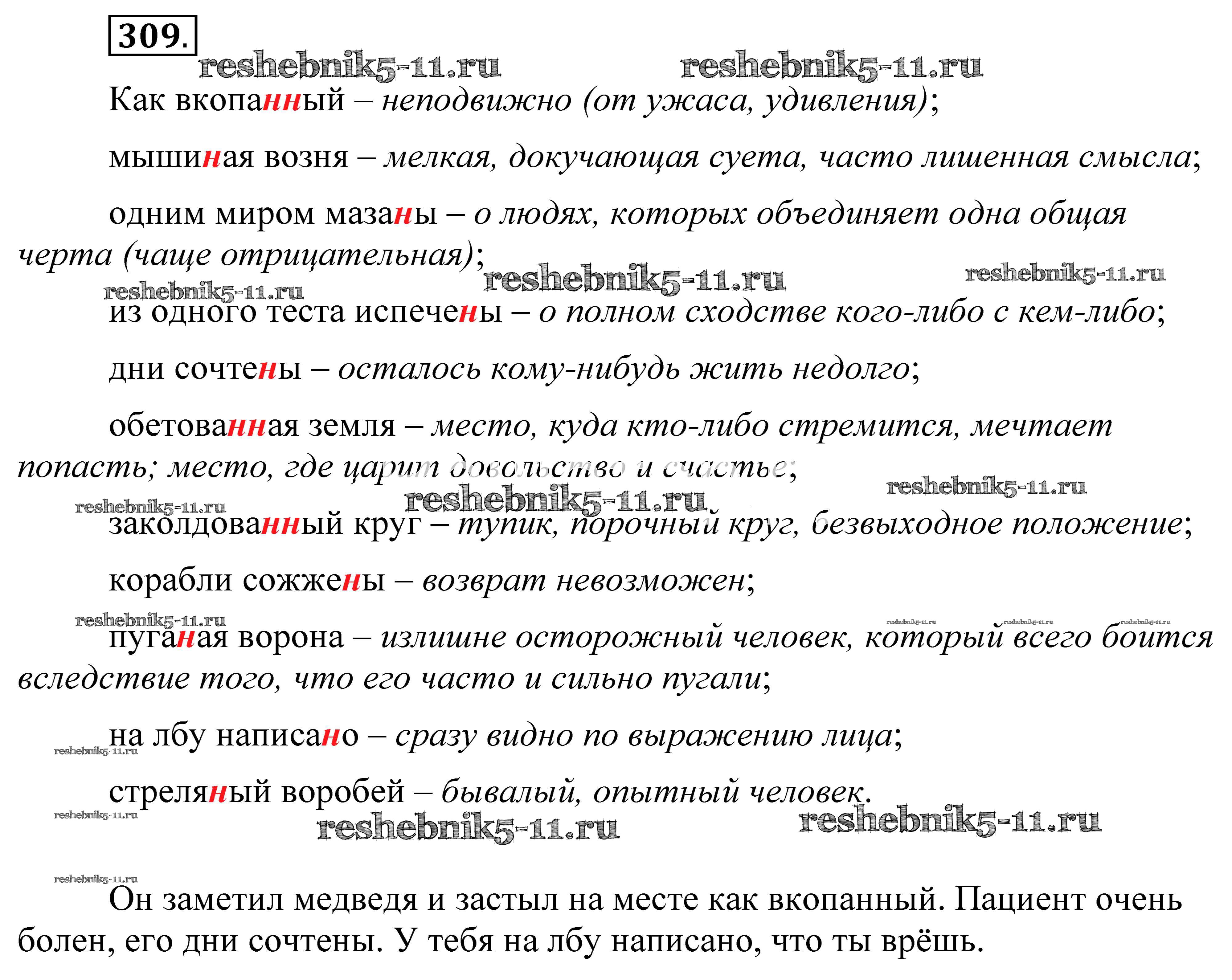 Готовая домашняя работа с ответами по Русскому языку за 8 класс Пичугов, Еремеева, Купалова, Леденева Практика Вертикаль Дрофа 2016 ФГОС - Упражнения 309