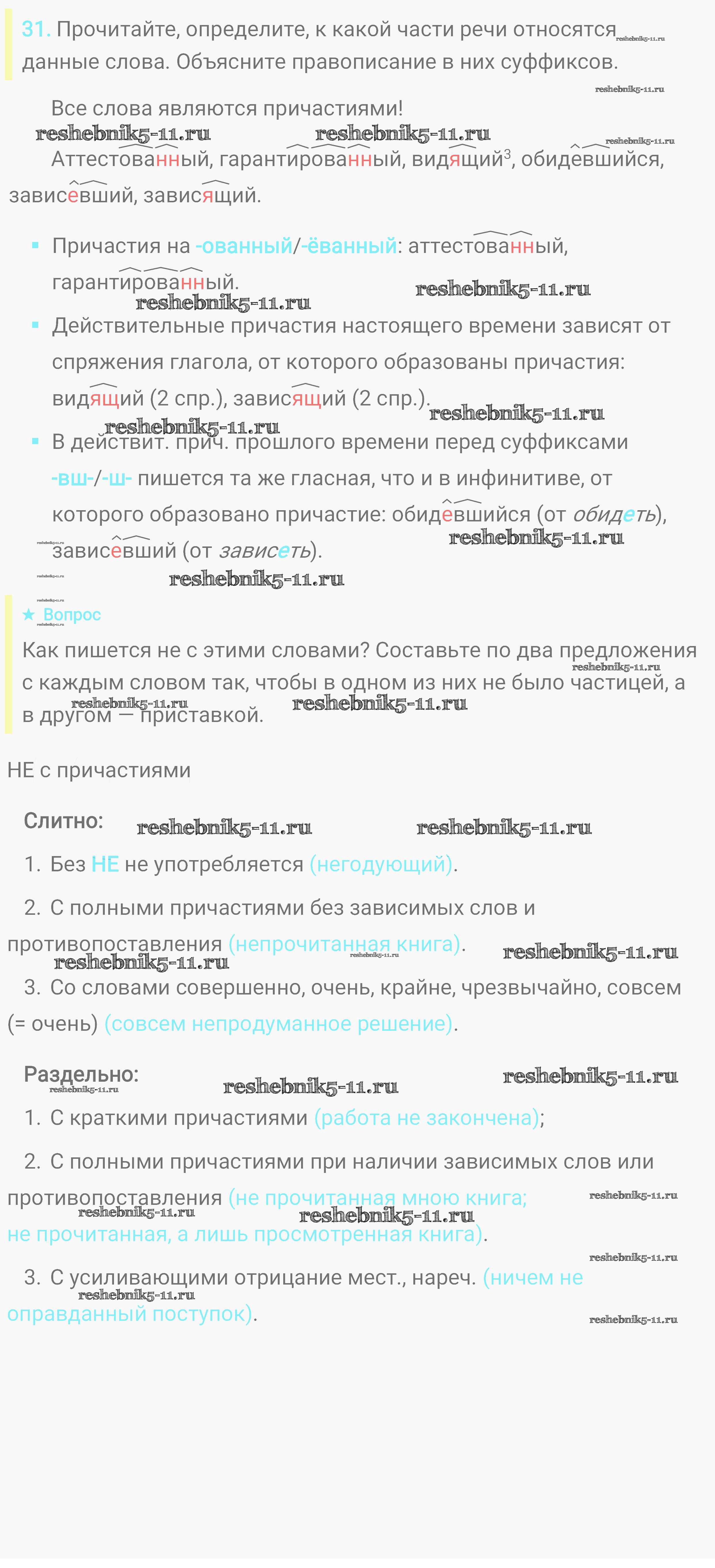 Готовая домашняя работа с ответами по Русскому языку за 8 класс Пичугов, Еремеева, Купалова, Леденева Практика Вертикаль Дрофа 2016 ФГОС - Упражнения 31