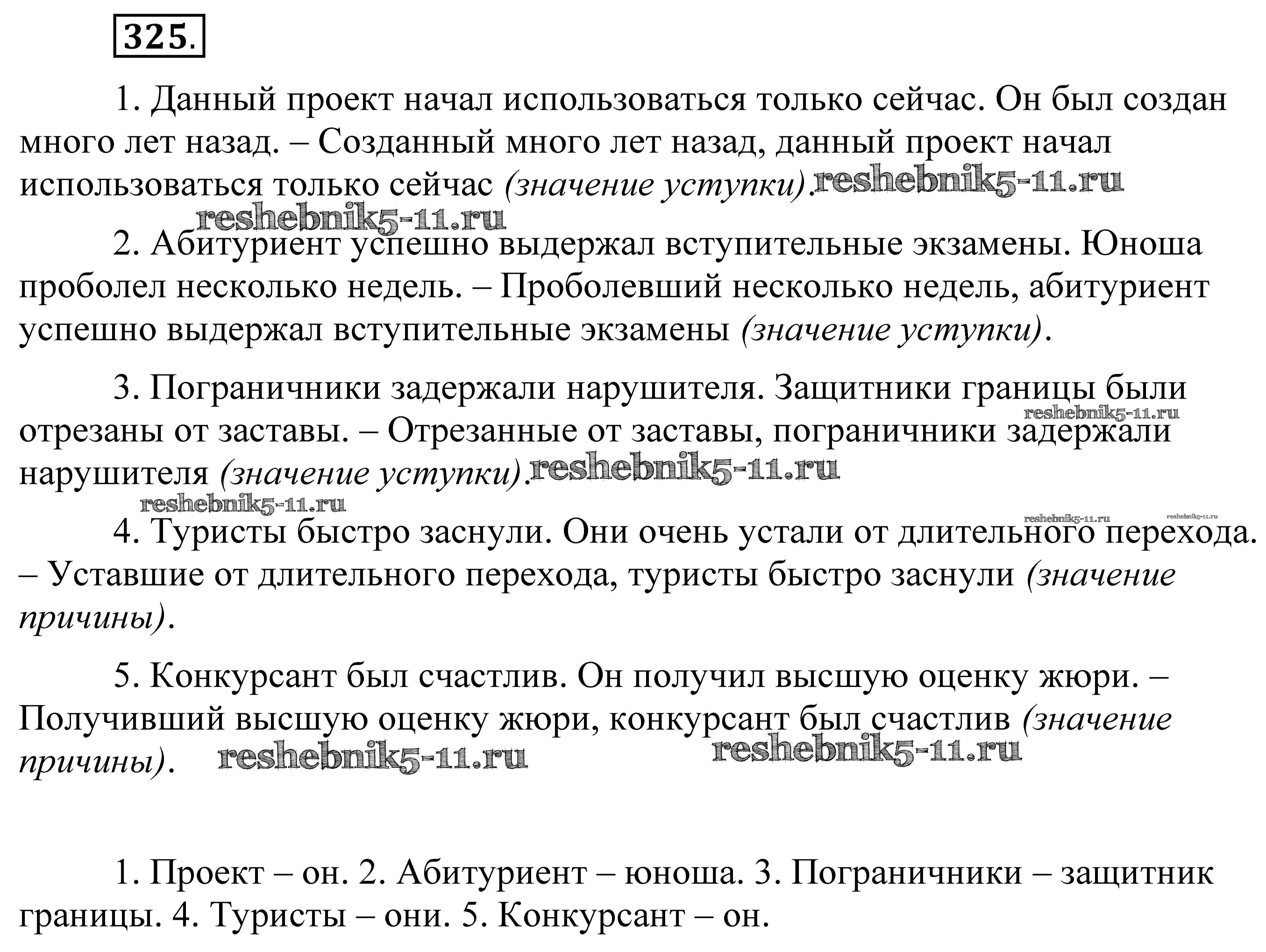 Готовая домашняя работа с ответами по Русскому языку за 8 класс Пичугов, Еремеева, Купалова, Леденева Практика Вертикаль Дрофа 2016 ФГОС - Упражнения 325