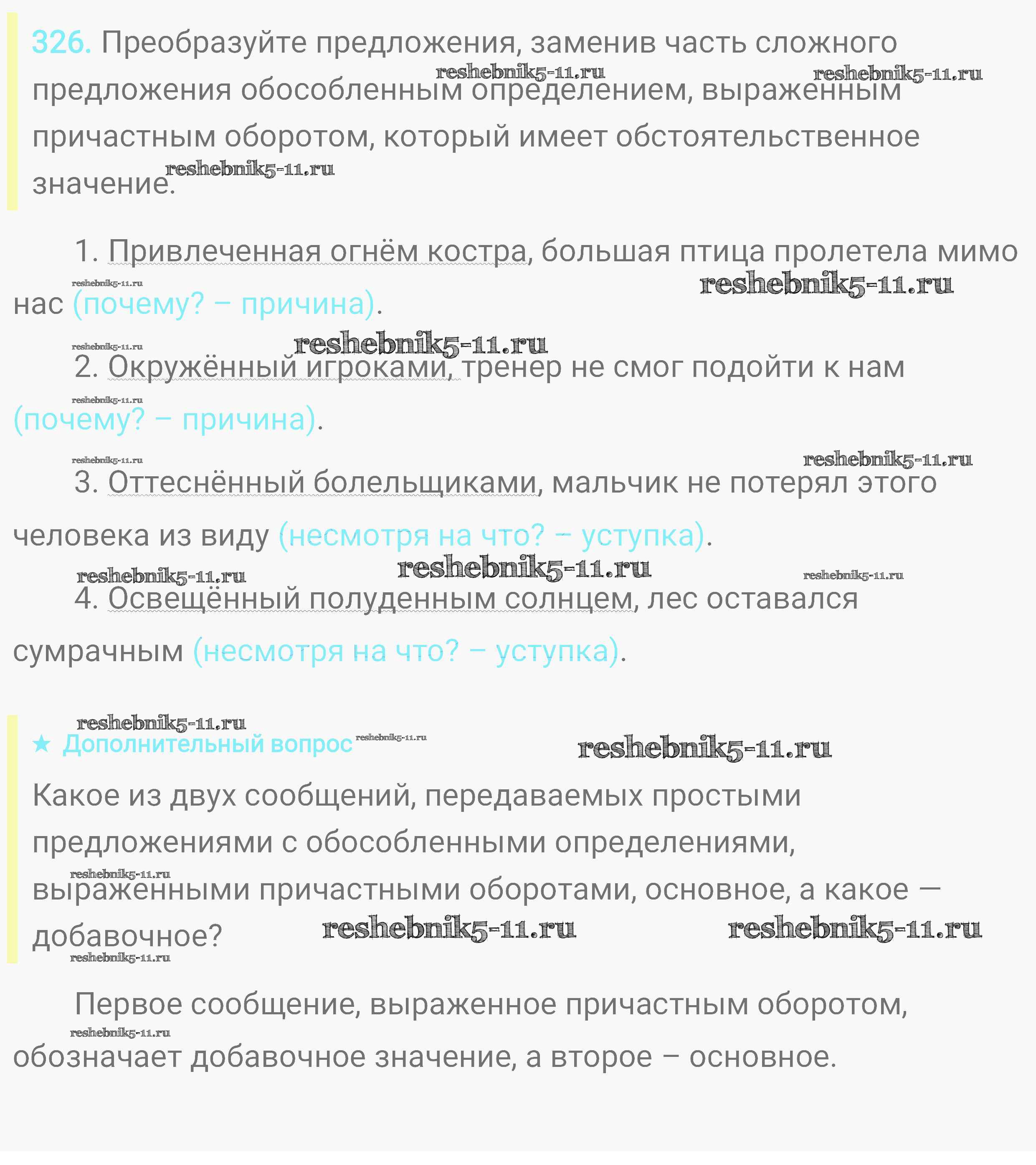 Готовая домашняя работа с ответами по Русскому языку за 8 класс Пичугов, Еремеева, Купалова, Леденева Практика Вертикаль Дрофа 2016 ФГОС - Упражнения 326