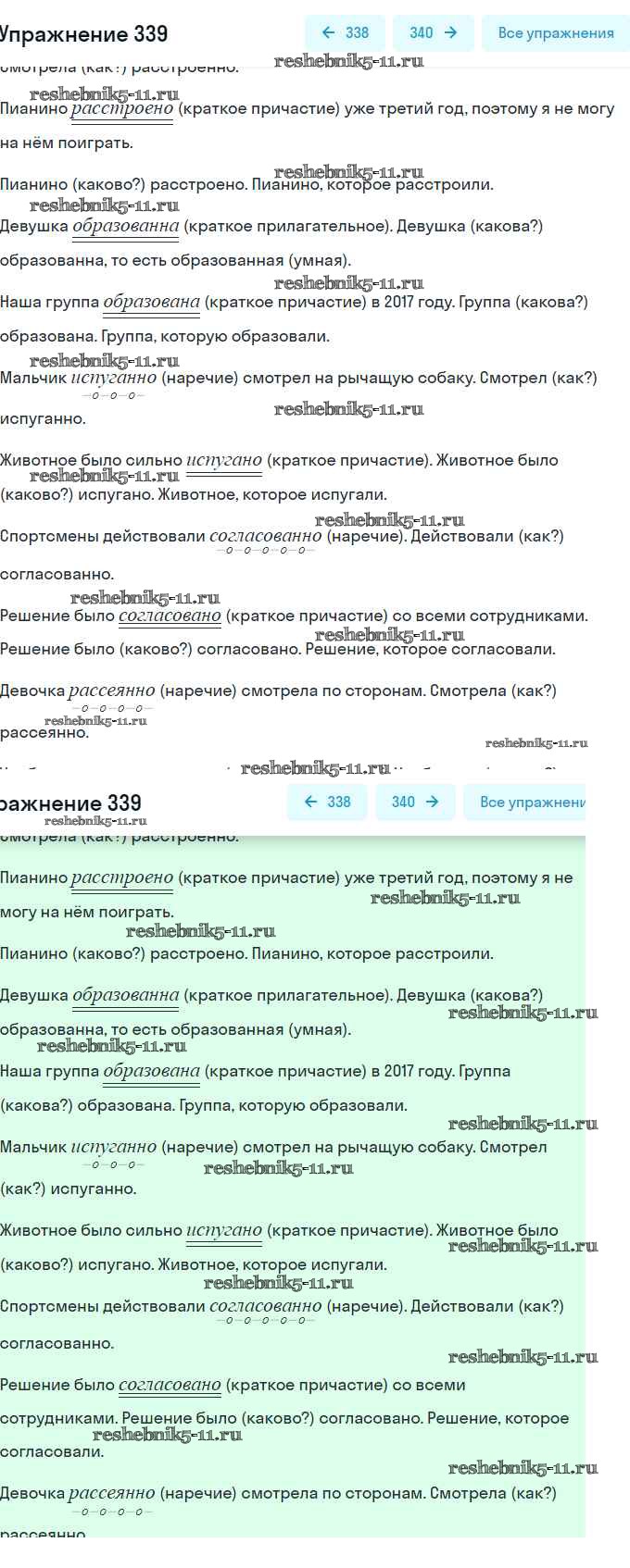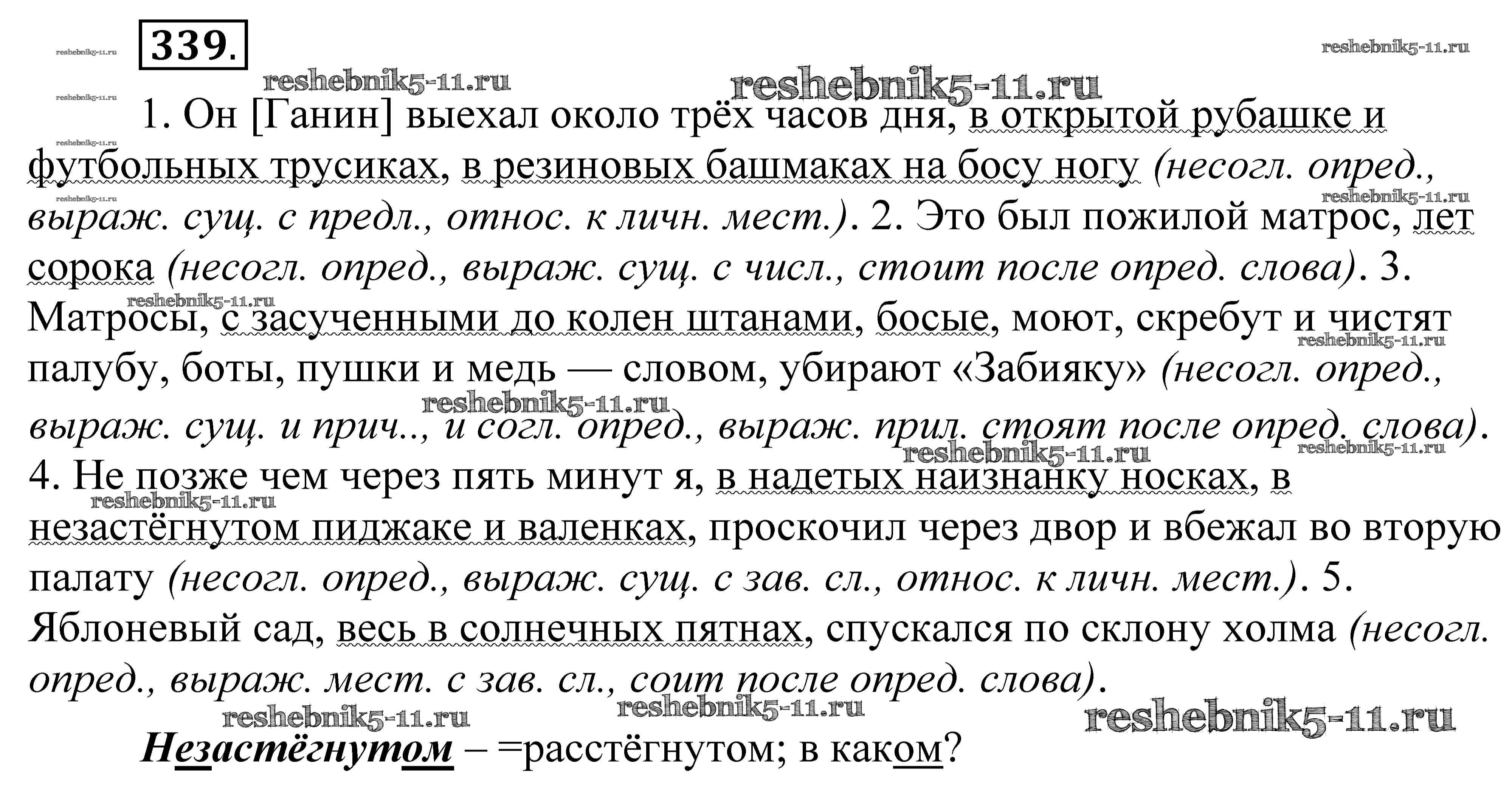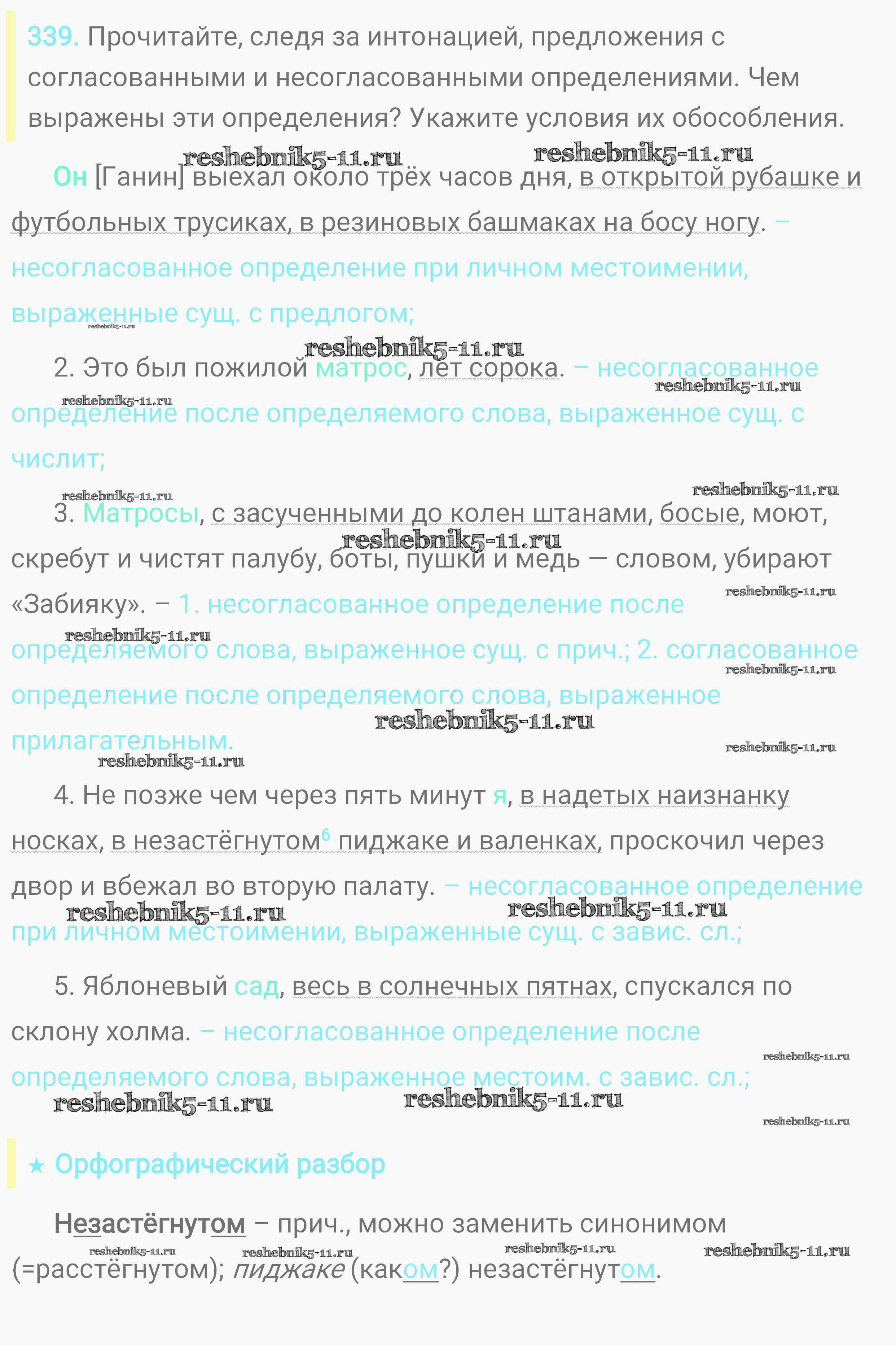 Готовая домашняя работа с ответами по Русскому языку за 8 класс Пичугов, Еремеева, Купалова, Леденева Практика Вертикаль Дрофа 2016 ФГОС - Упражнения 339