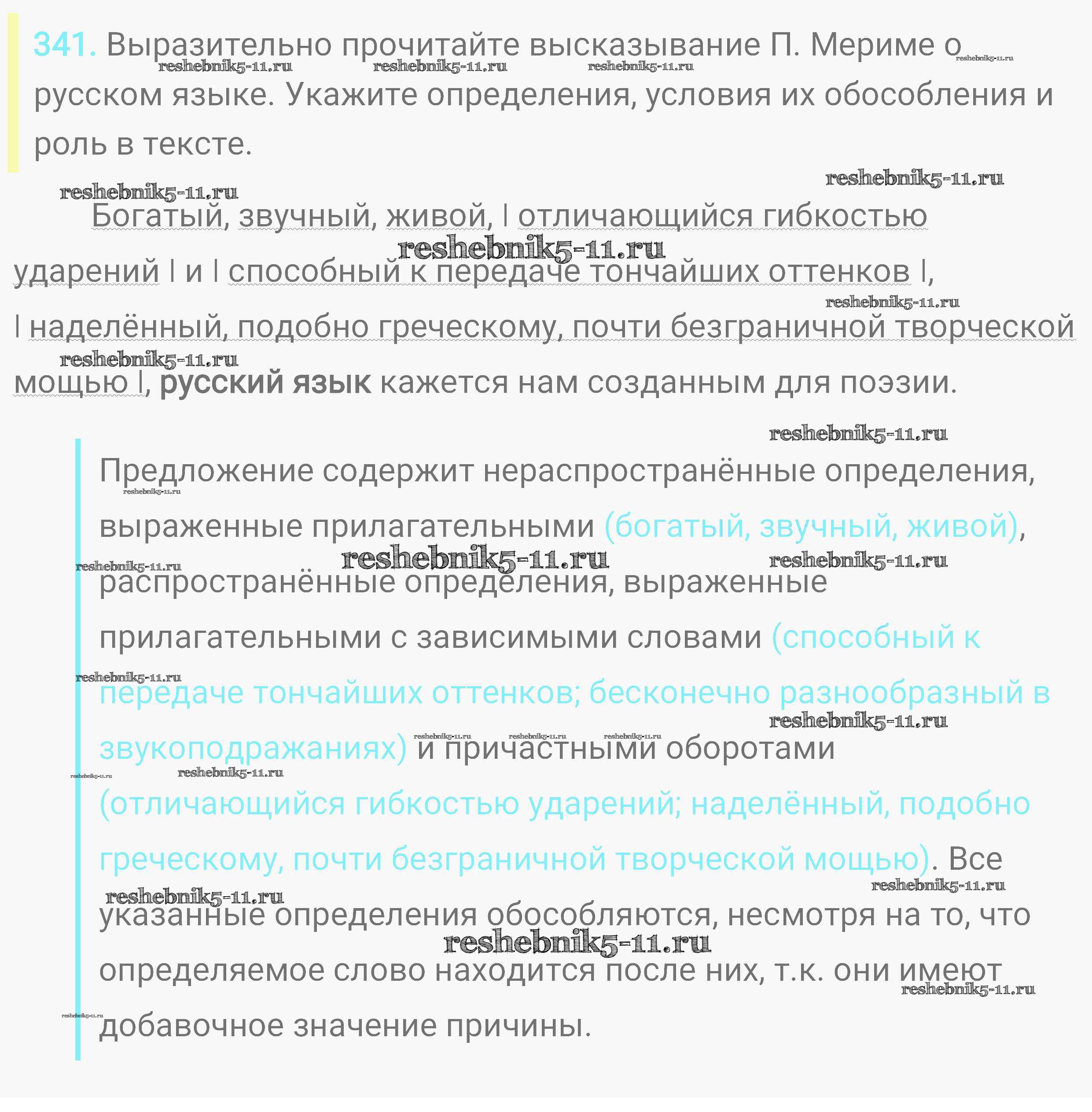 Готовая домашняя работа с ответами по Русскому языку за 8 класс Пичугов, Еремеева, Купалова, Леденева Практика Вертикаль Дрофа 2016 ФГОС - Упражнения 341