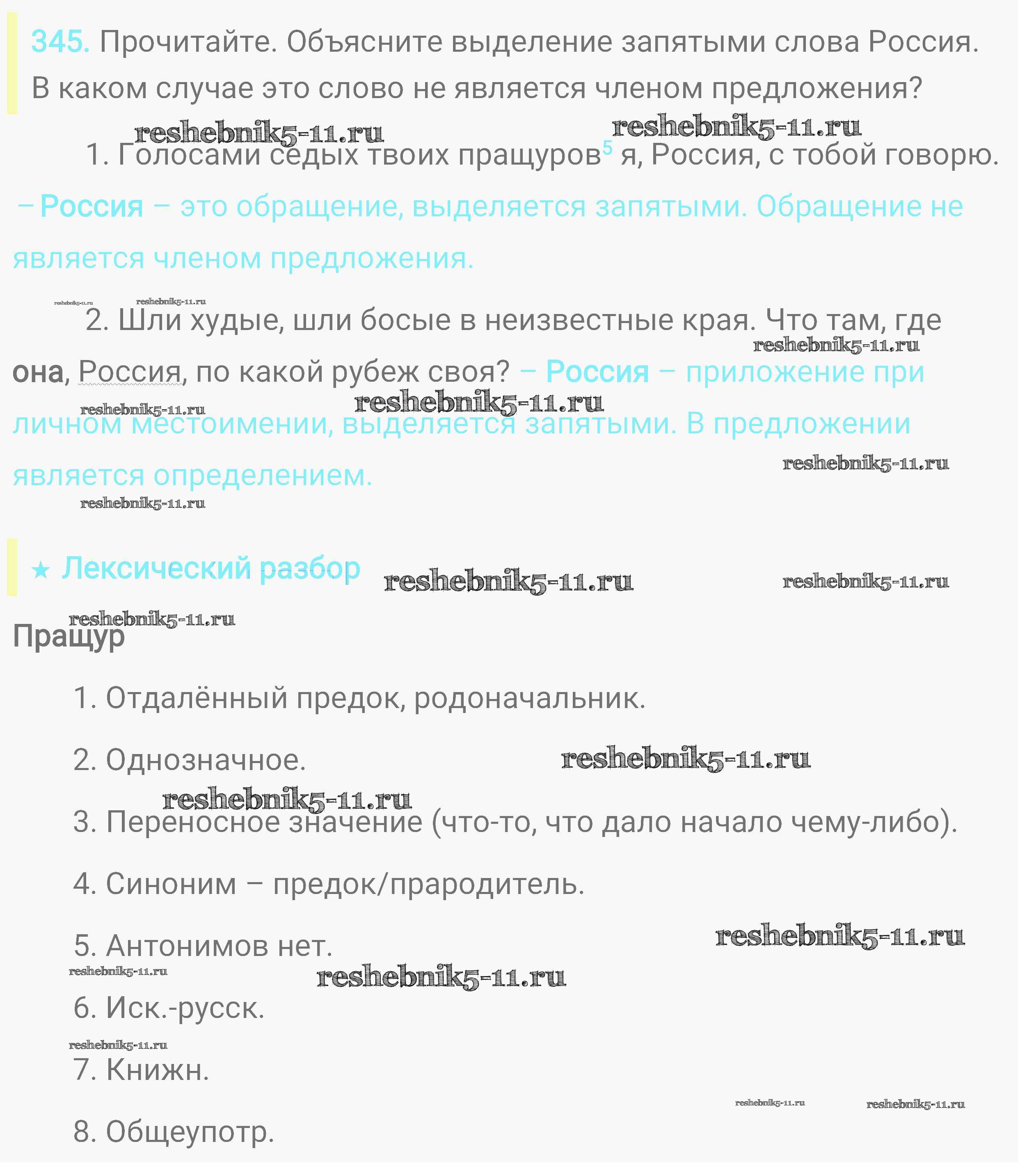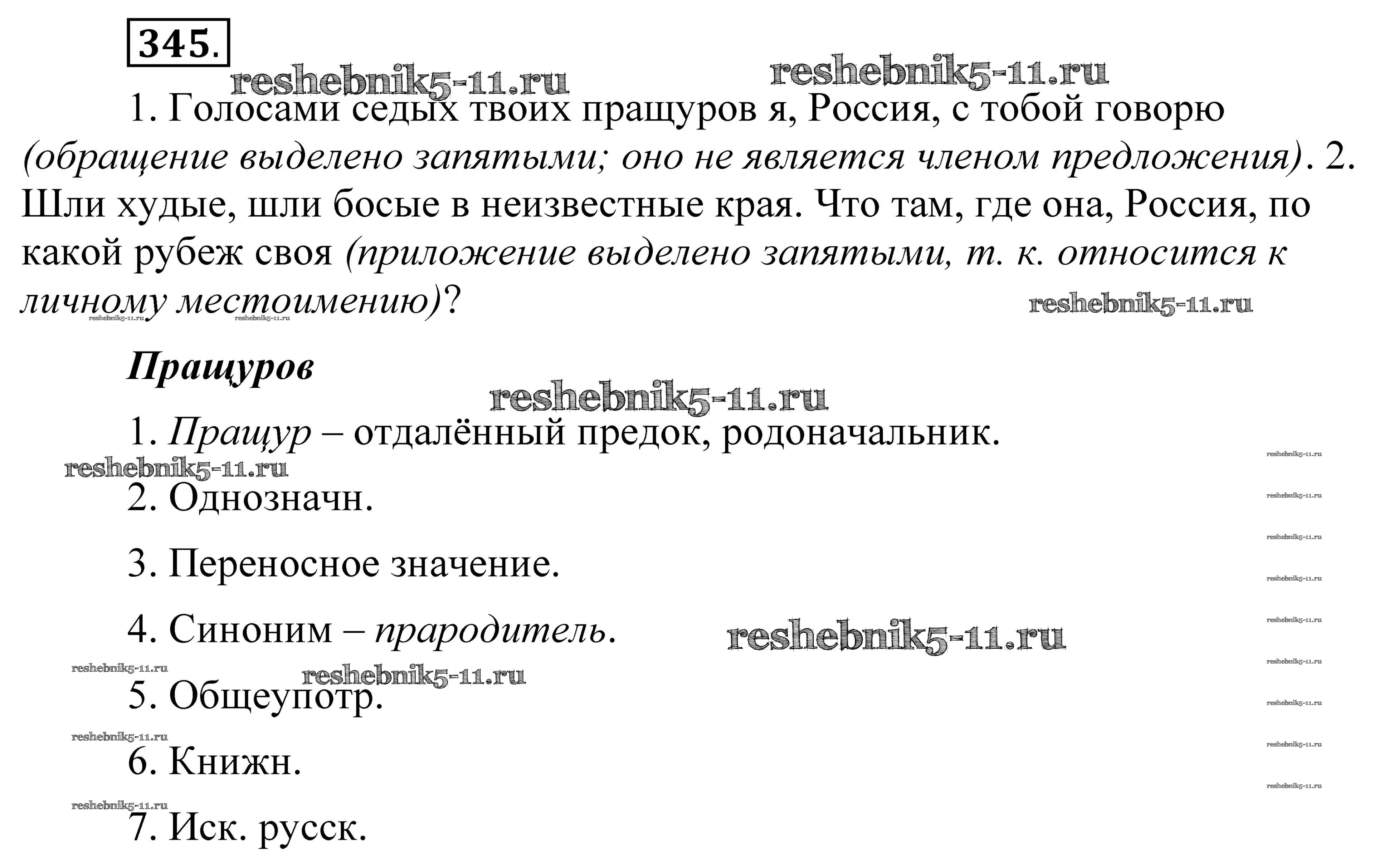 Готовая домашняя работа с ответами по Русскому языку за 8 класс Пичугов, Еремеева, Купалова, Леденева Практика Вертикаль Дрофа 2016 ФГОС - Упражнения 345
