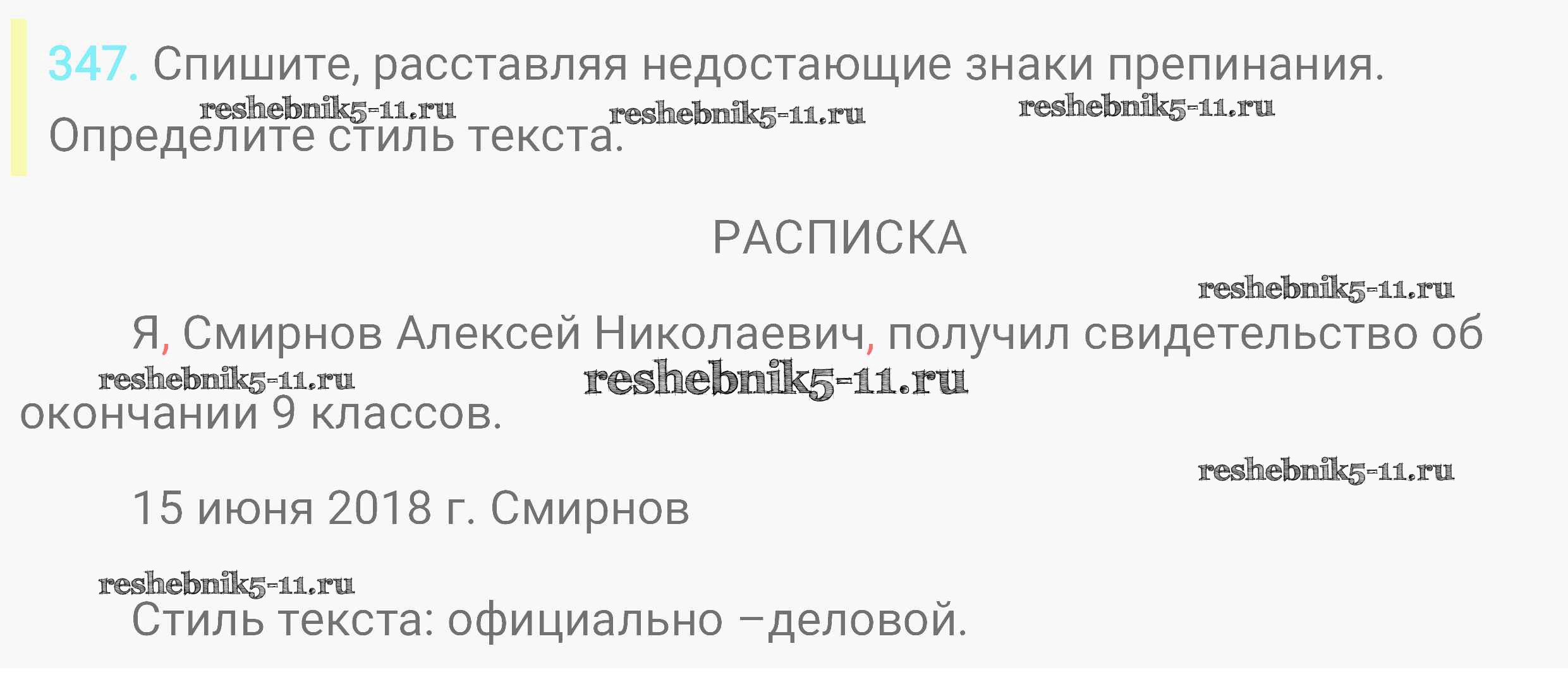 Готовая домашняя работа с ответами по Русскому языку за 8 класс Пичугов, Еремеева, Купалова, Леденева Практика Вертикаль Дрофа 2016 ФГОС - Упражнения 347