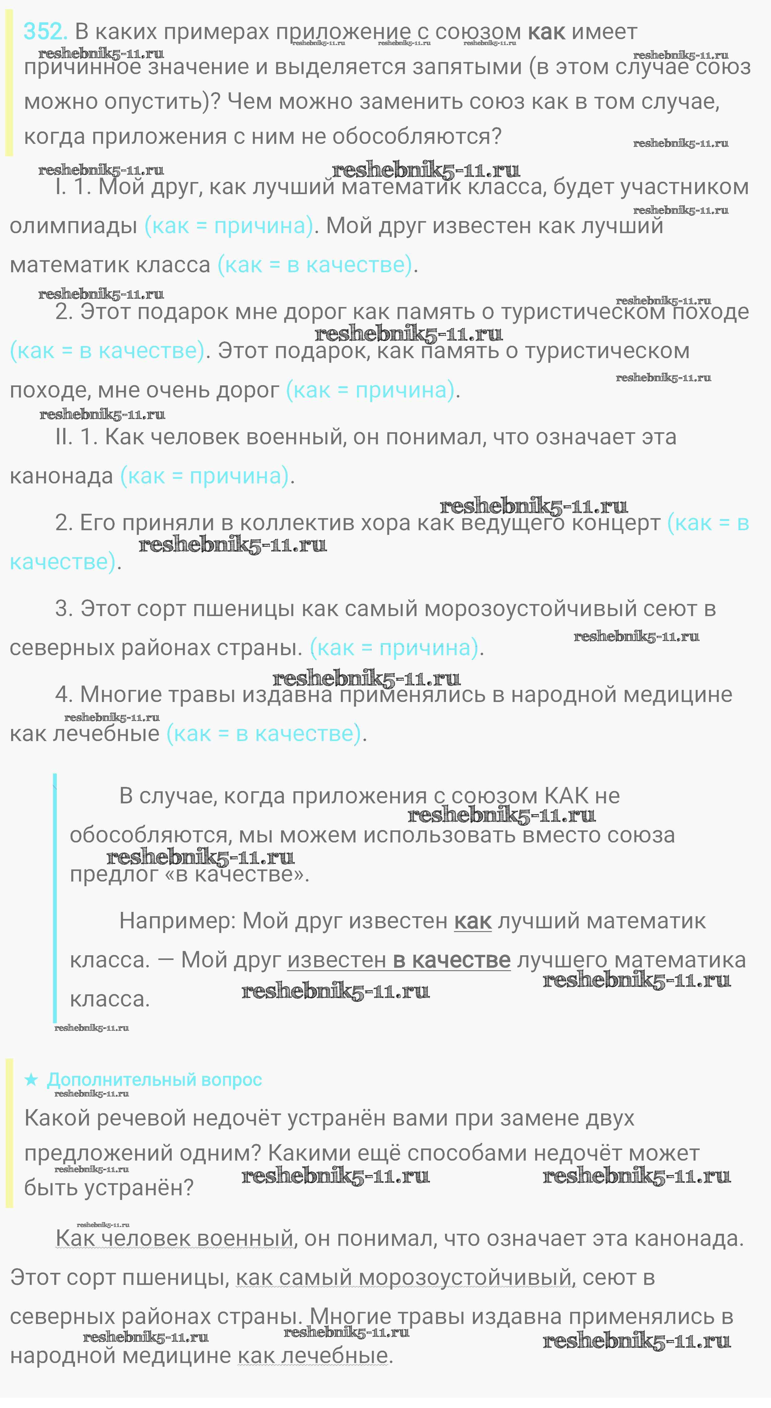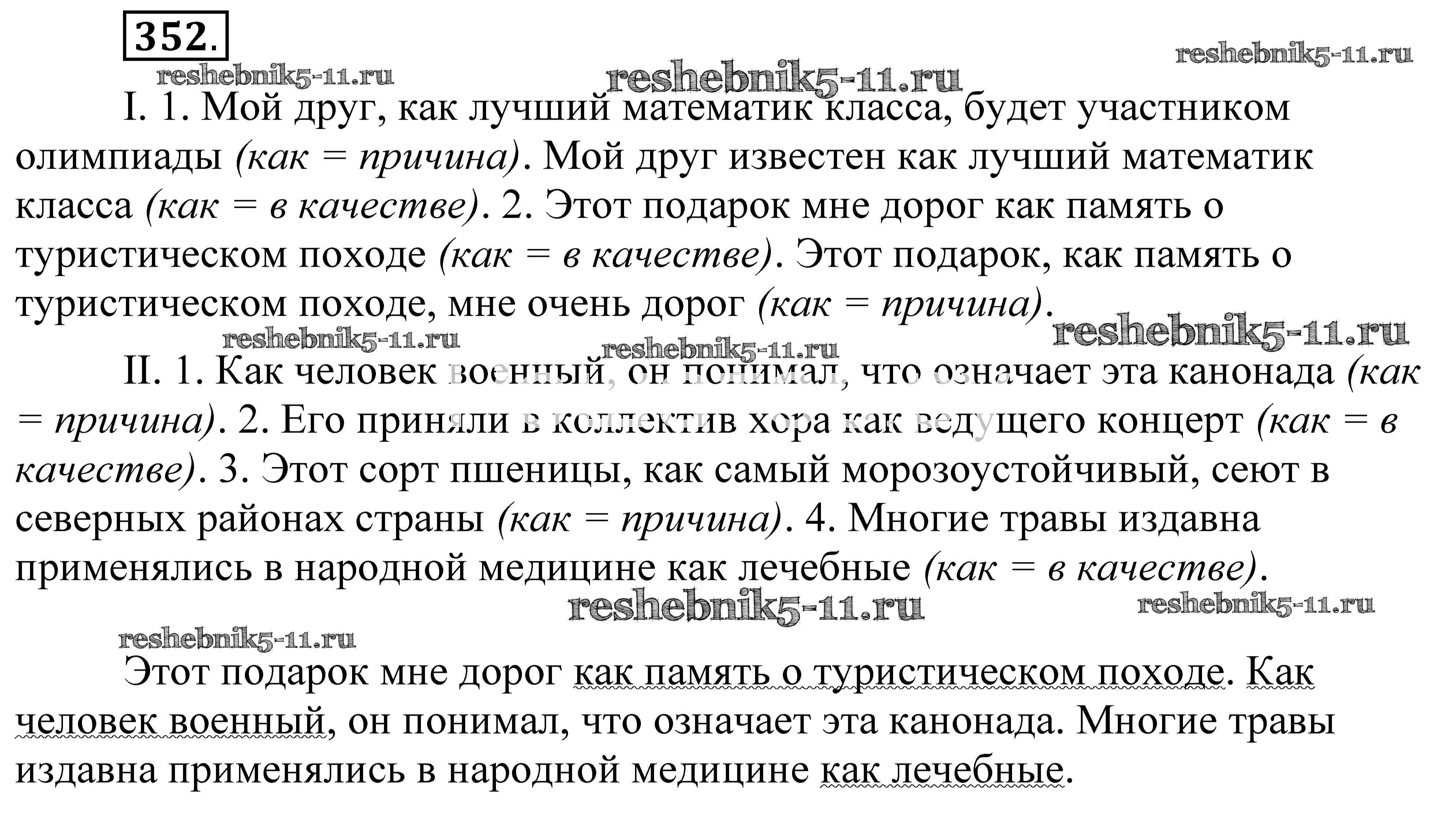 Готовая домашняя работа с ответами по Русскому языку за 8 класс Пичугов, Еремеева, Купалова, Леденева Практика Вертикаль Дрофа 2016 ФГОС - Упражнения 352