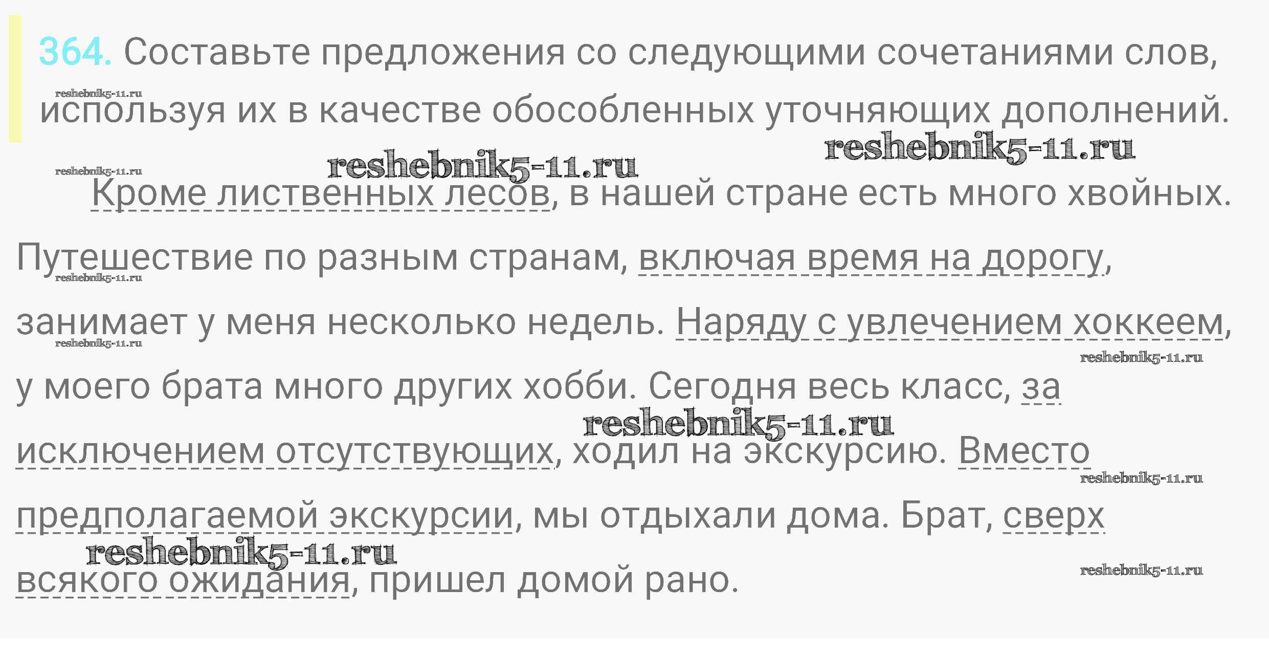 Готовая домашняя работа с ответами по Русскому языку за 8 класс Пичугов, Еремеева, Купалова, Леденева Практика Вертикаль Дрофа 2016 ФГОС - Упражнения 364
