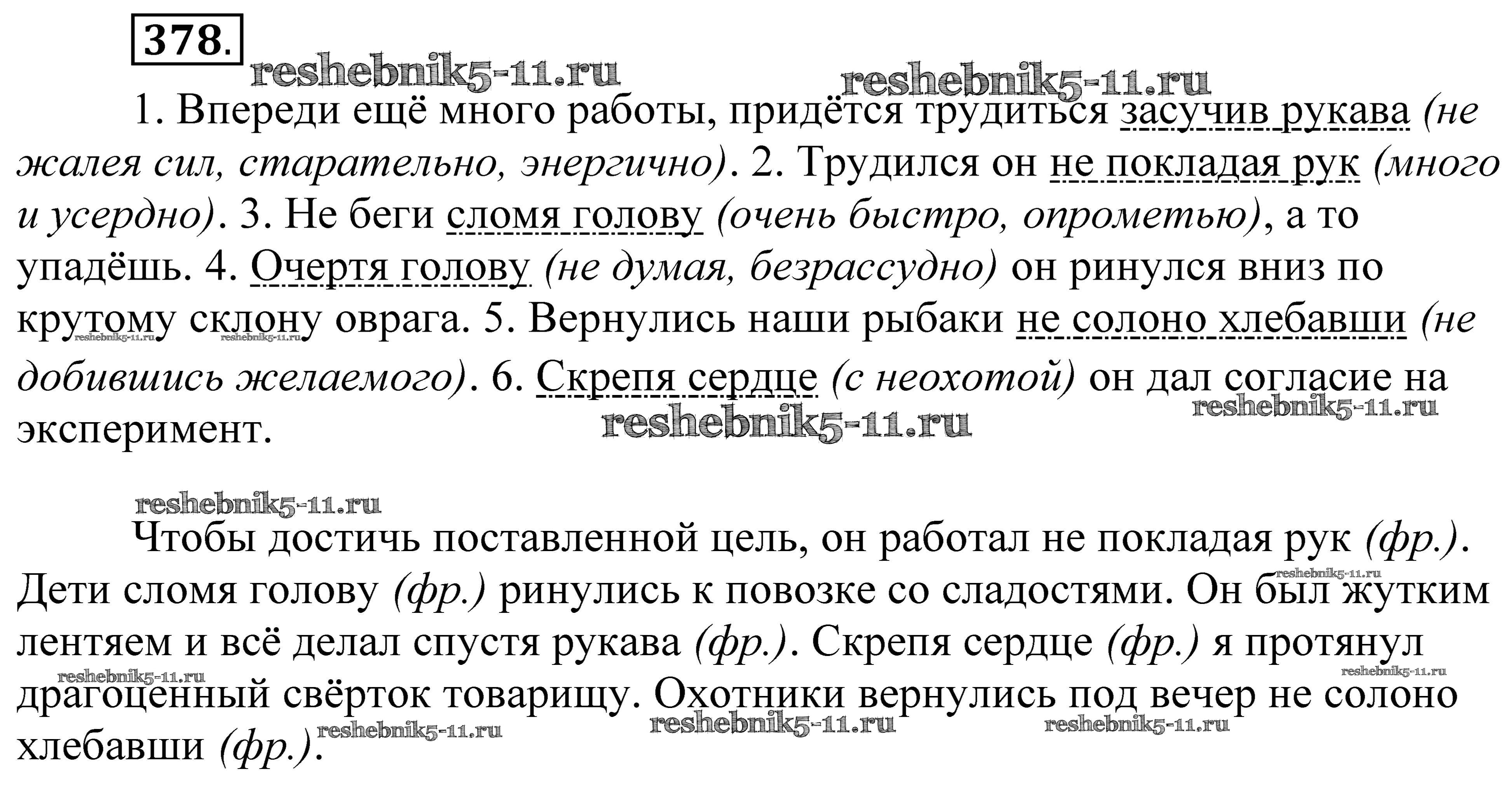 Готовая домашняя работа с ответами по Русскому языку за 8 класс Пичугов, Еремеева, Купалова, Леденева Практика Вертикаль Дрофа 2016 ФГОС - Упражнения 378