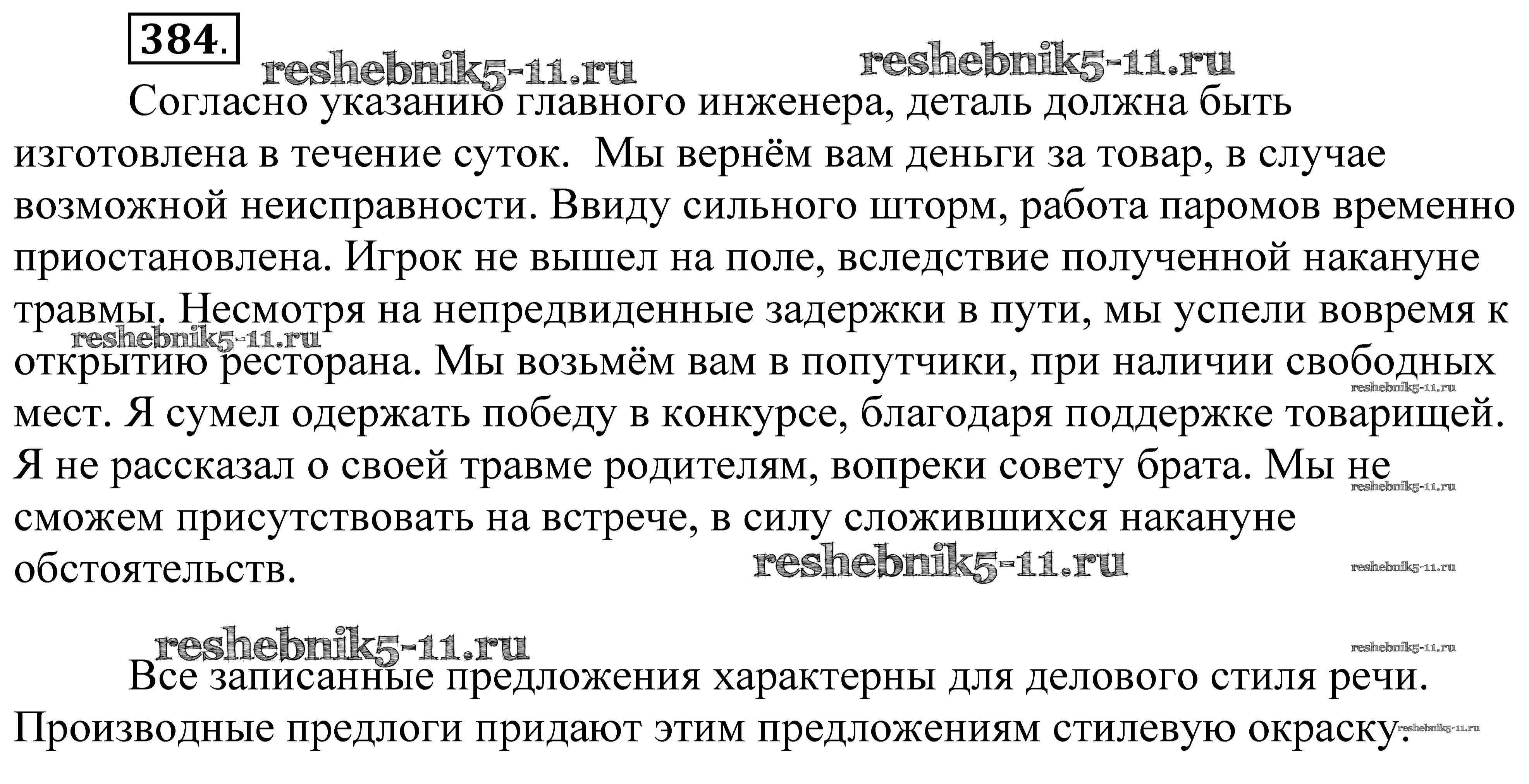 Готовая домашняя работа с ответами по Русскому языку за 8 класс Пичугов, Еремеева, Купалова, Леденева Практика Вертикаль Дрофа 2016 ФГОС - Упражнения 384