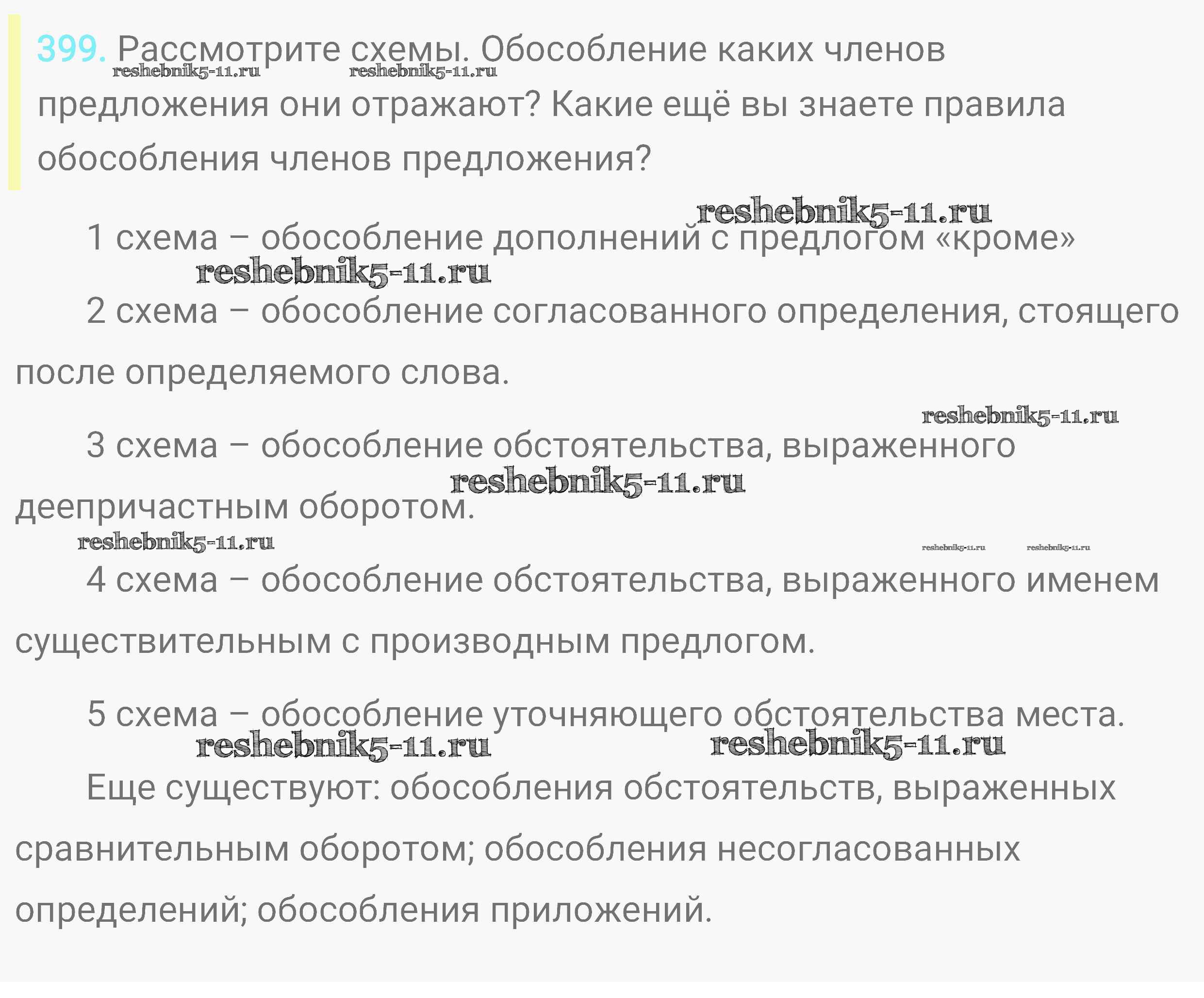Готовая домашняя работа с ответами по Русскому языку за 8 класс Пичугов, Еремеева, Купалова, Леденева Практика Вертикаль Дрофа 2016 ФГОС - Упражнения 399