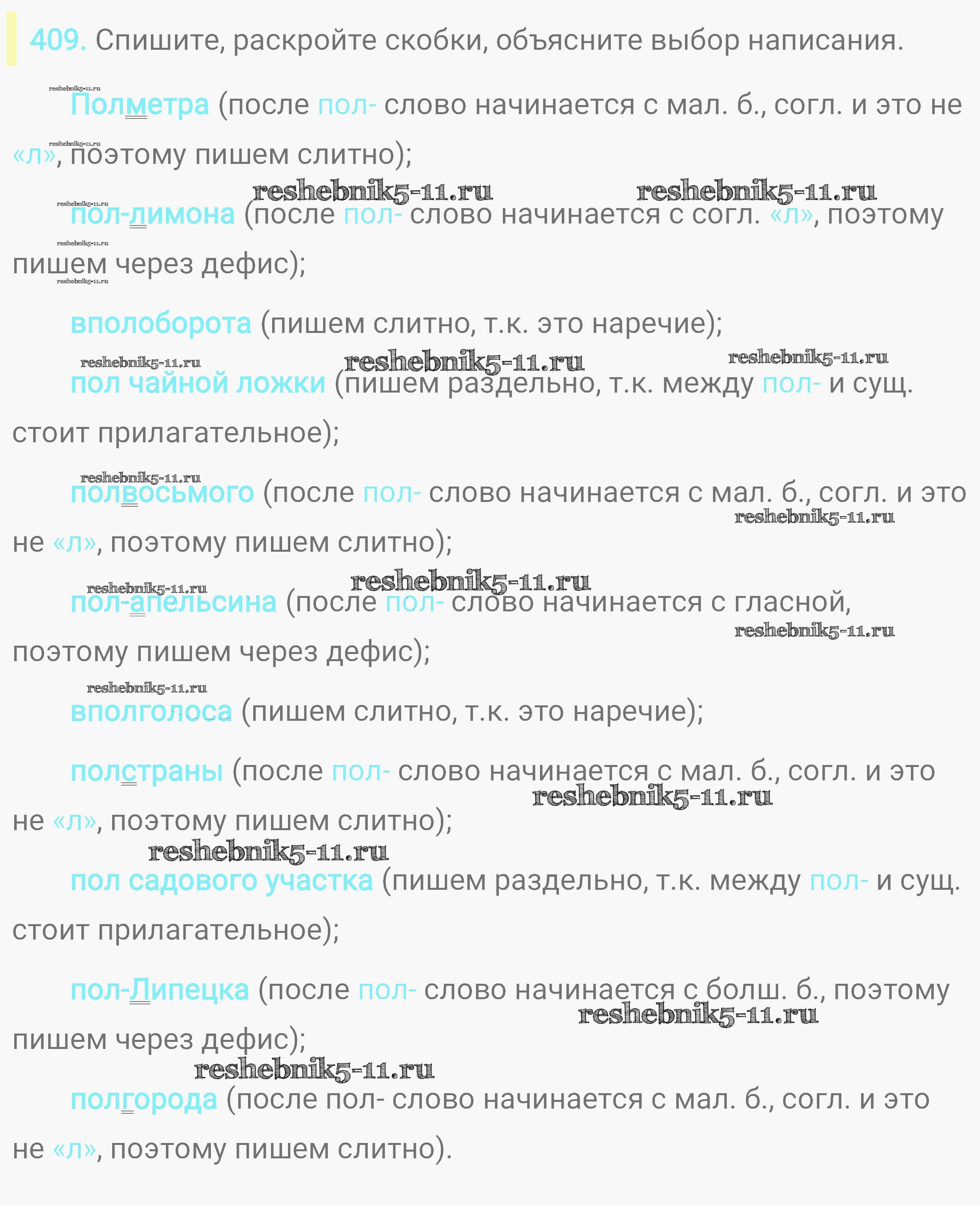 Готовая домашняя работа с ответами по Русскому языку за 8 класс Пичугов, Еремеева, Купалова, Леденева Практика Вертикаль Дрофа 2016 ФГОС - Упражнения 409