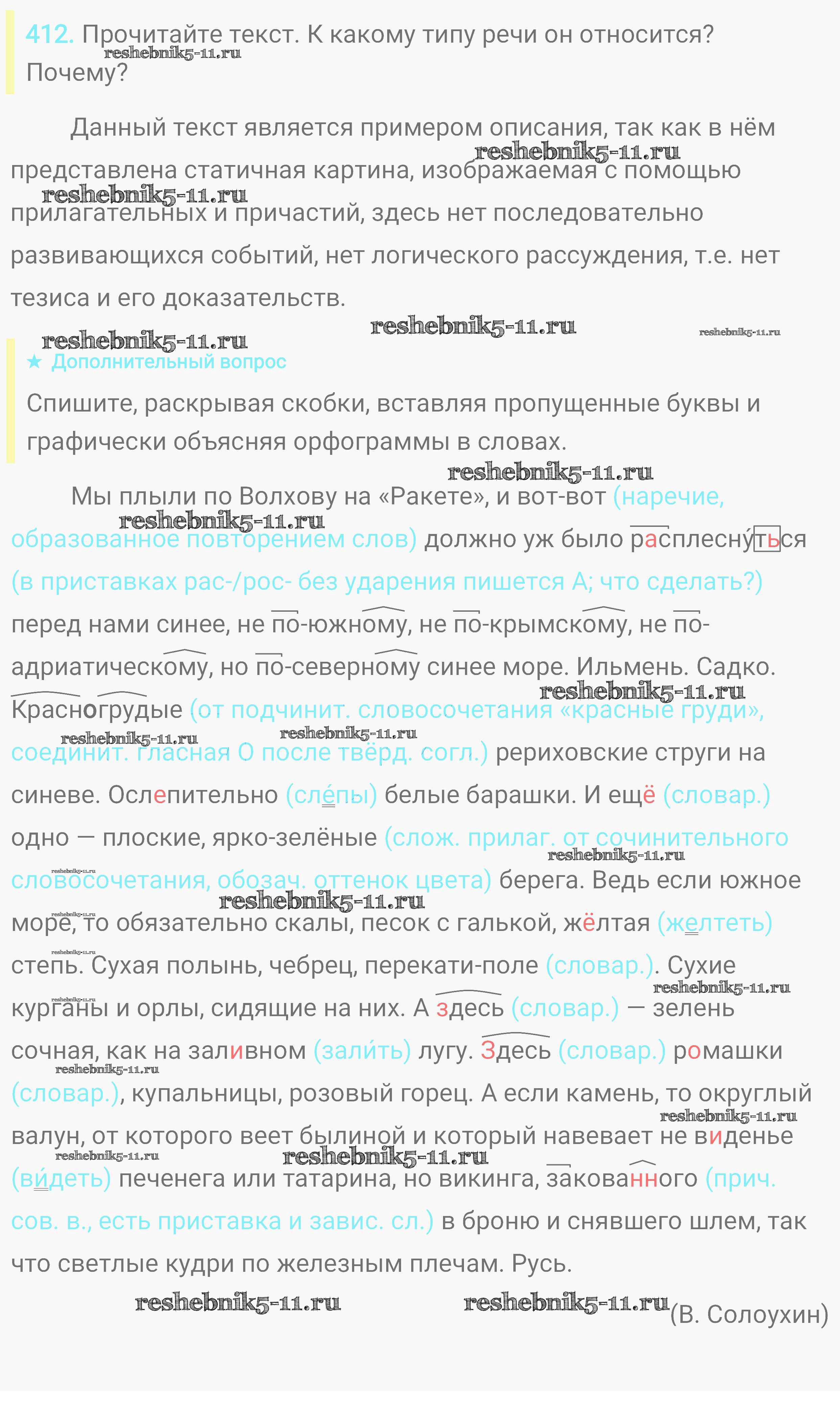 Готовая домашняя работа с ответами по Русскому языку за 8 класс Пичугов, Еремеева, Купалова, Леденева Практика Вертикаль Дрофа 2016 ФГОС - Упражнения 412
