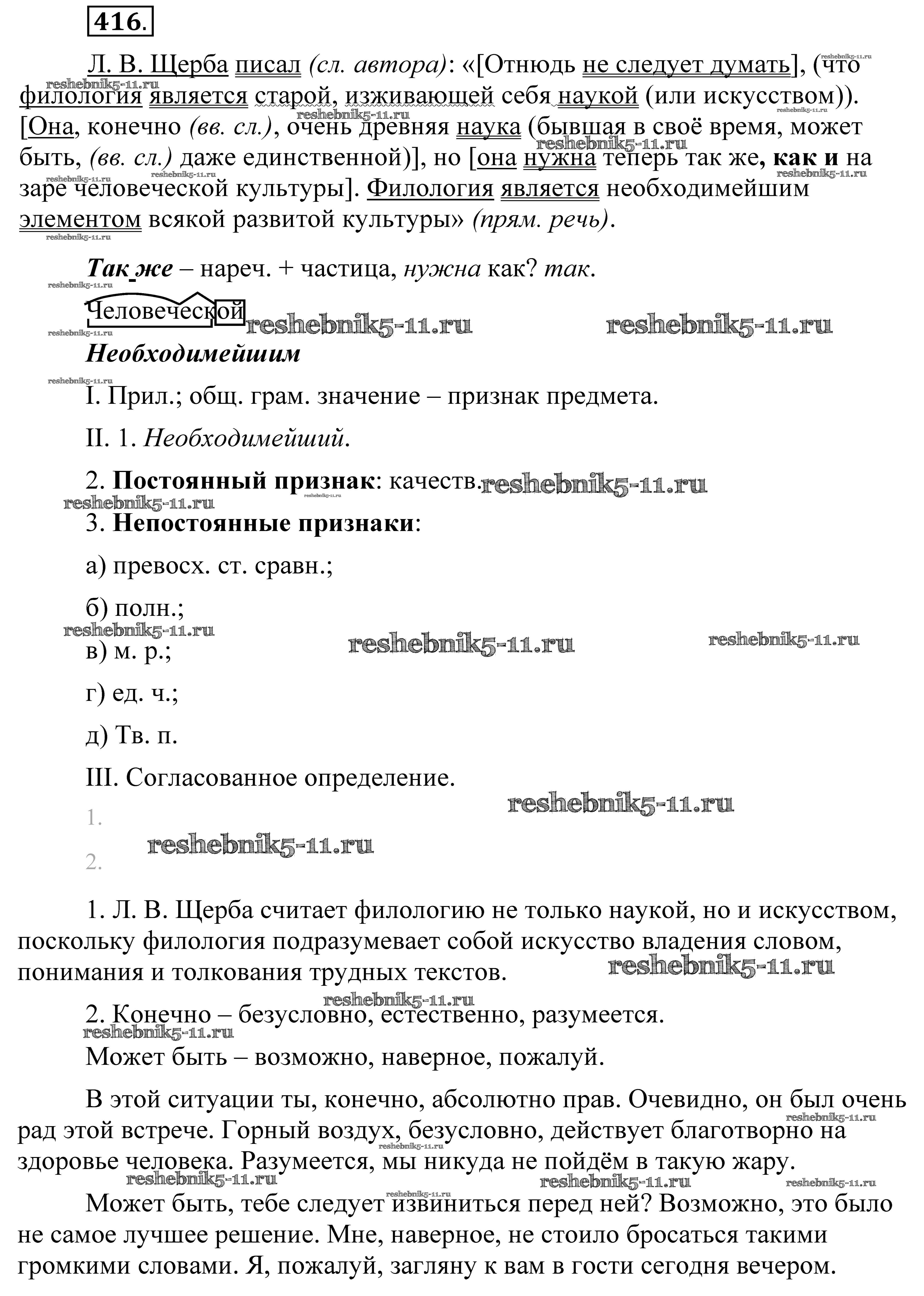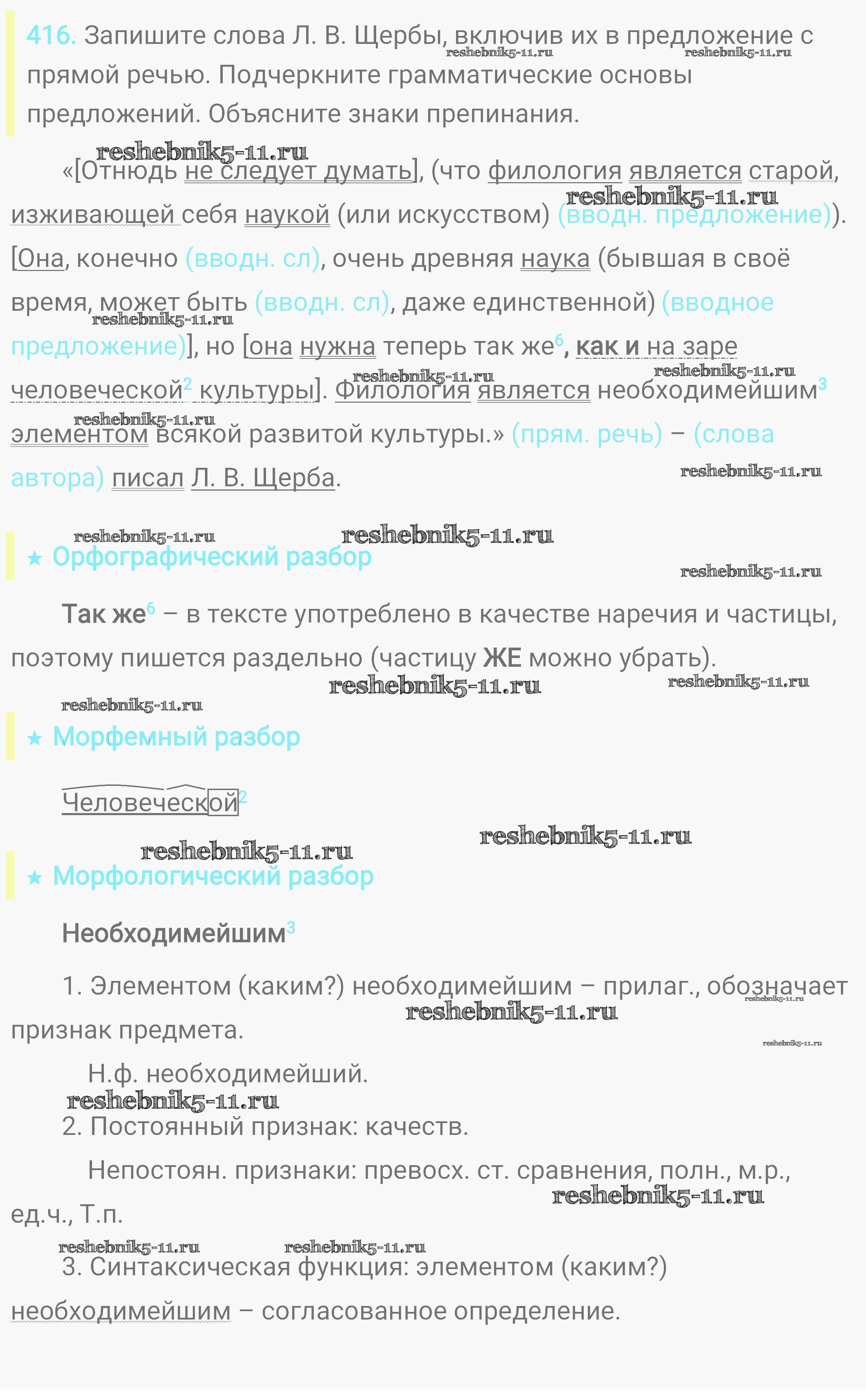 Готовая домашняя работа с ответами по Русскому языку за 8 класс Пичугов, Еремеева, Купалова, Леденева Практика Вертикаль Дрофа 2016 ФГОС - Упражнения 416