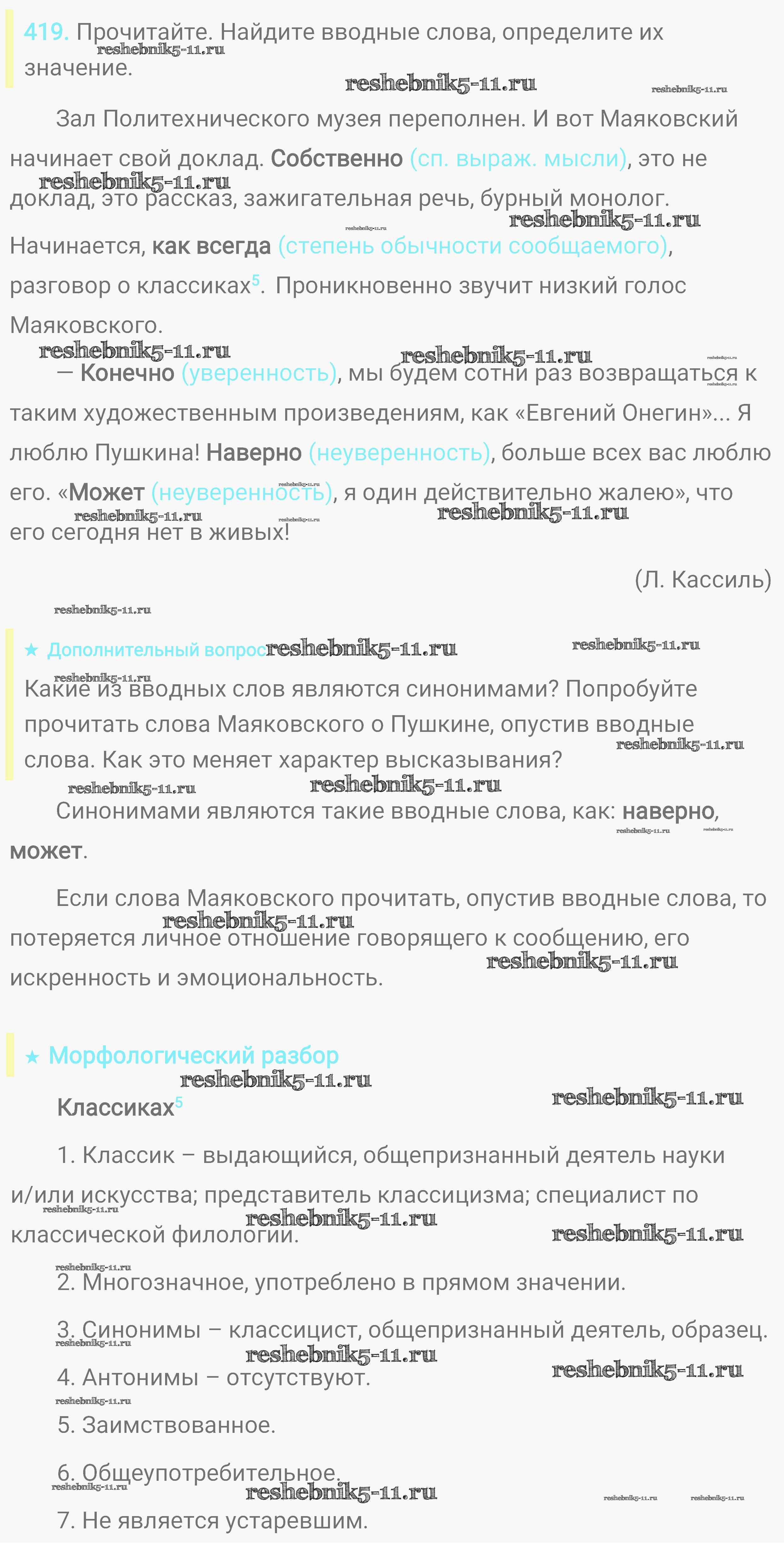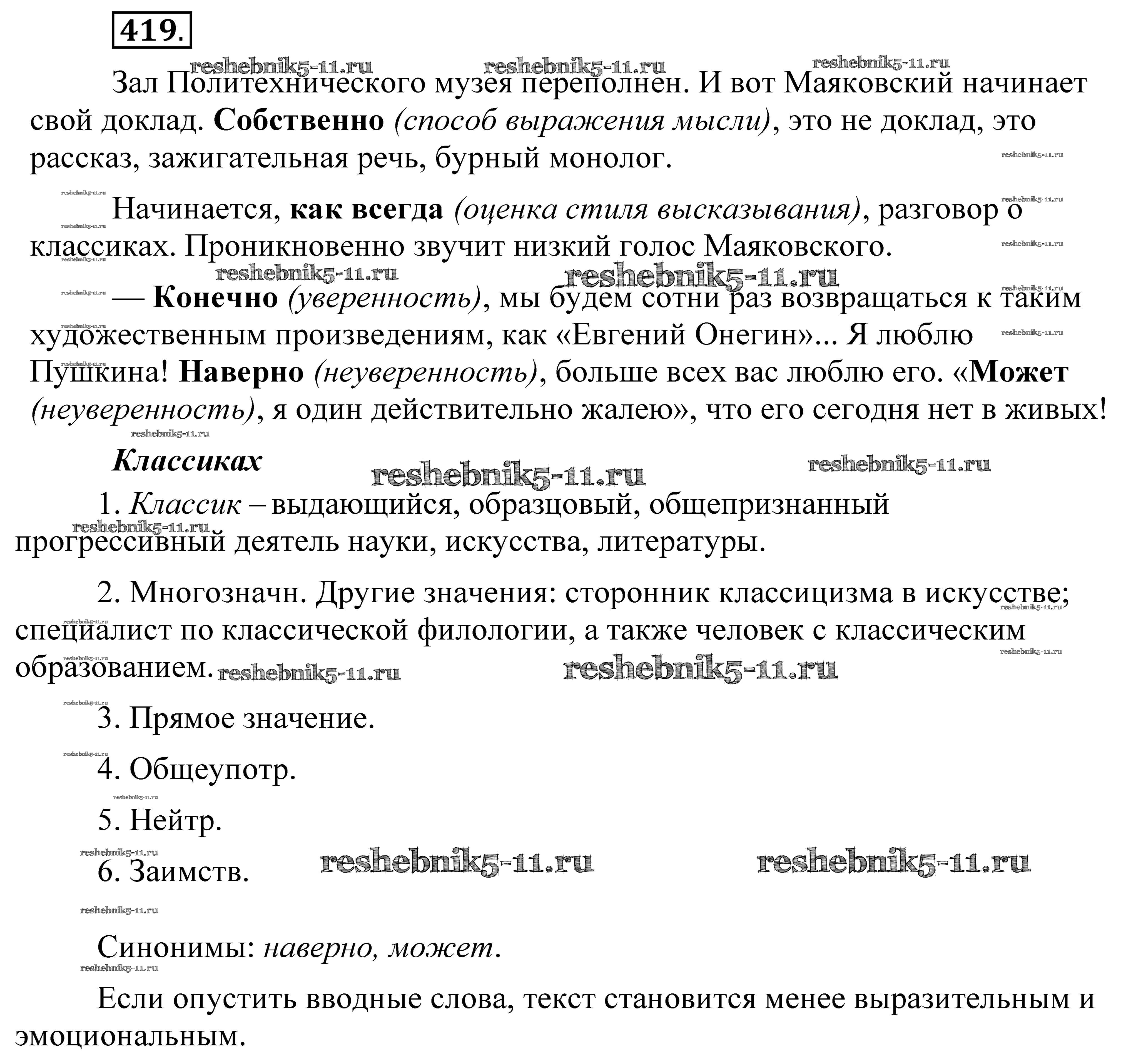 Готовая домашняя работа с ответами по Русскому языку за 8 класс Пичугов, Еремеева, Купалова, Леденева Практика Вертикаль Дрофа 2016 ФГОС - Упражнения 419