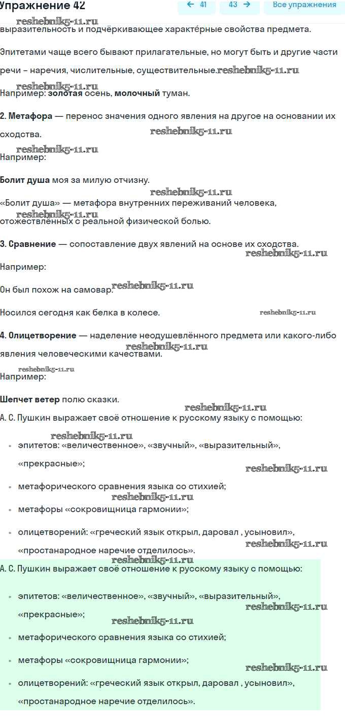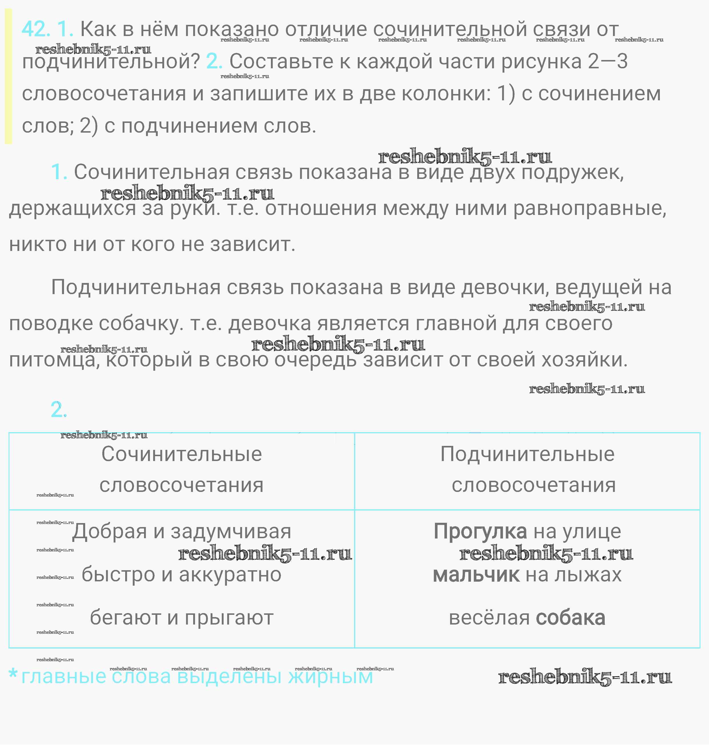 Готовая домашняя работа с ответами по Русскому языку за 8 класс Пичугов, Еремеева, Купалова, Леденева Практика Вертикаль Дрофа 2016 ФГОС - Упражнения 42
