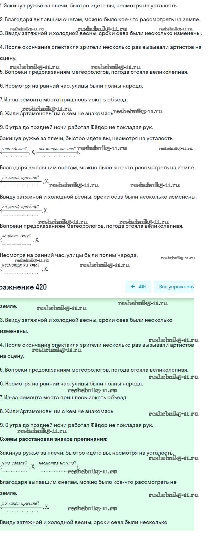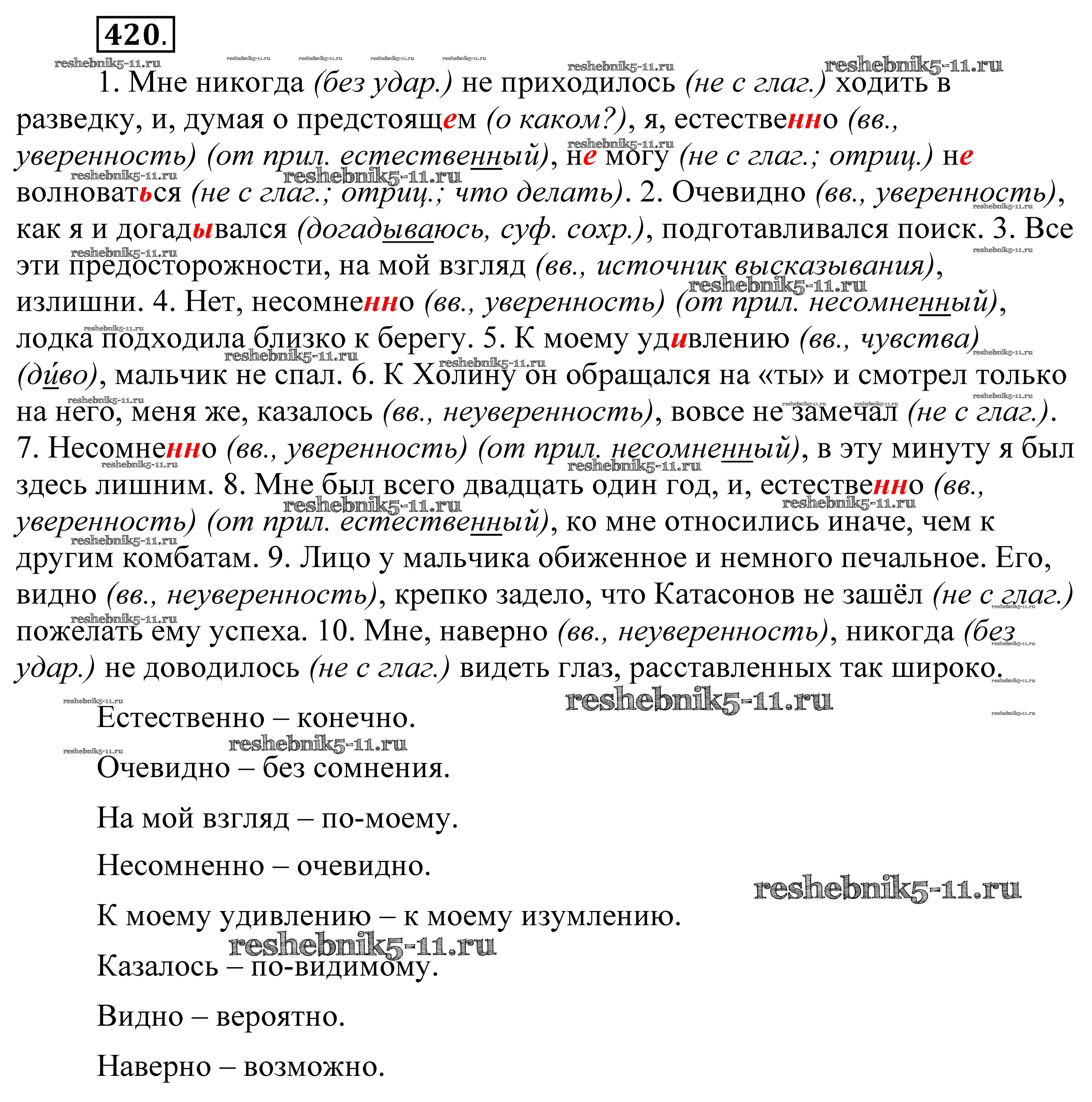 Готовая домашняя работа с ответами по Русскому языку за 8 класс Пичугов, Еремеева, Купалова, Леденева Практика Вертикаль Дрофа 2016 ФГОС - Упражнения 420