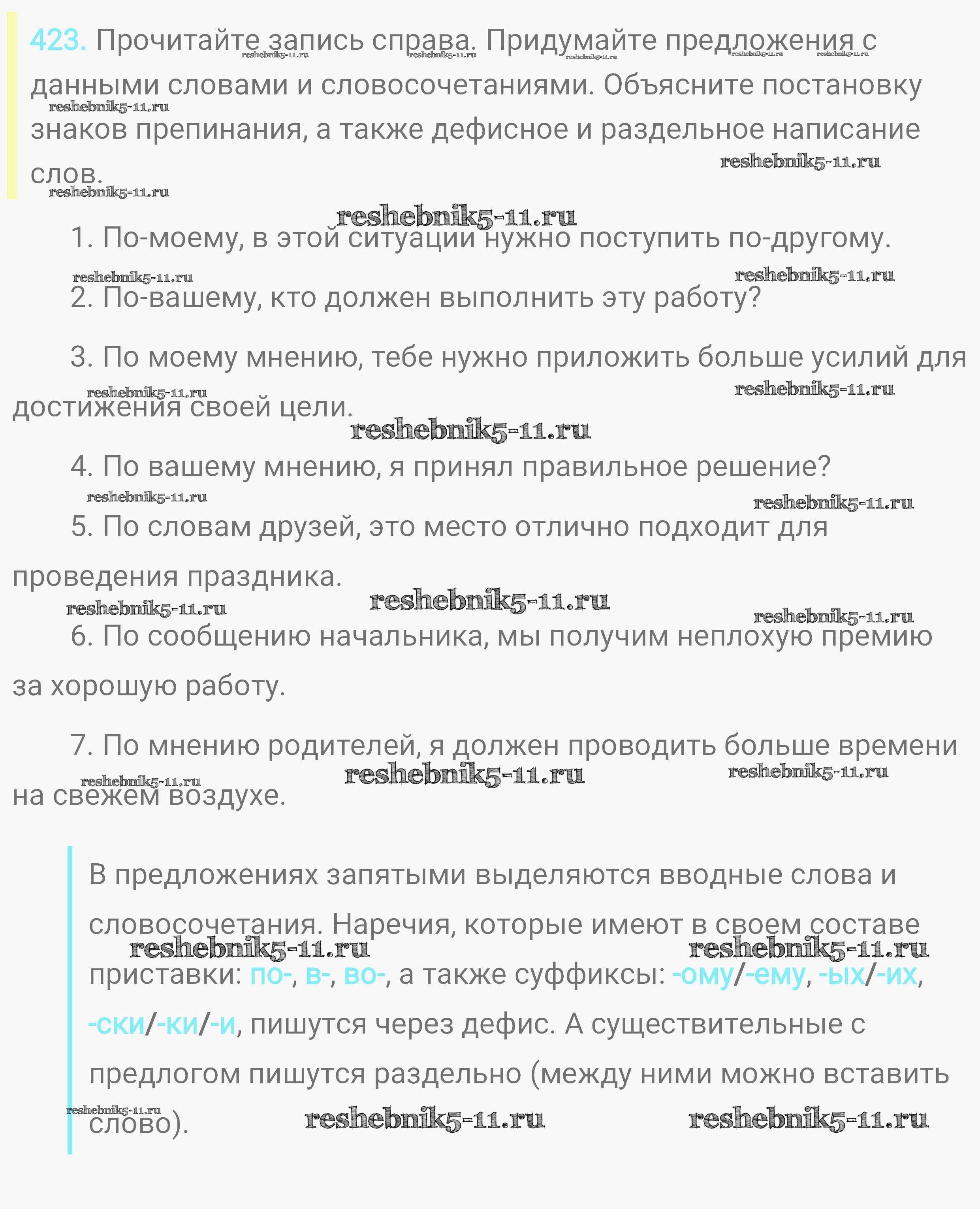 Готовая домашняя работа с ответами по Русскому языку за 8 класс Пичугов, Еремеева, Купалова, Леденева Практика Вертикаль Дрофа 2016 ФГОС - Упражнения 423