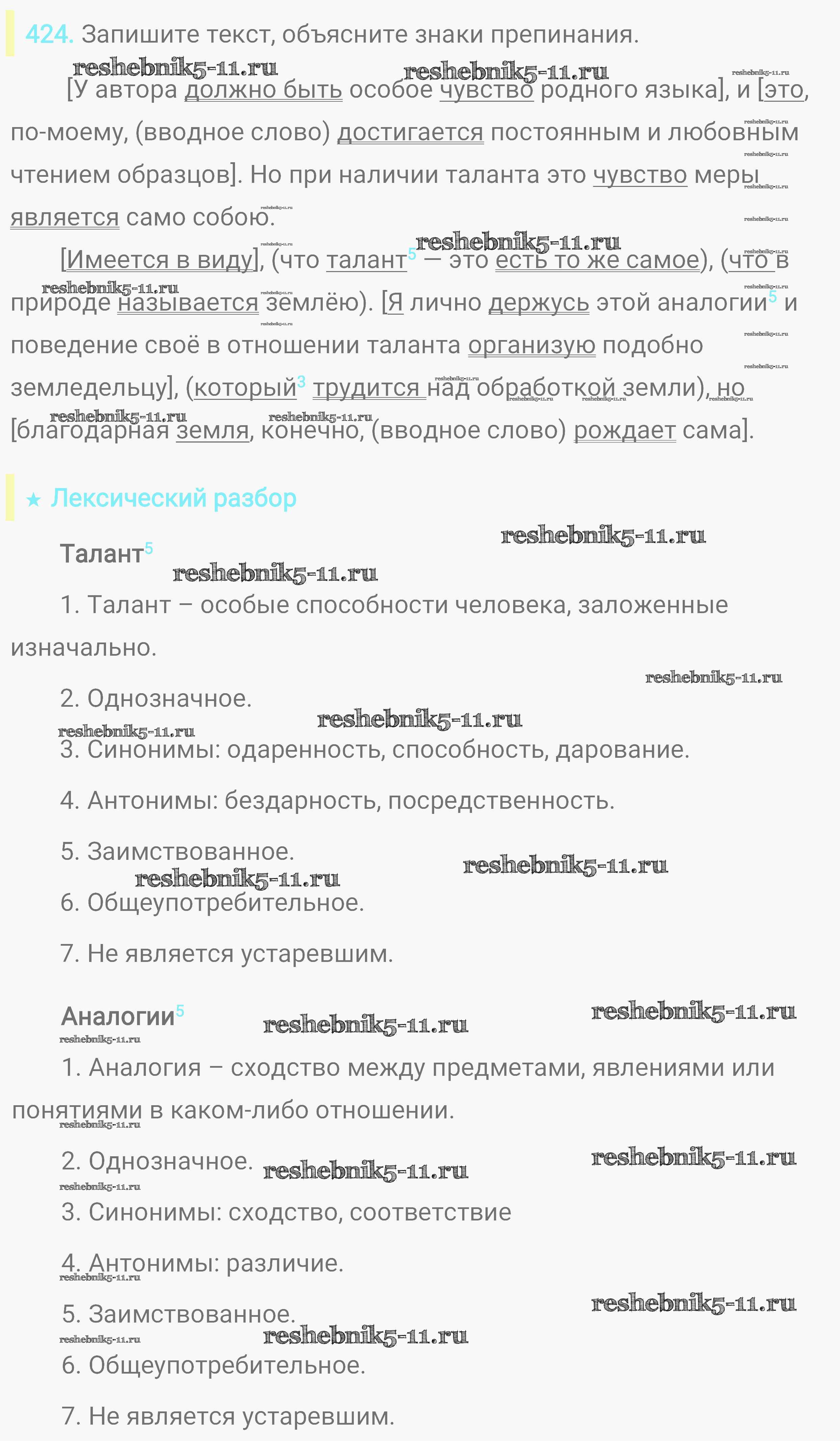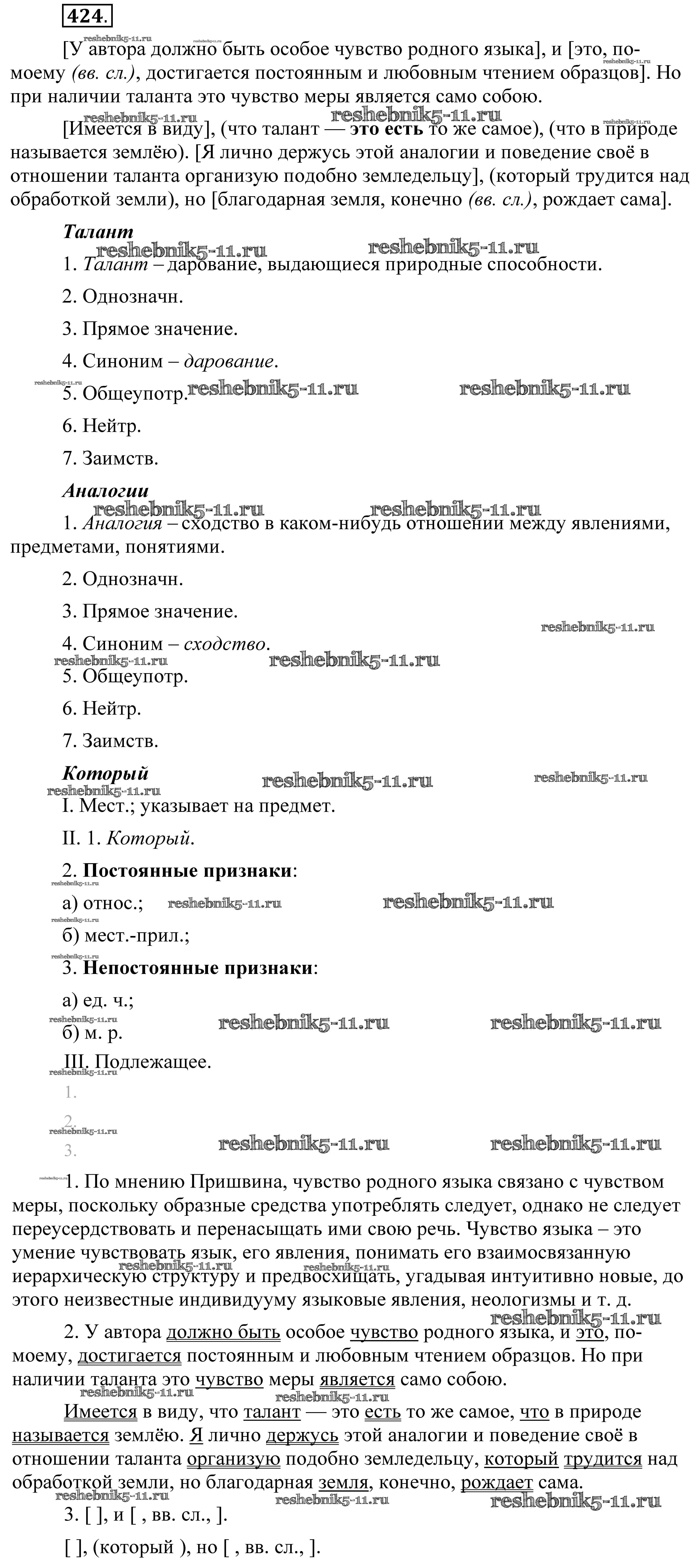 Готовая домашняя работа с ответами по Русскому языку за 8 класс Пичугов, Еремеева, Купалова, Леденева Практика Вертикаль Дрофа 2016 ФГОС - Упражнения 424