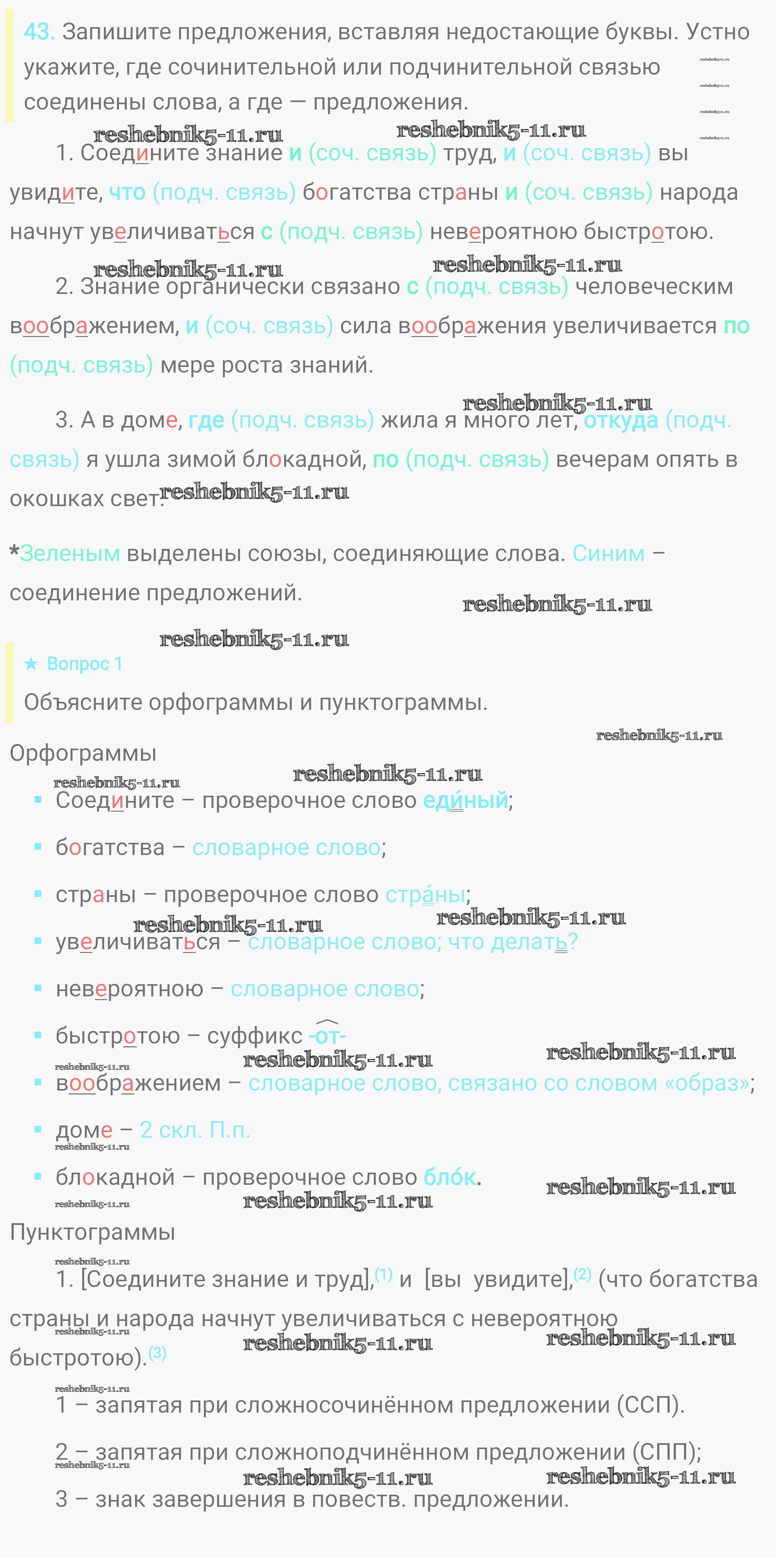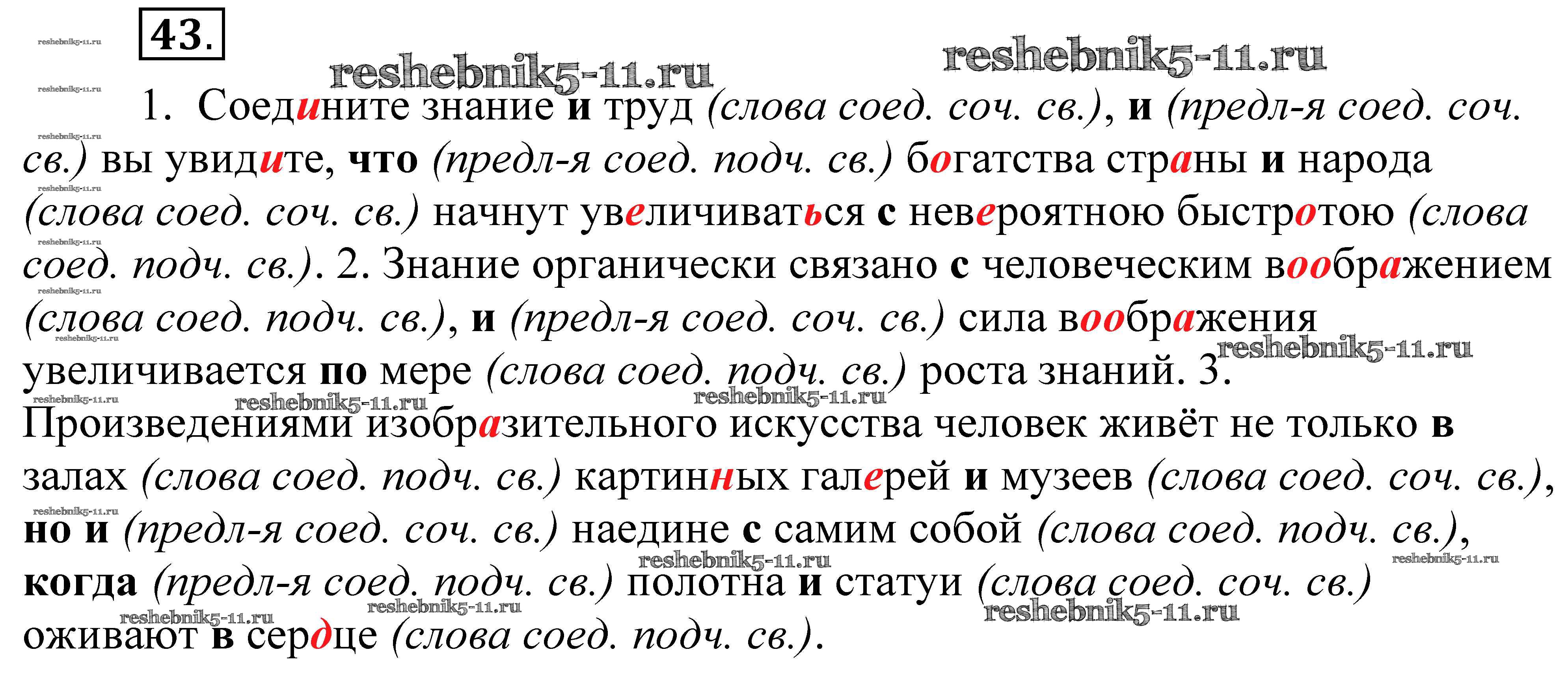 Готовая домашняя работа с ответами по Русскому языку за 8 класс Пичугов, Еремеева, Купалова, Леденева Практика Вертикаль Дрофа 2016 ФГОС - Упражнения 43
