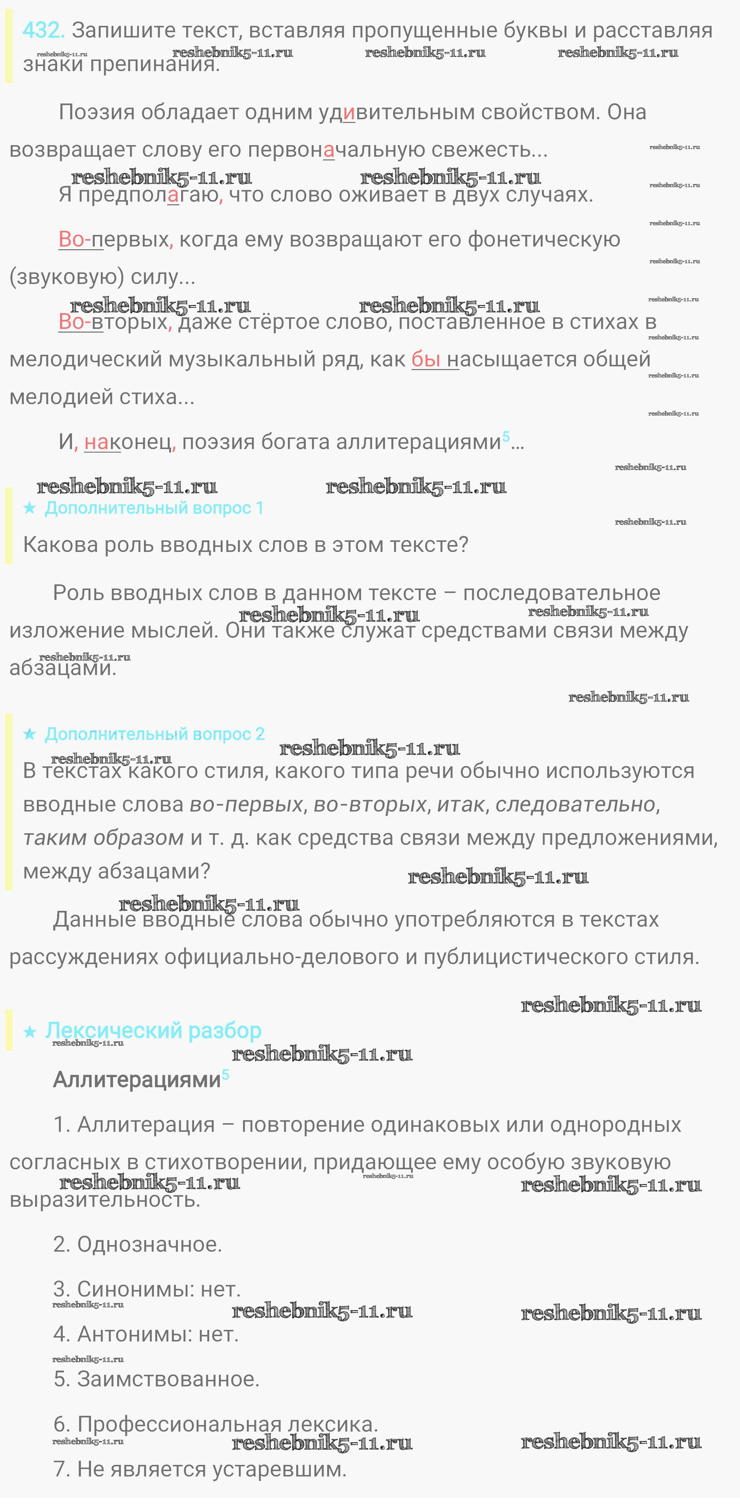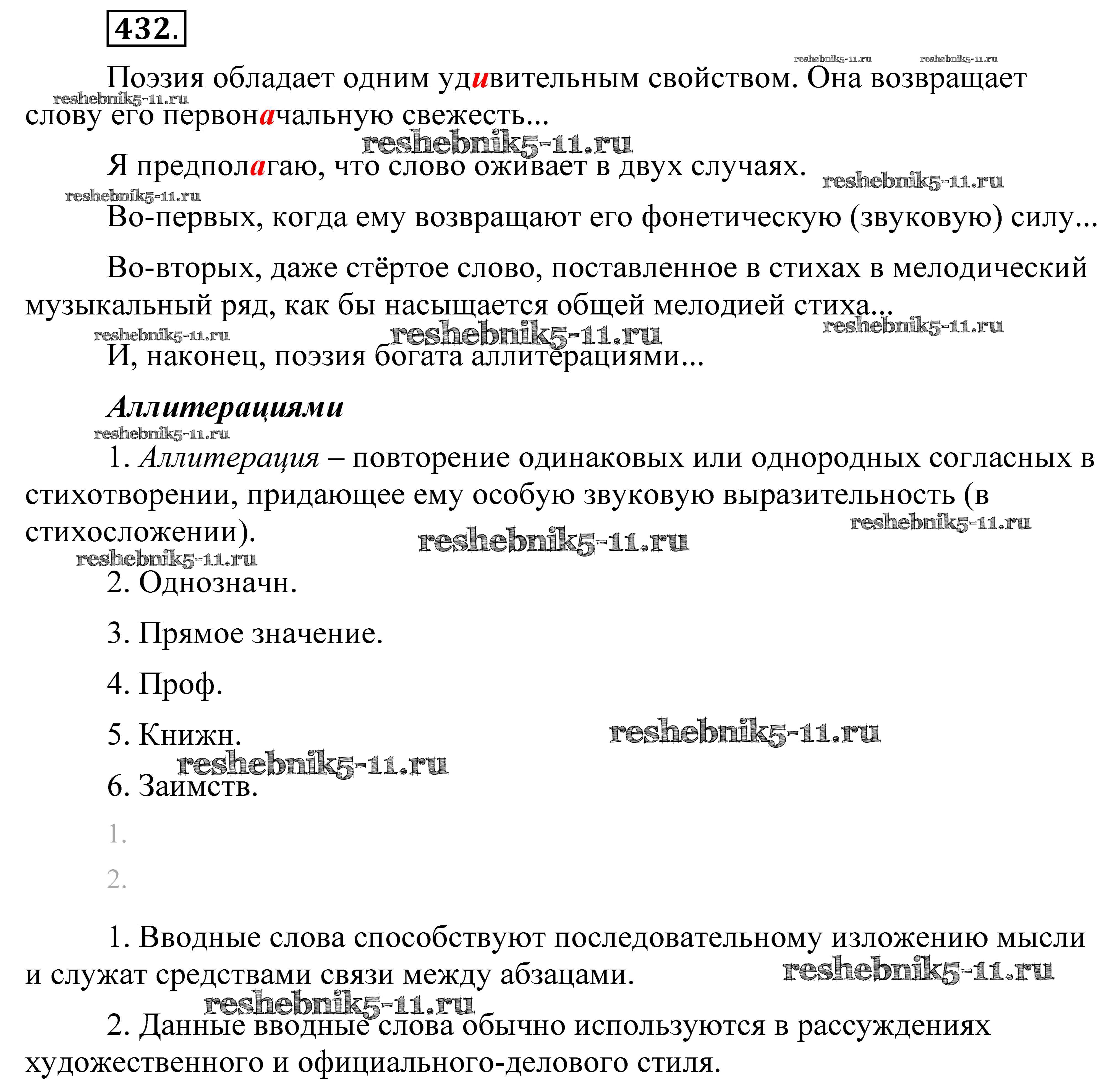Готовая домашняя работа с ответами по Русскому языку за 8 класс Пичугов, Еремеева, Купалова, Леденева Практика Вертикаль Дрофа 2016 ФГОС - Упражнения 432