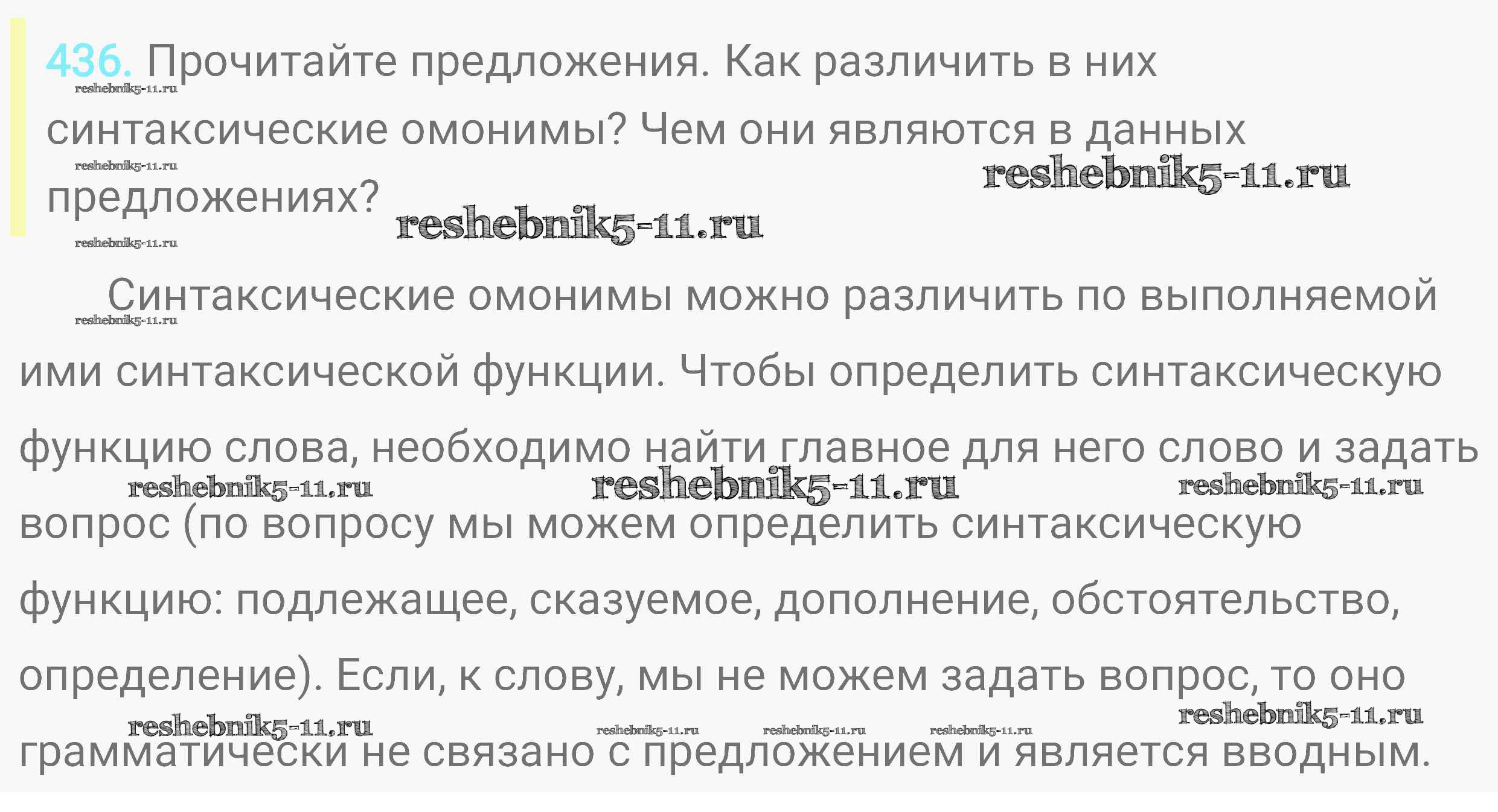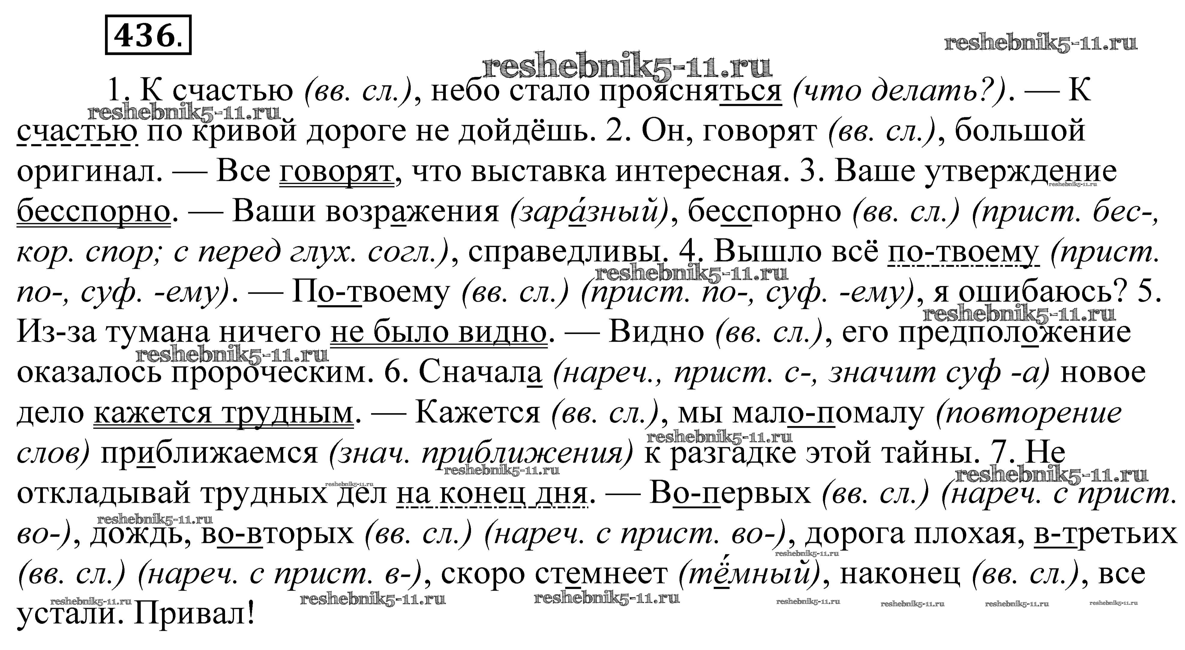 Готовая домашняя работа с ответами по Русскому языку за 8 класс Пичугов, Еремеева, Купалова, Леденева Практика Вертикаль Дрофа 2016 ФГОС - Упражнения 436