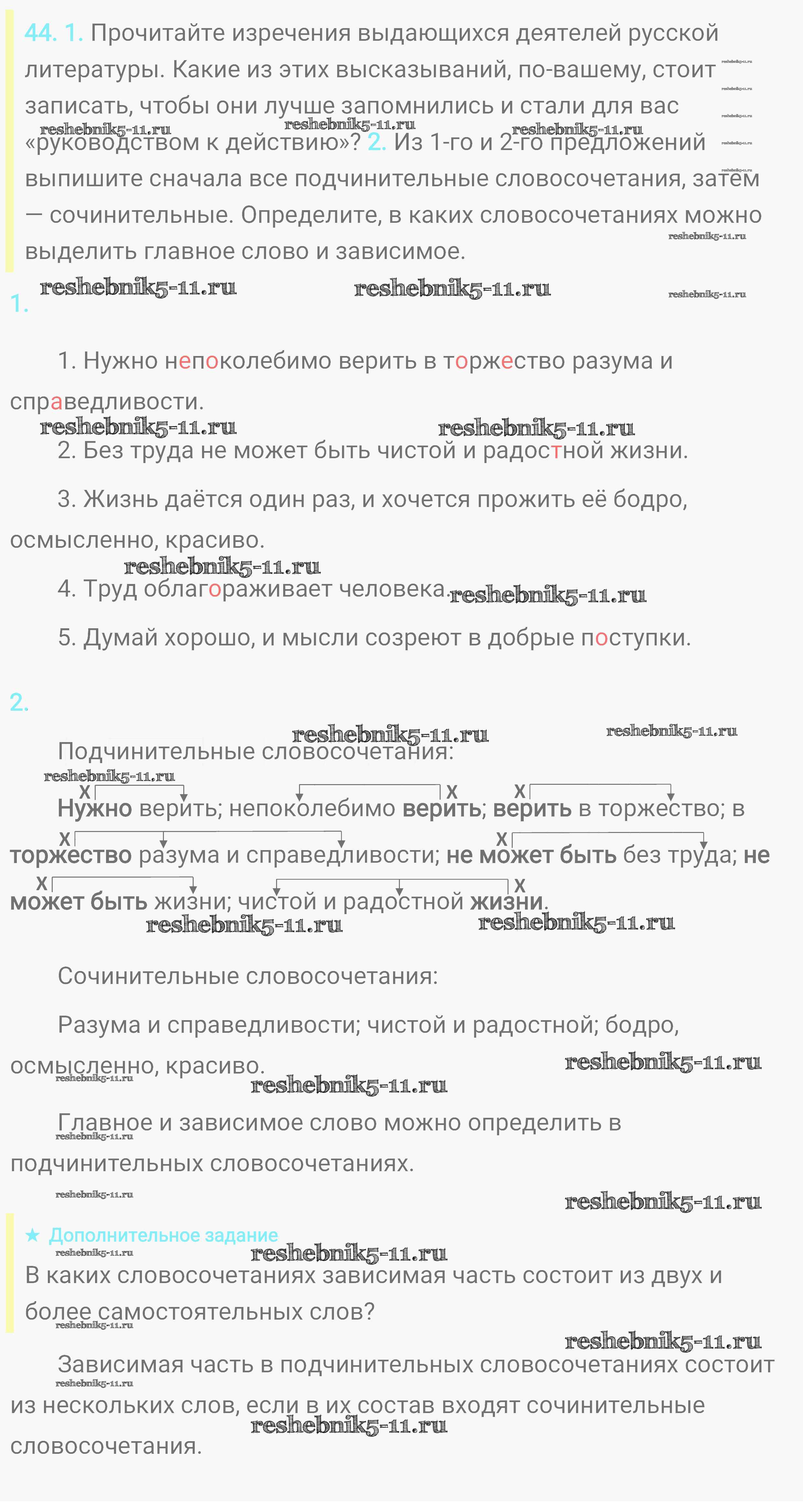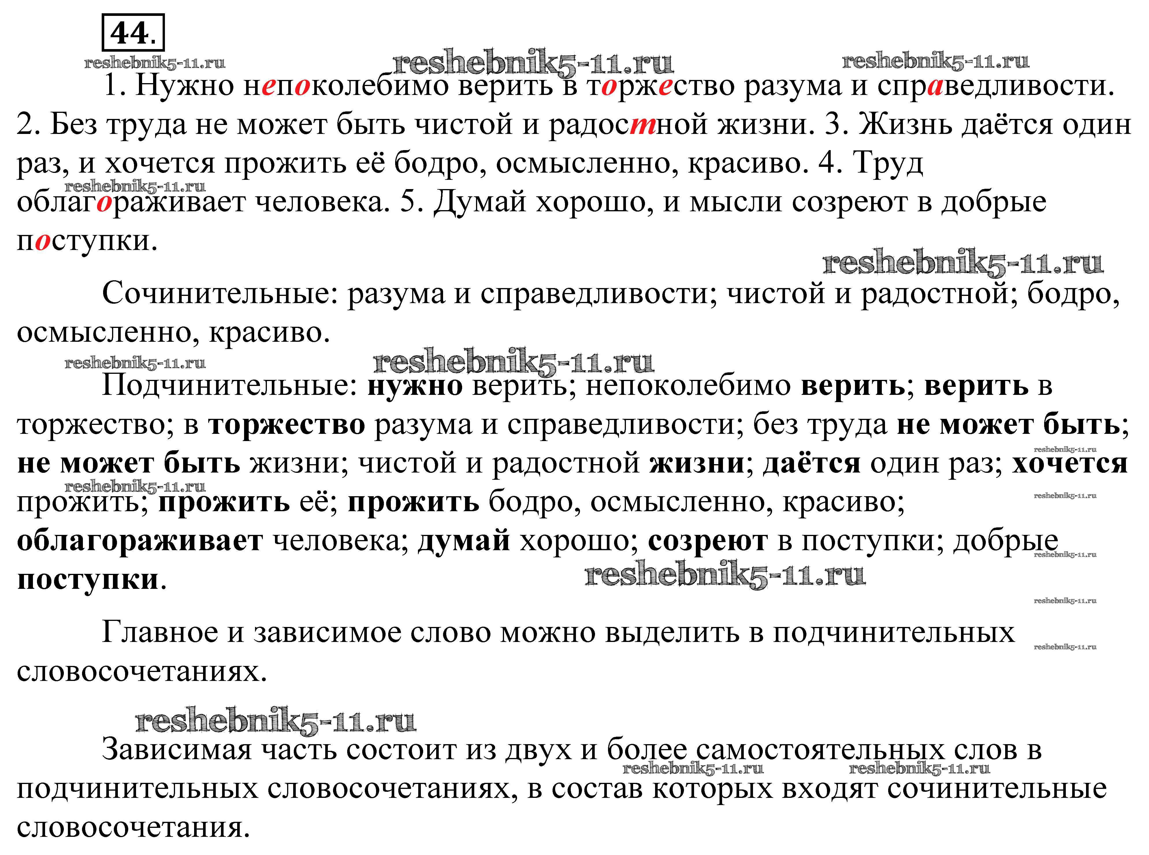 Готовая домашняя работа с ответами по Русскому языку за 8 класс Пичугов, Еремеева, Купалова, Леденева Практика Вертикаль Дрофа 2016 ФГОС - Упражнения 44