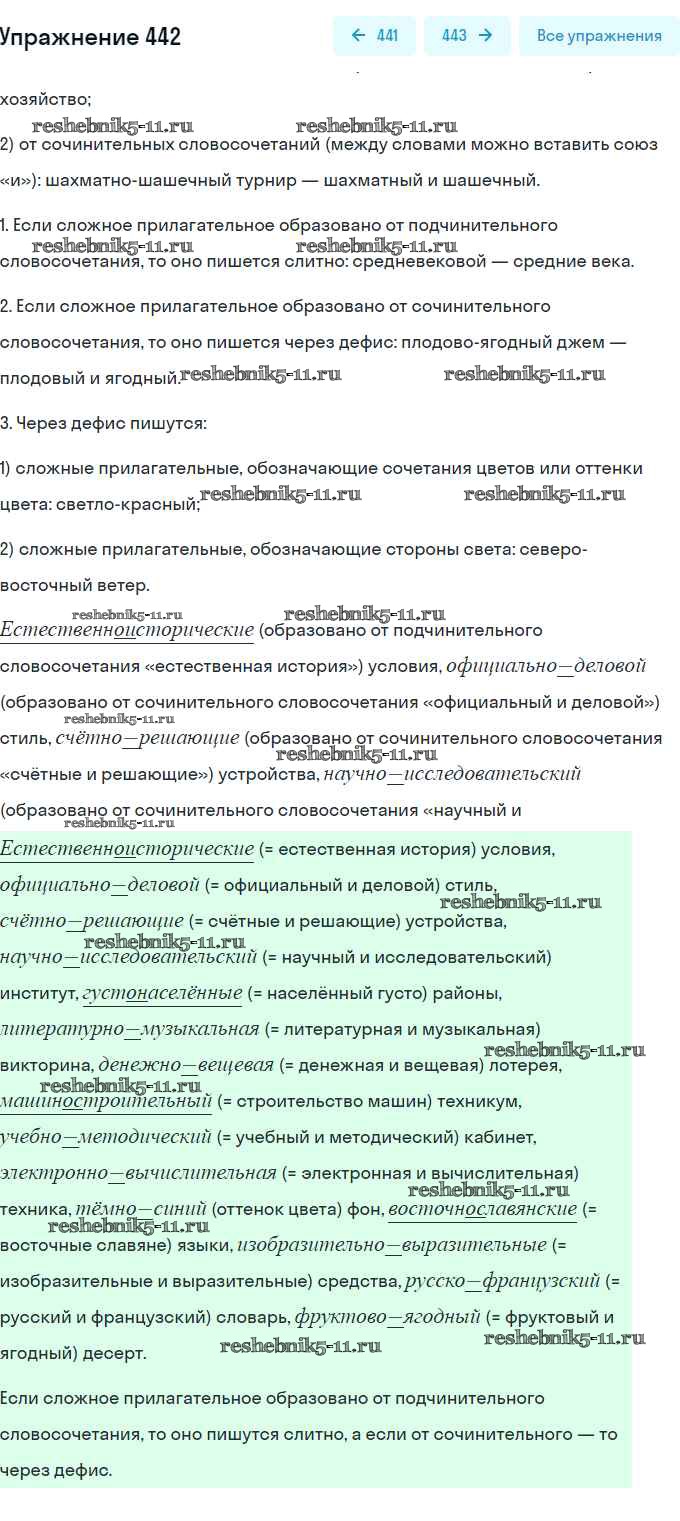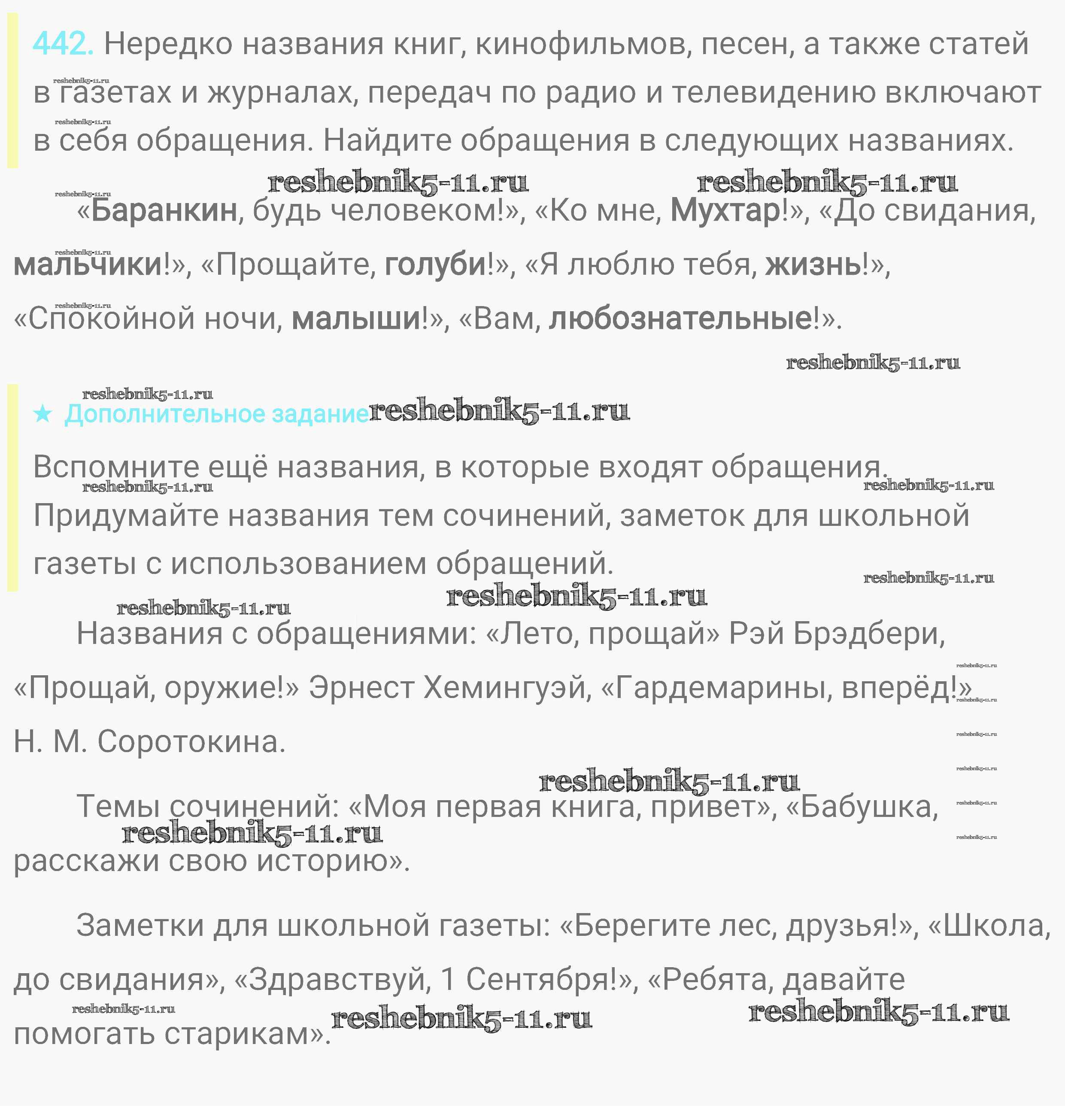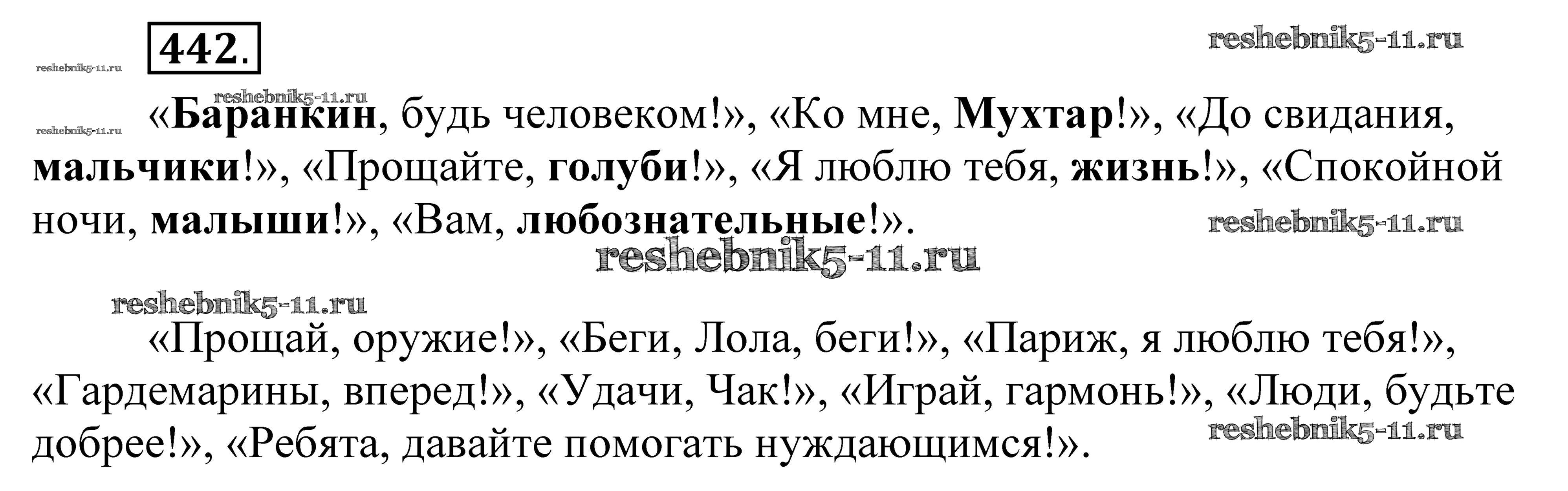 Готовая домашняя работа с ответами по Русскому языку за 8 класс Пичугов, Еремеева, Купалова, Леденева Практика Вертикаль Дрофа 2016 ФГОС - Упражнения 442